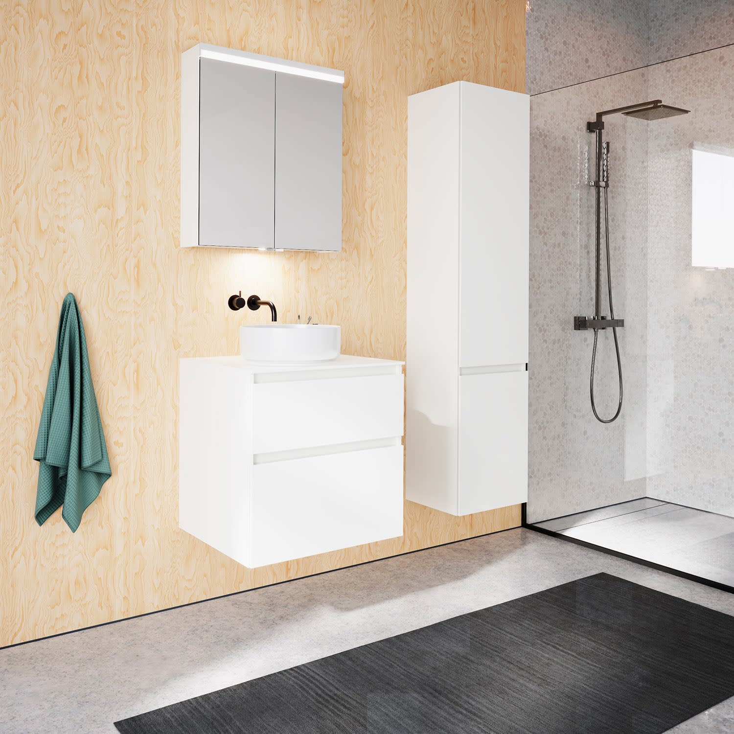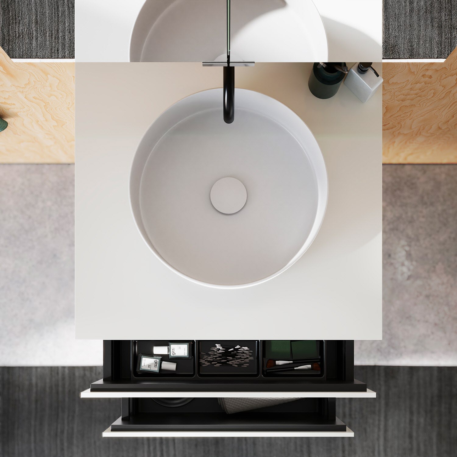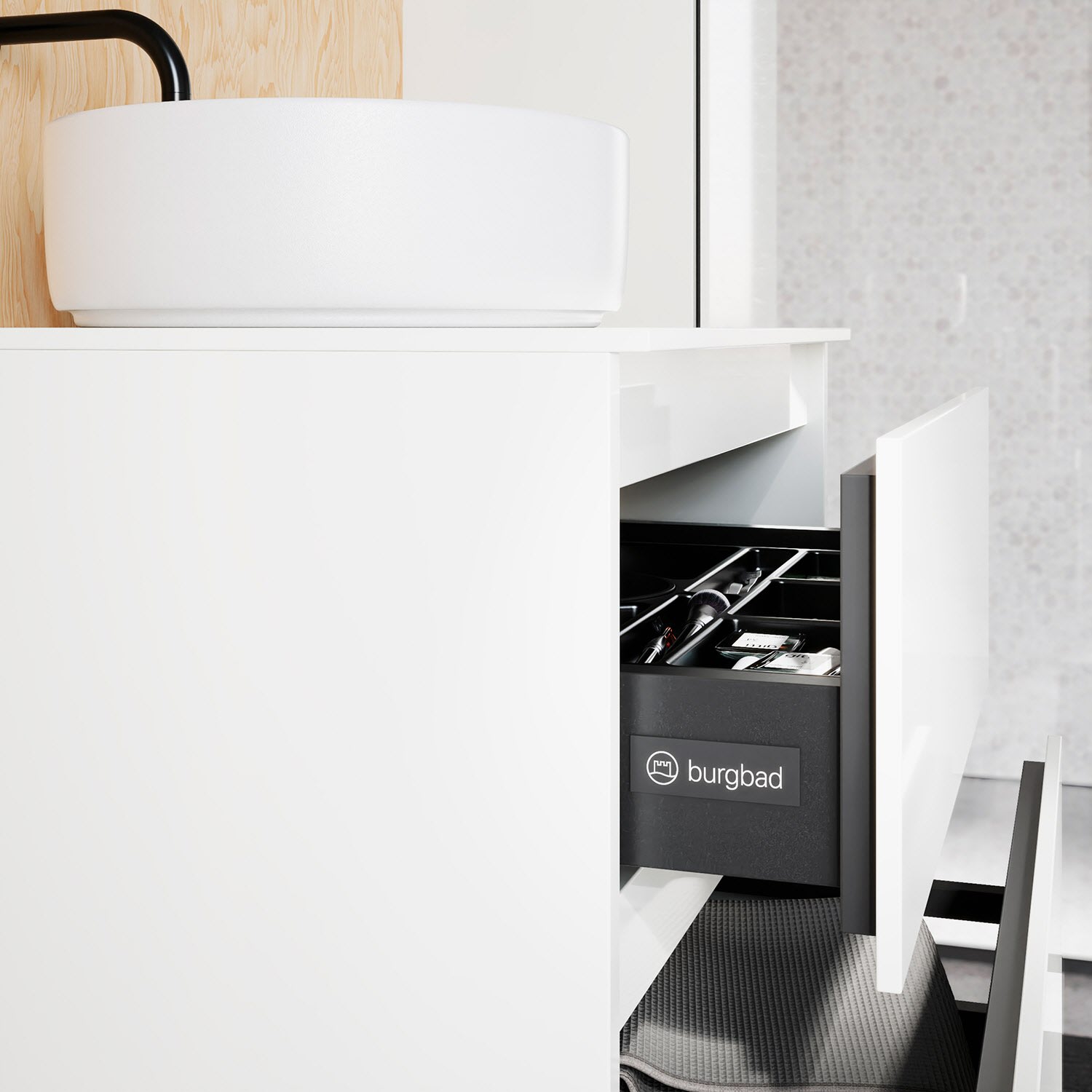 burgbad Lin20 Waschtischunterschrank mit Konsolenplatte 60 cm, 2 Auszüge, Beckenausschnitt mittig