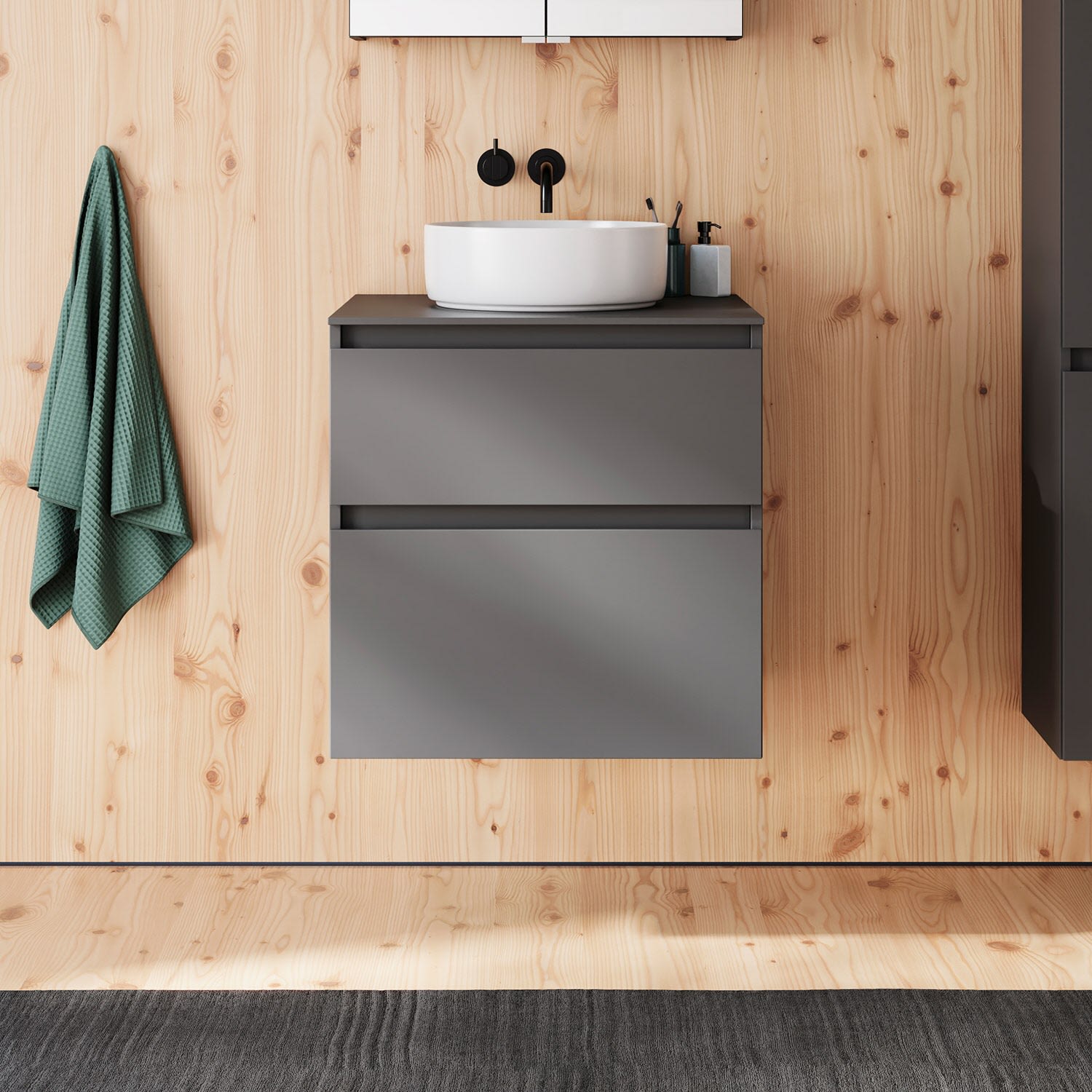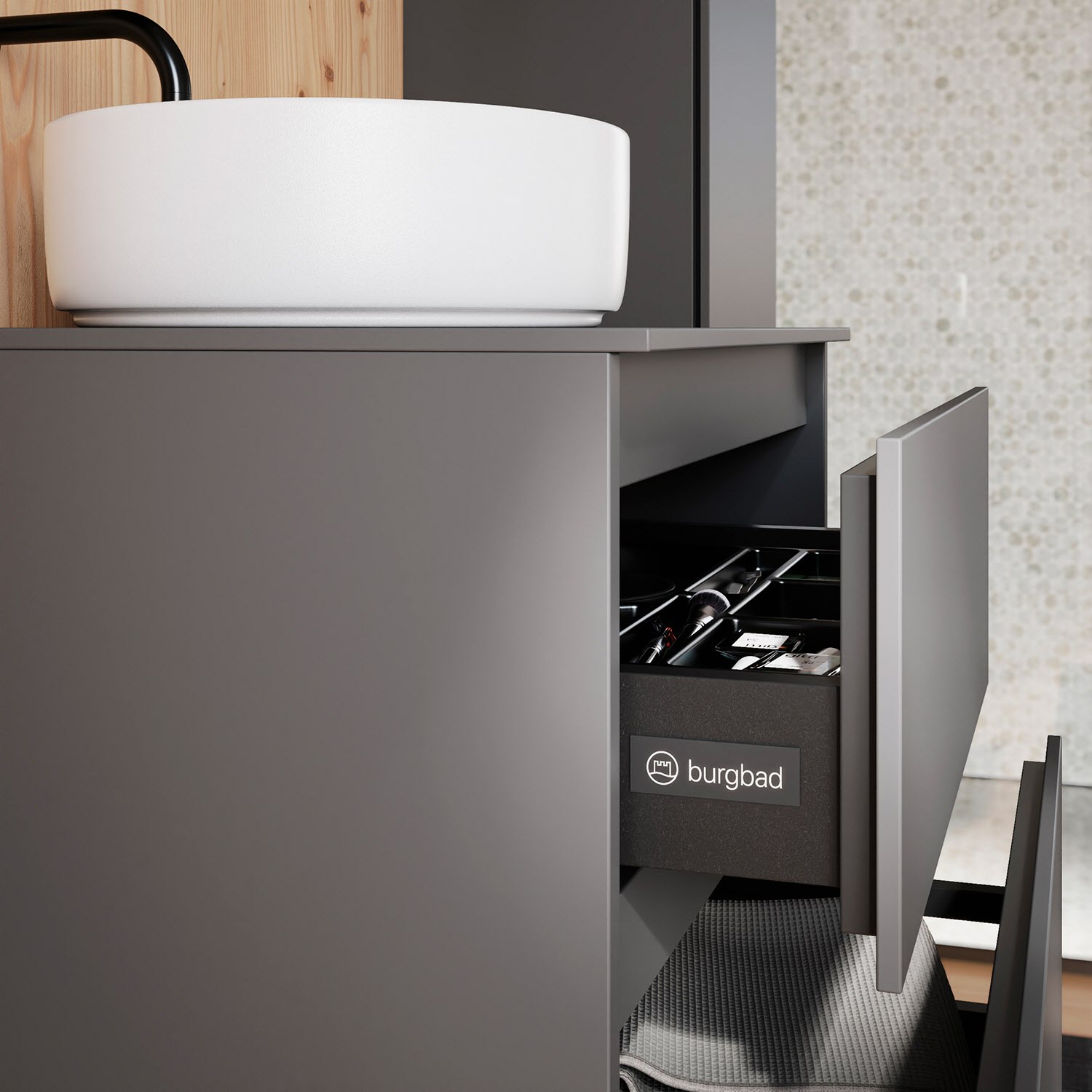 burgbad Lin20 Waschtischunterschrank mit Konsolenplatte 60 cm, 2 Auszüge, Beckenausschnitt mittig