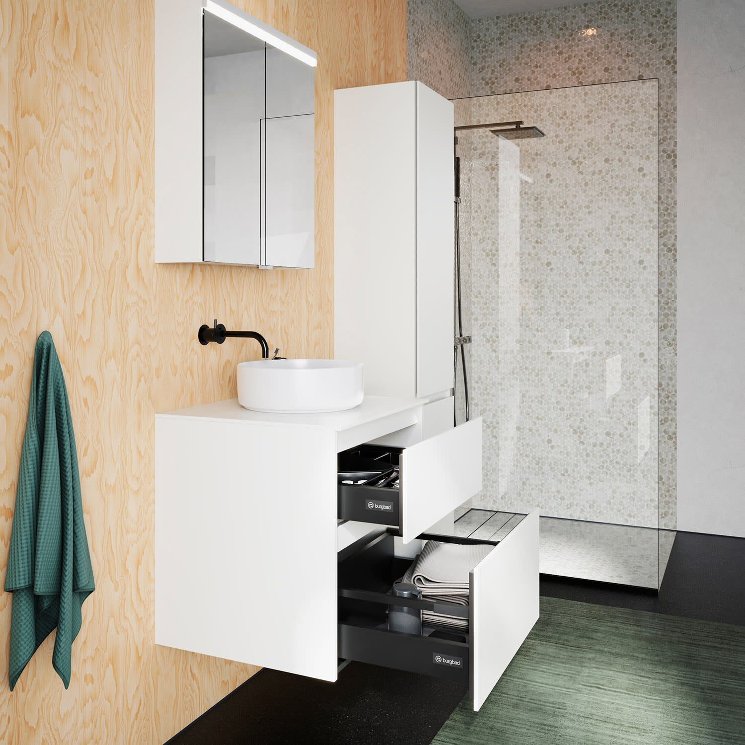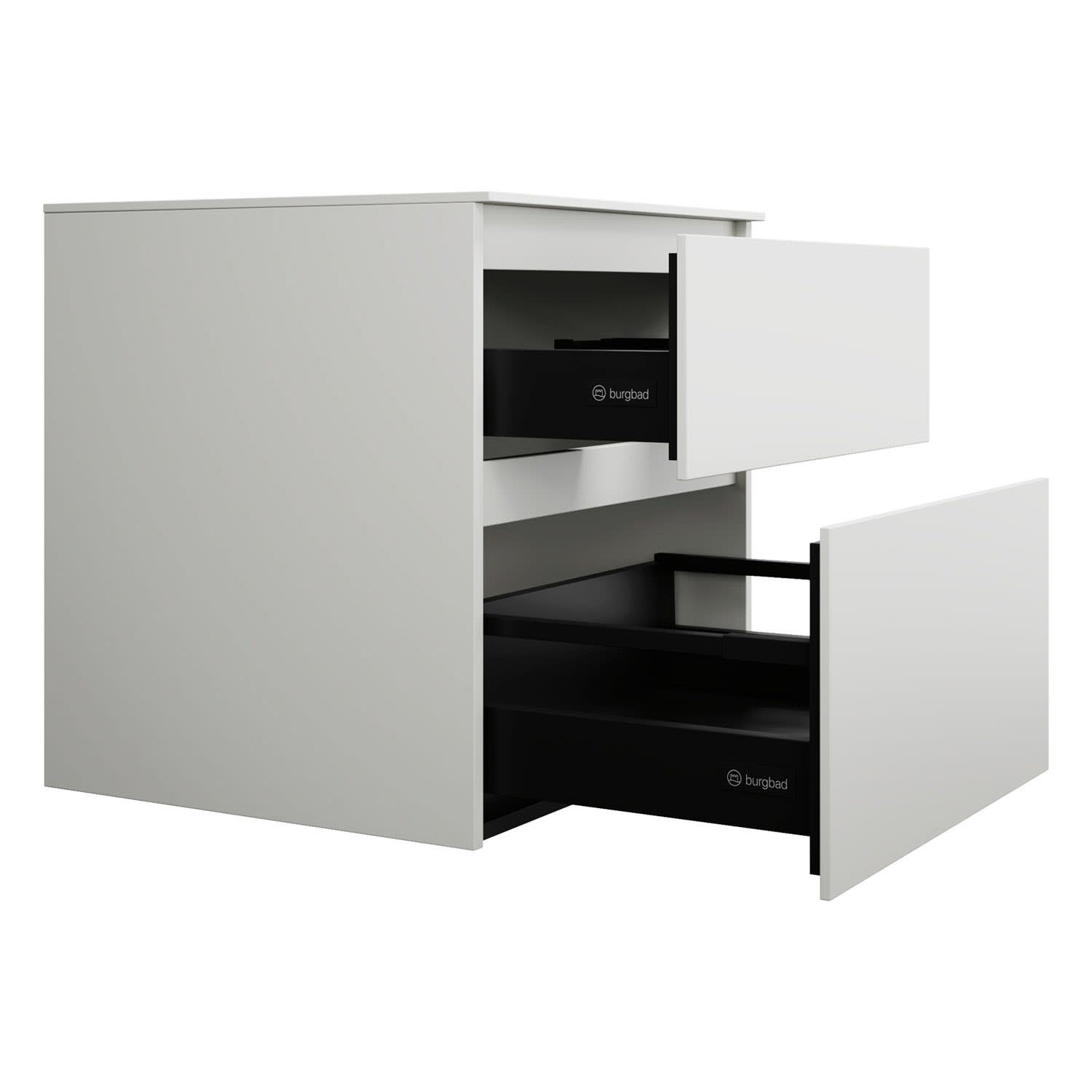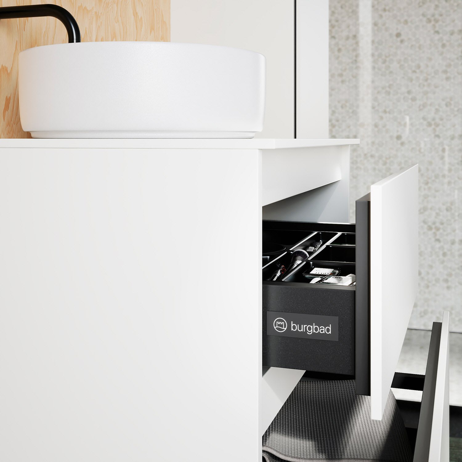 burgbad Lin20 Waschtischunterschrank mit Konsolenplatte 60 cm, 2 Auszüge, Beckenausschnitt mittig