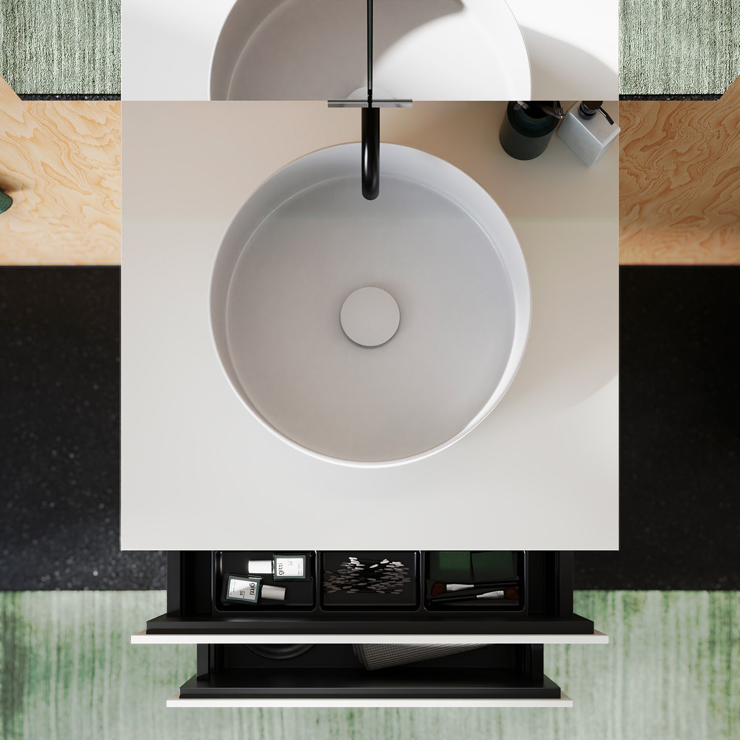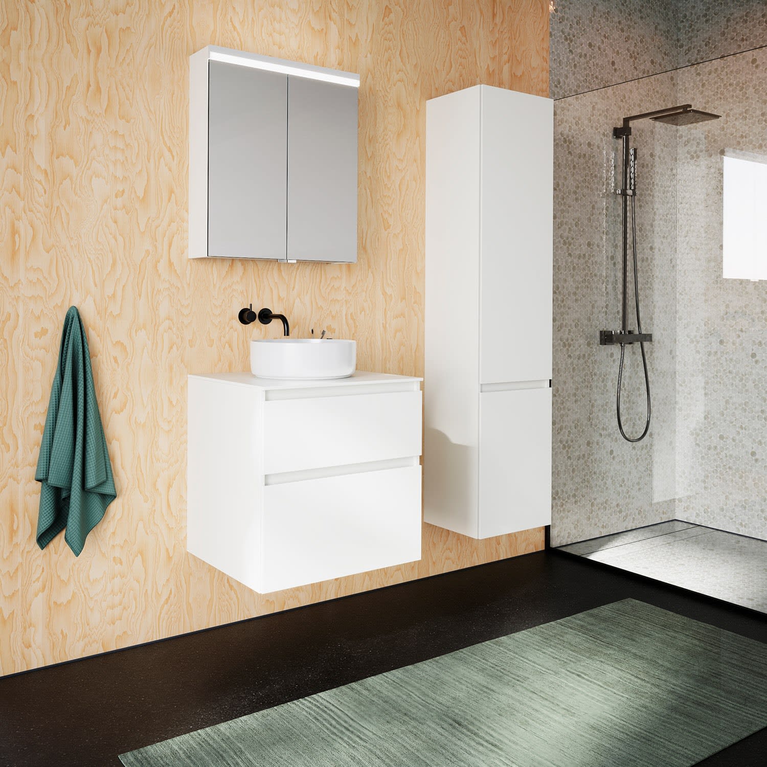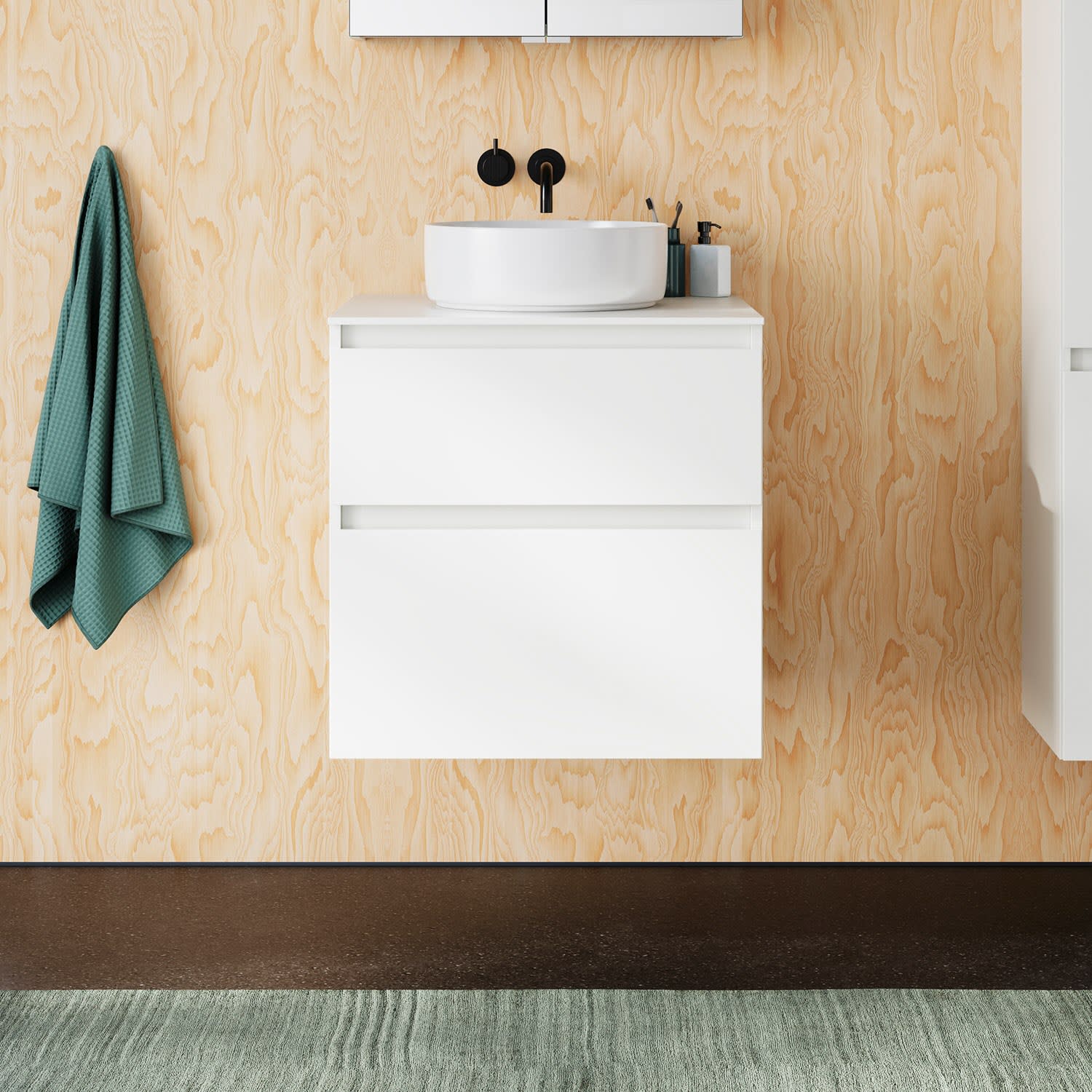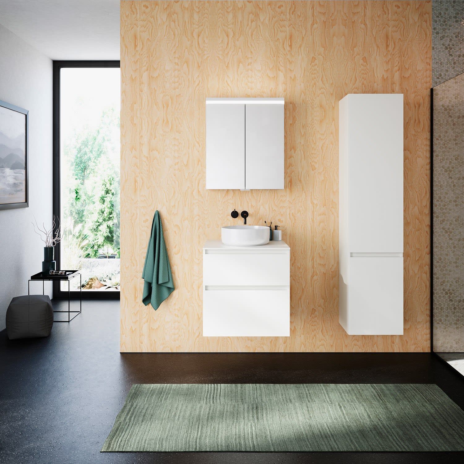 burgbad Lin20 Waschtischunterschrank mit Konsolenplatte 60 cm, 2 Auszüge, Beckenausschnitt mittig