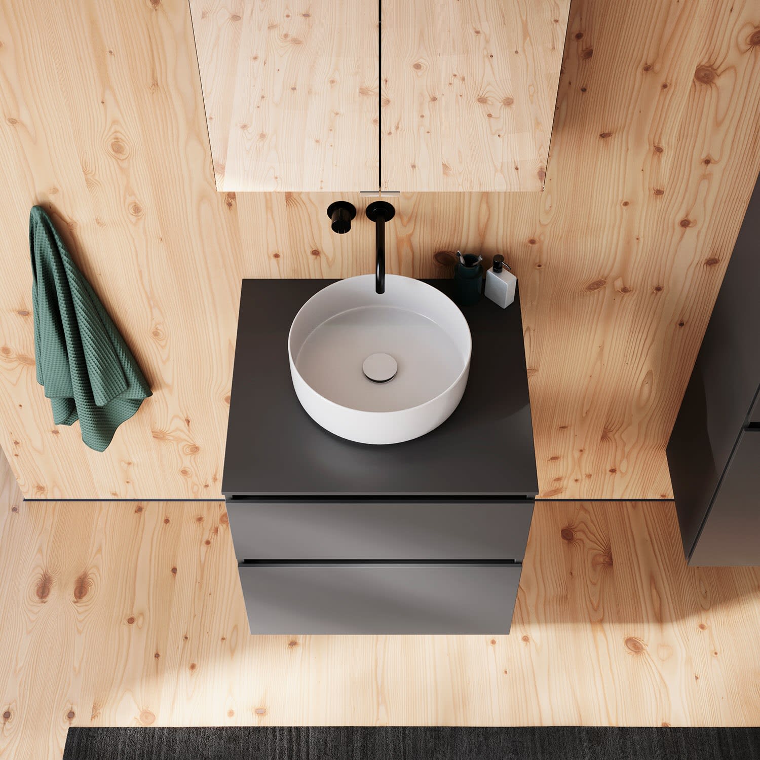 burgbad Lin20 Waschtischunterschrank mit Konsolenplatte 60 cm, 2 Auszüge, Beckenausschnitt mittig