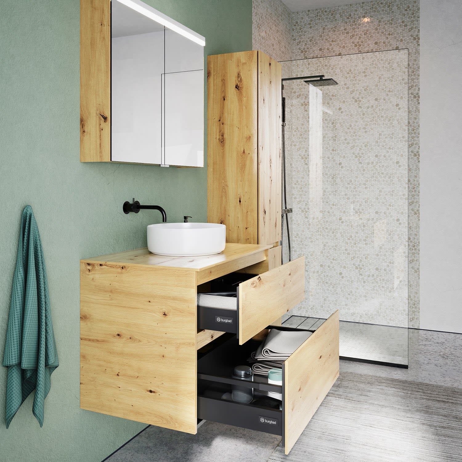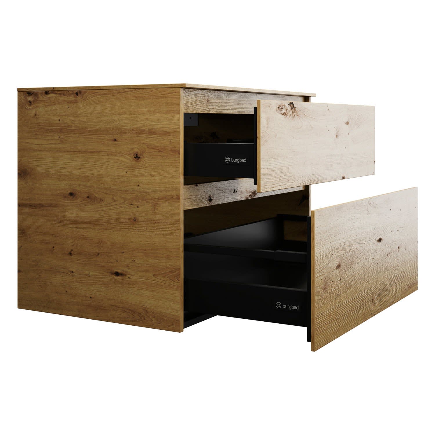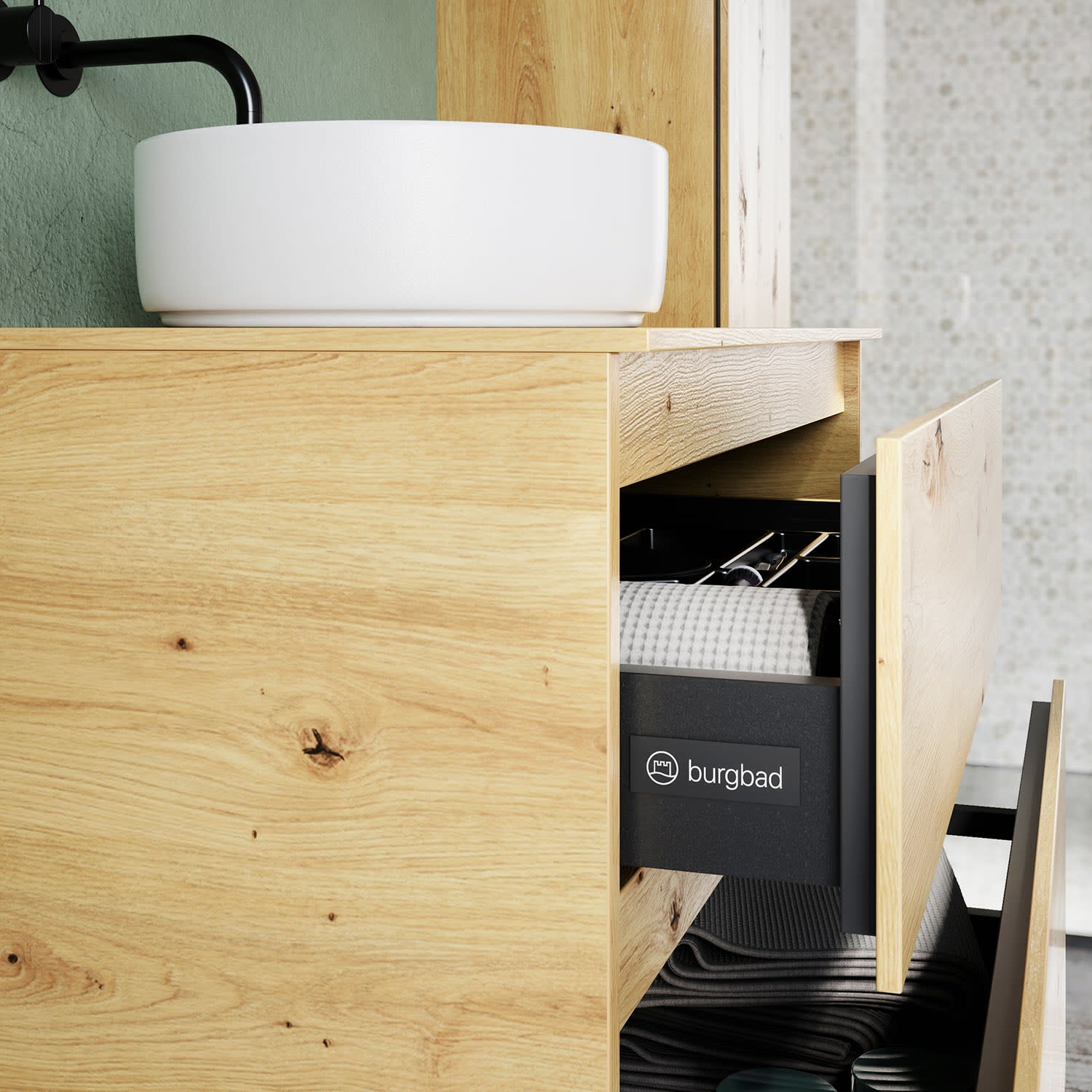 burgbad Lin20 Waschtischunterschrank mit Konsolenplatte 80 cm, 2 Auszüge, Beckenausschnitt mittig