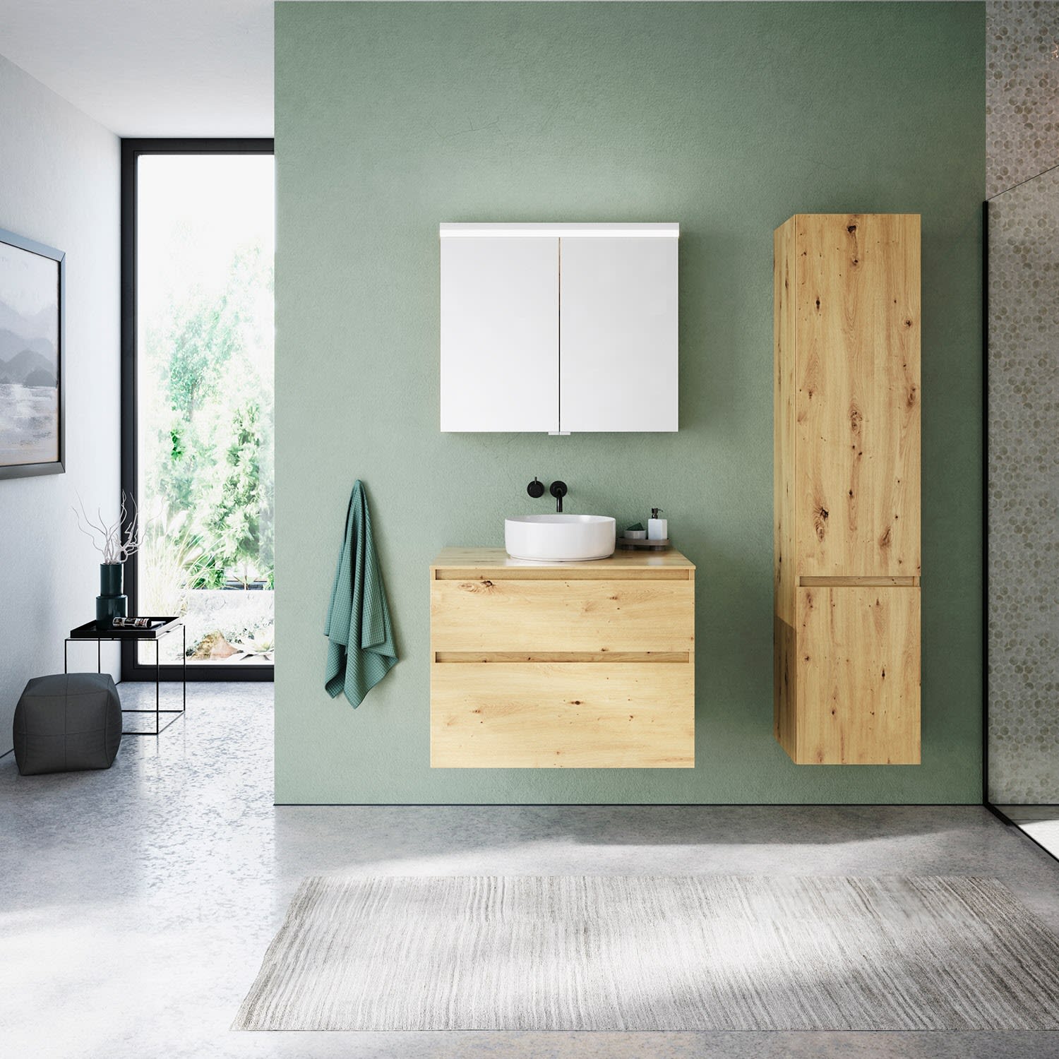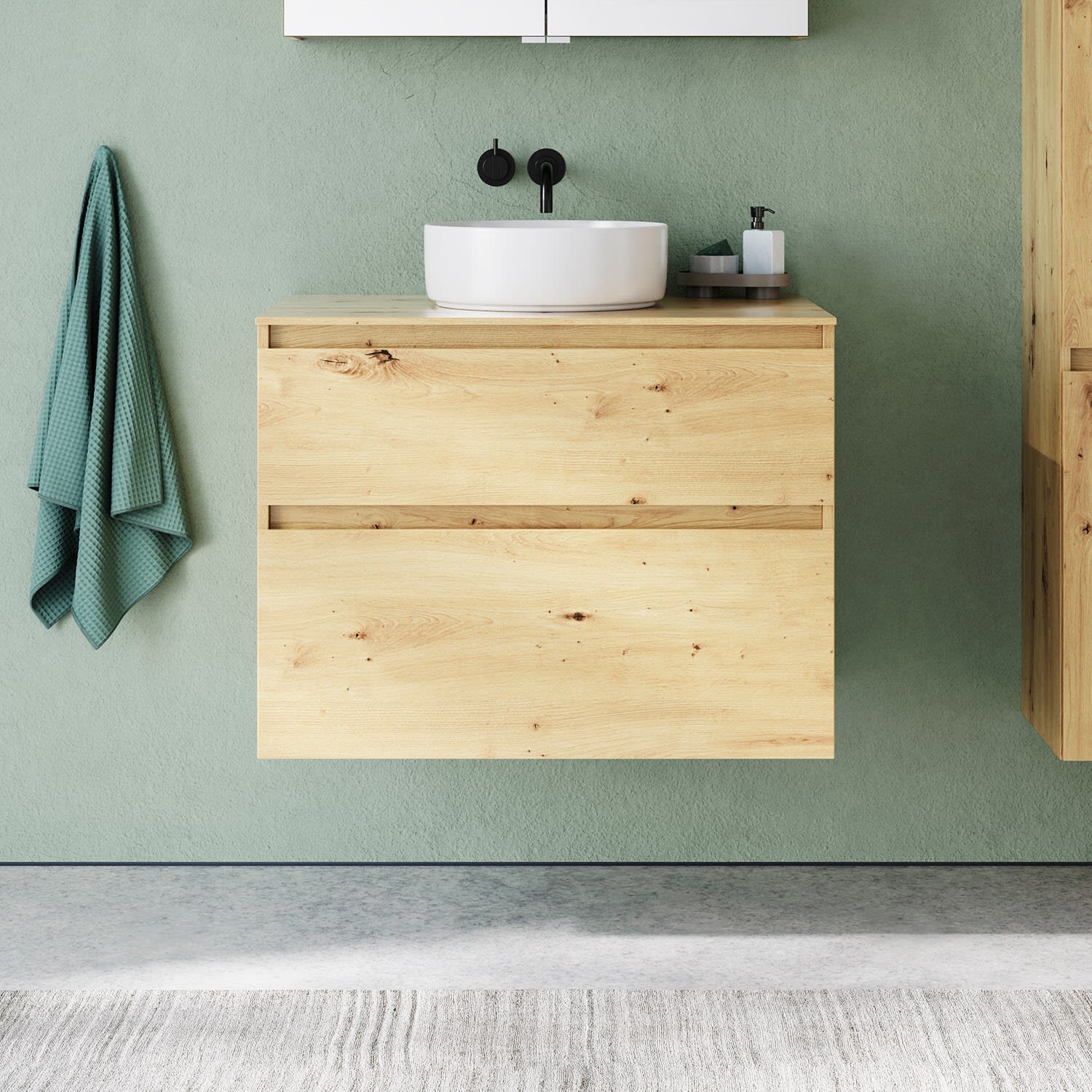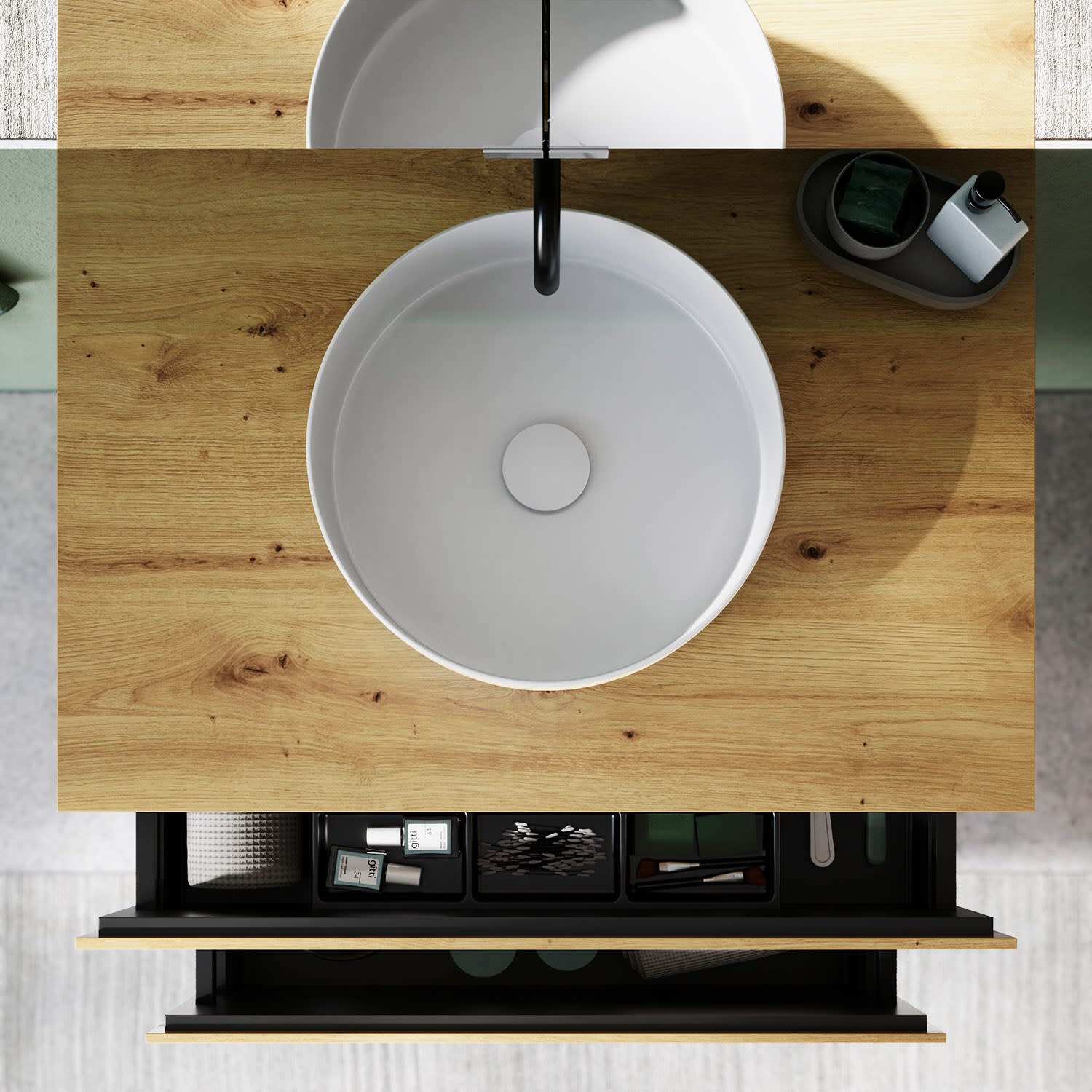 burgbad Lin20 Waschtischunterschrank mit Konsolenplatte 80 cm, 2 Auszüge, Beckenausschnitt mittig