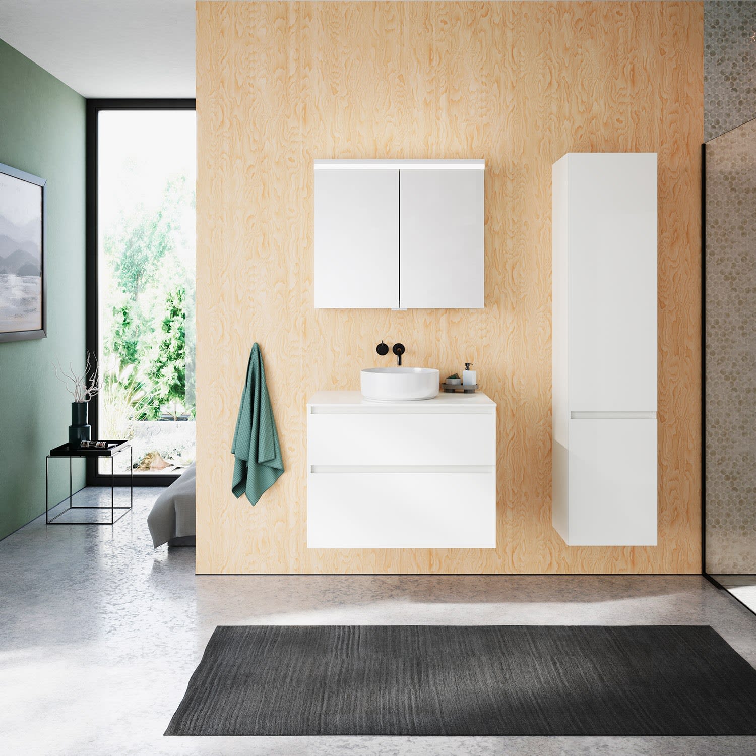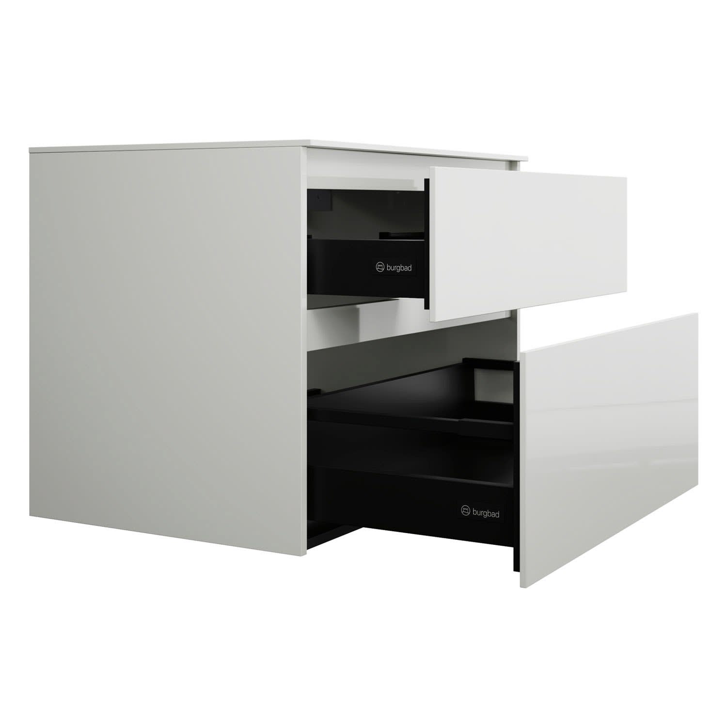 burgbad Lin20 Waschtischunterschrank mit Konsolenplatte 80 cm, 2 Auszüge, Beckenausschnitt mittig