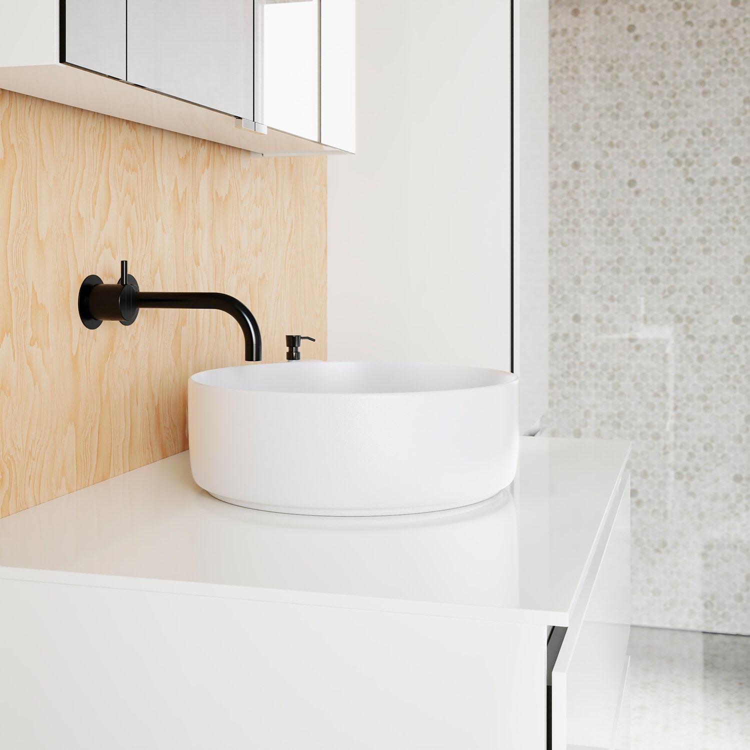 Die Waschtischplatte wird ohne Armaturbohrung geliefert. Armaturbohrungen müssen bauseits vorgenommen werden.