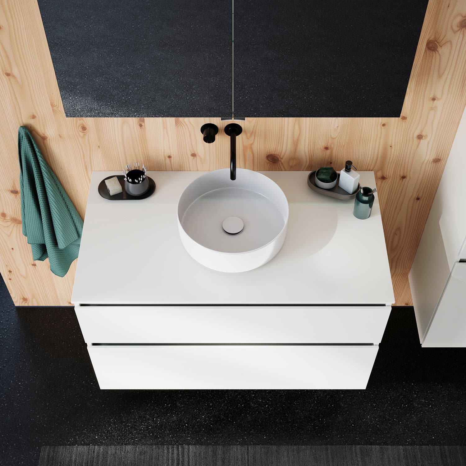 burgbad Lin20 Waschtischunterschrank mit Konsolenplatte 100 cm, 2 Auszüge, Beckenausschnitt mittig