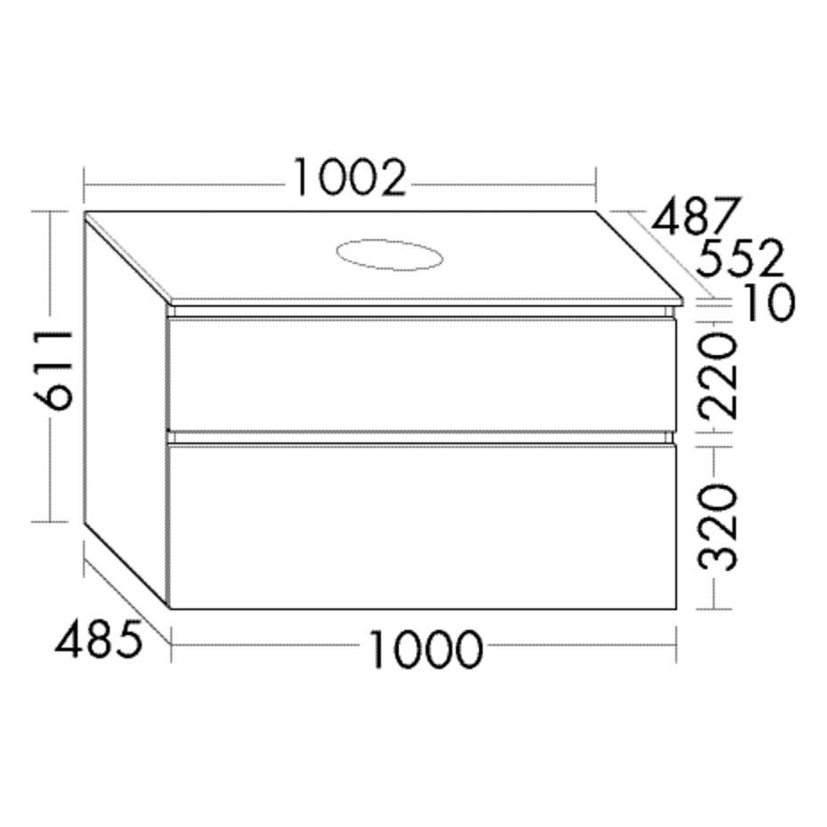 - Position Beckenausschnitt in der Tiefe: mittig bei Becken ohne Wandbefestigung oder wandbündig bei Becken mit Wandbefestigung (Bitte bei Bestellung den gewünschten Waschtisch mit angebeben.)