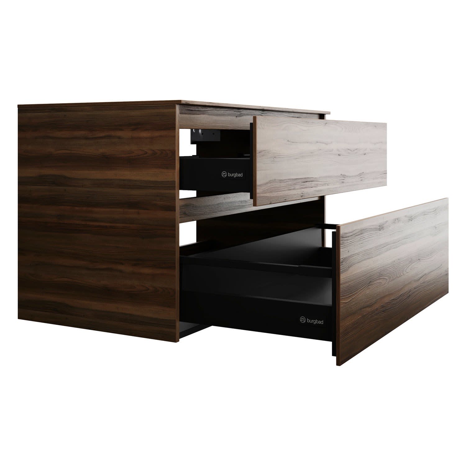 burgbad Lin20 Waschtischunterschrank mit Konsolenplatte 100 cm, 2 Auszüge, Beckenausschnitt mittig