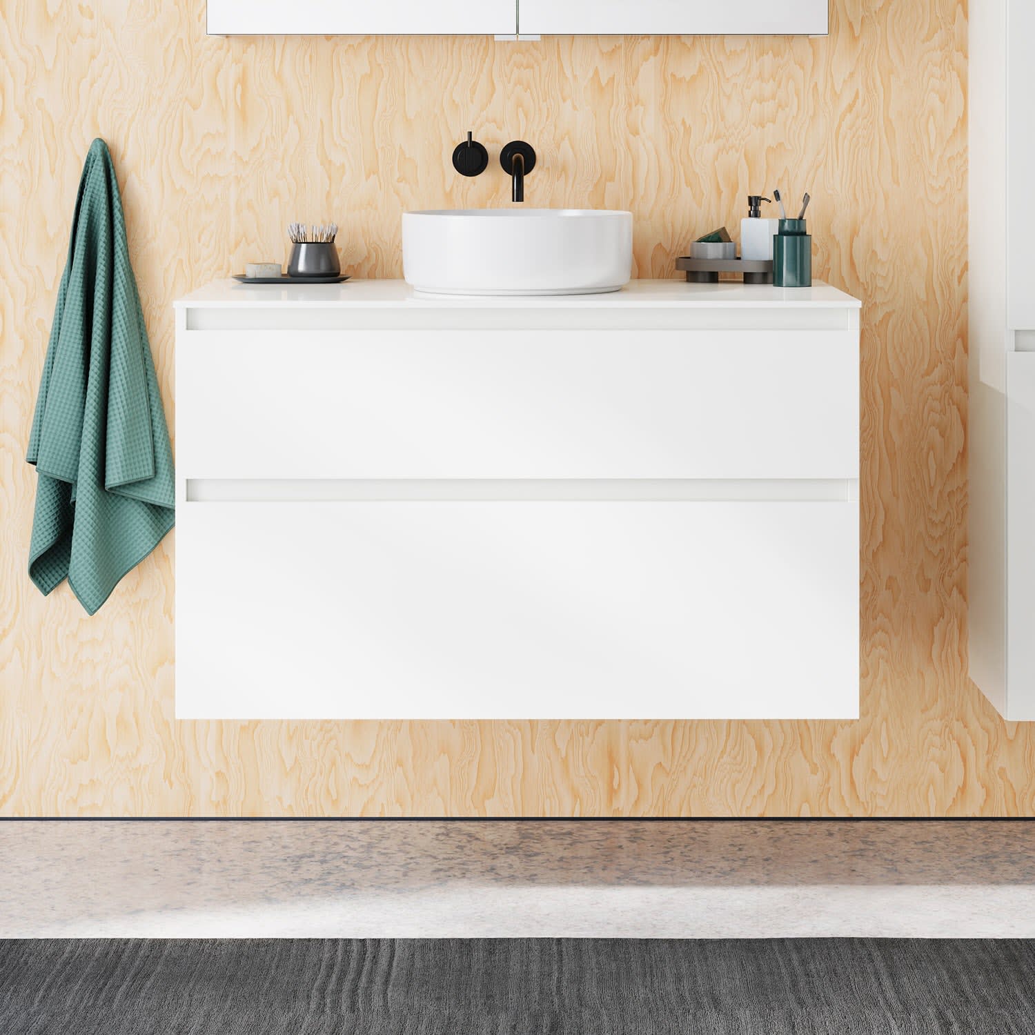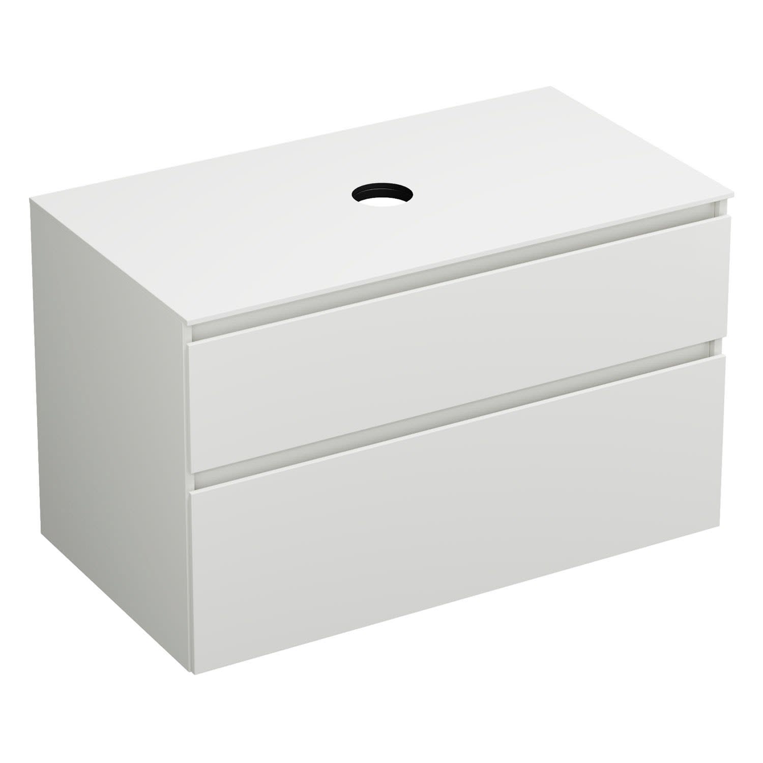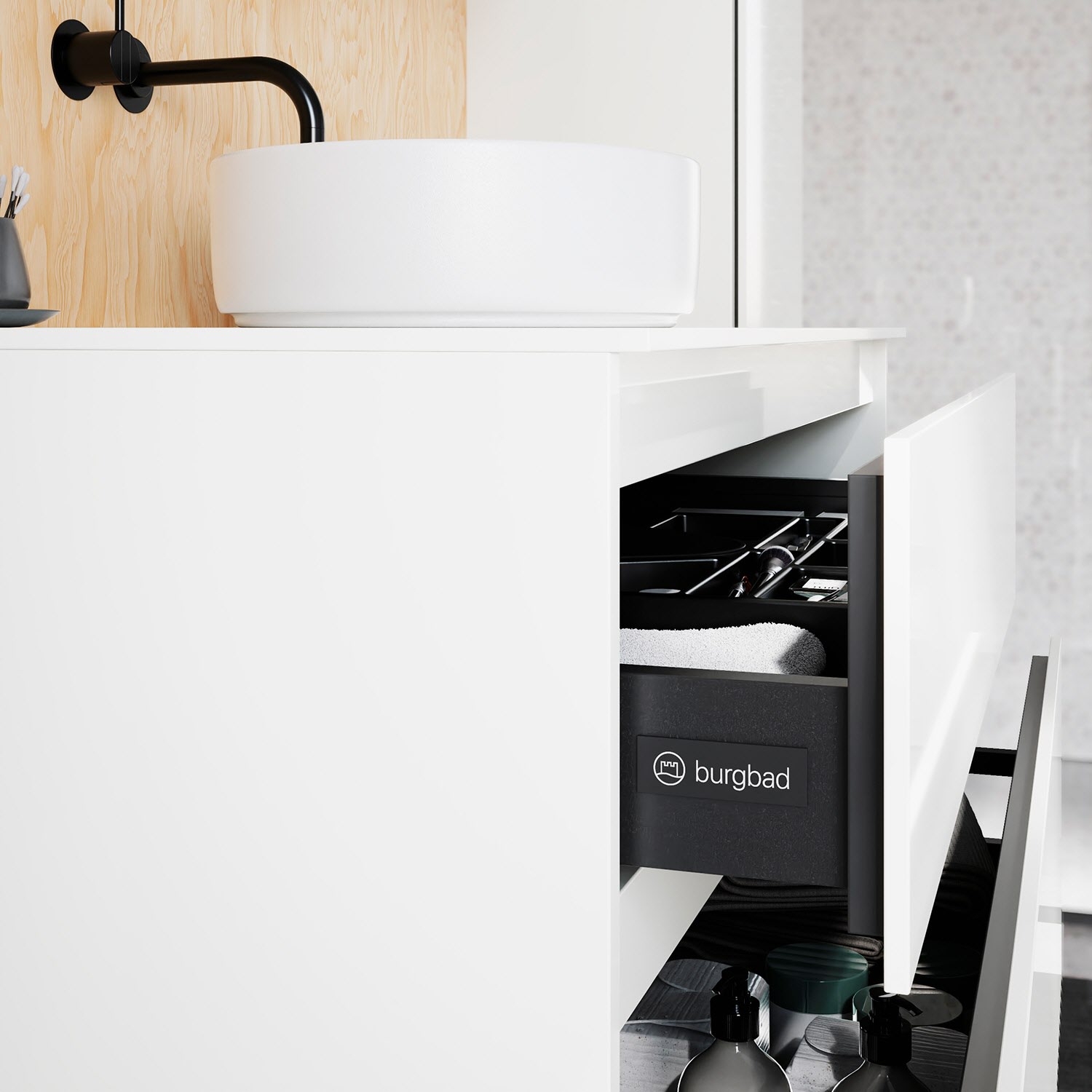 burgbad Lin20 Waschtischunterschrank mit Konsolenplatte 100 cm, 2 Auszüge, Beckenausschnitt mittig