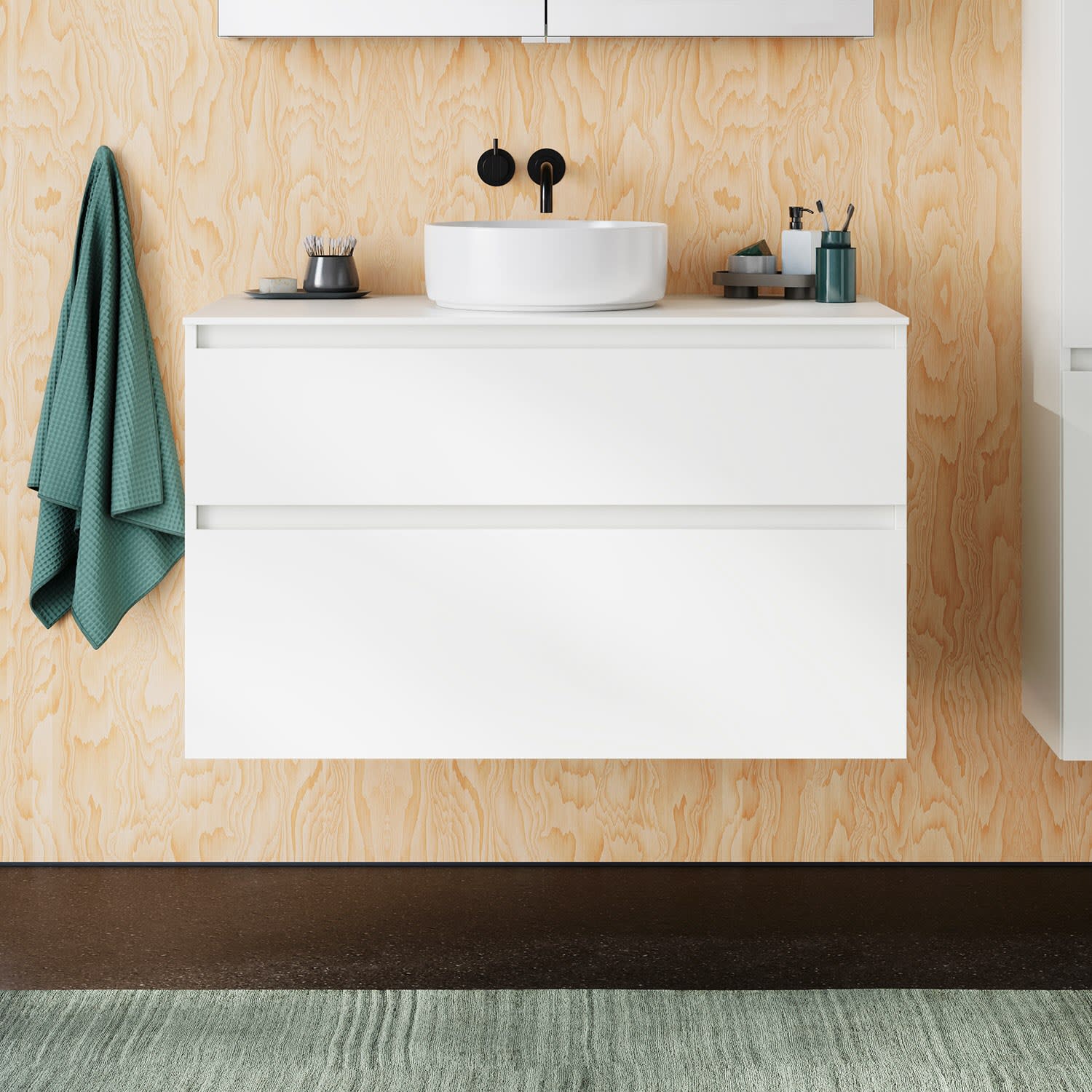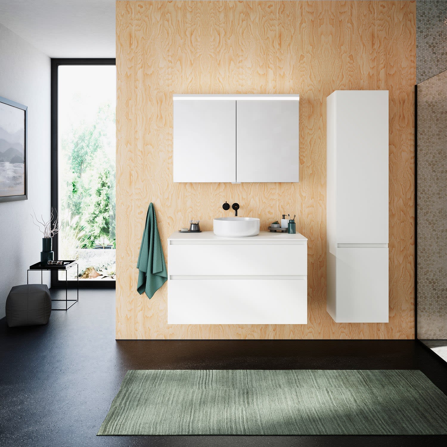 burgbad Lin20 Waschtischunterschrank mit Konsolenplatte 100 cm, 2 Auszüge, Beckenausschnitt mittig
