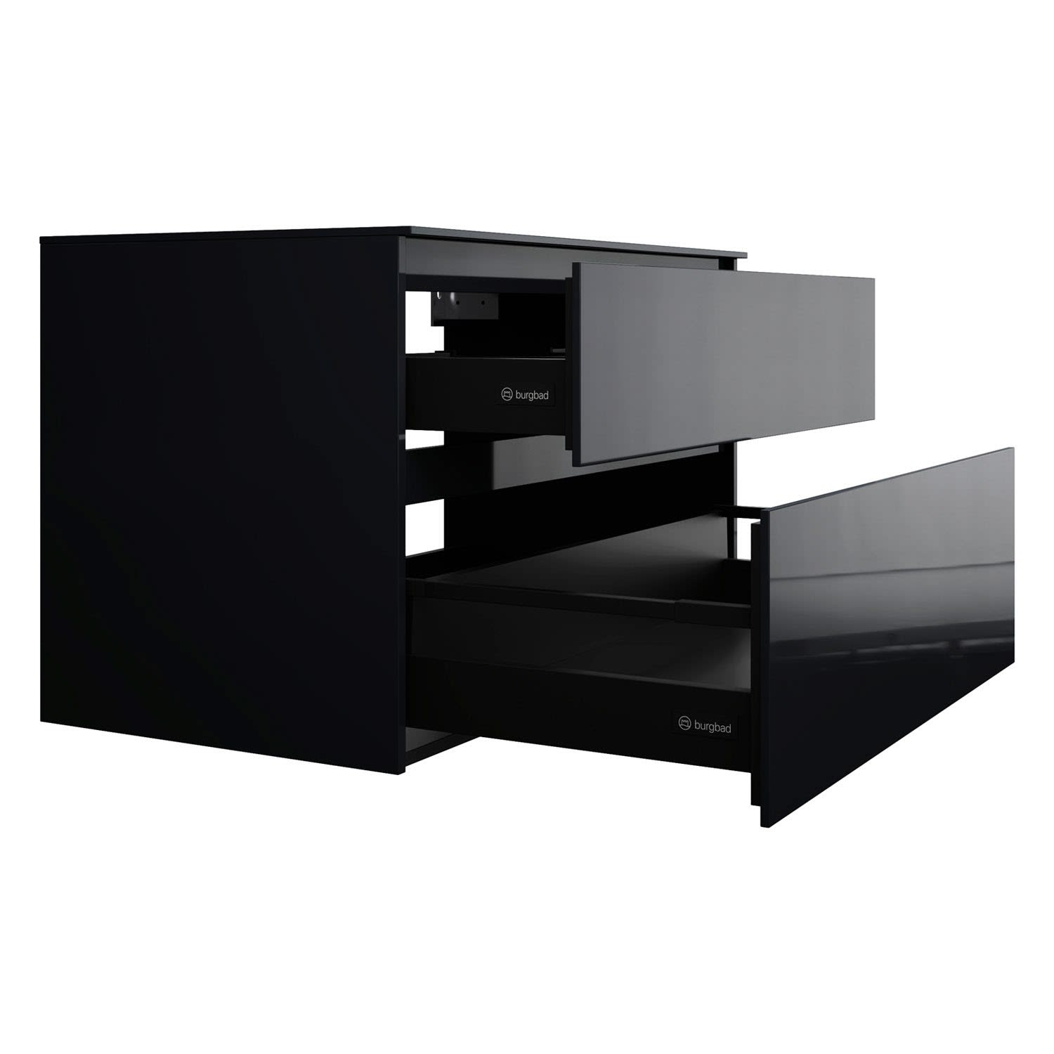 - Vollauszug mit geräuscharmem Selbsteinzugsmechanismus inklusive Anschlagdämpfung (Silent System)