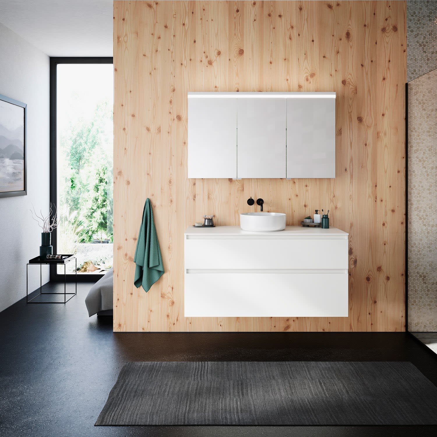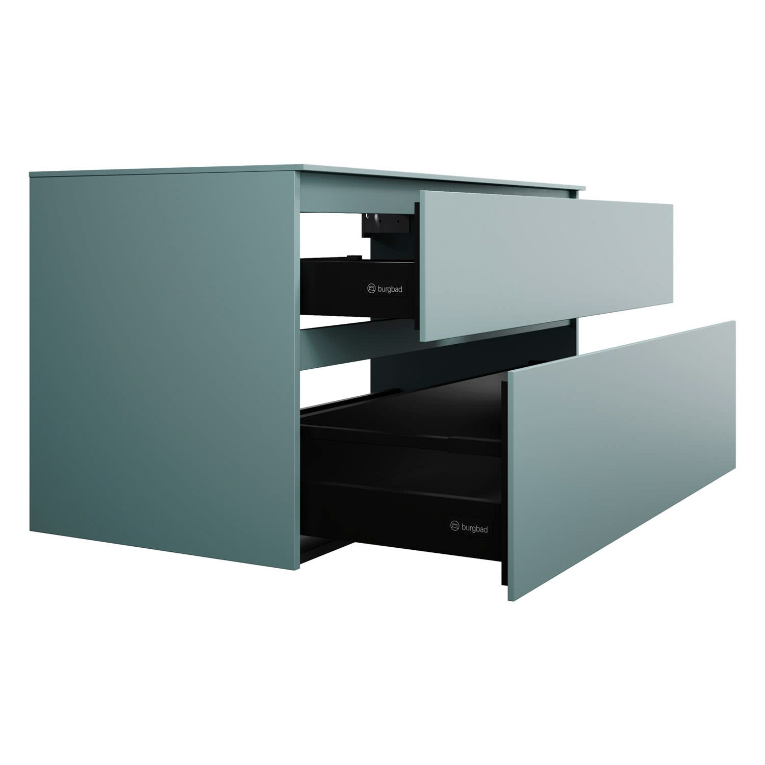 burgbad Lin20 Waschtischunterschrank mit Konsolenplatte 120 cm, 2 Auszüge, Beckenausschnitt mittig