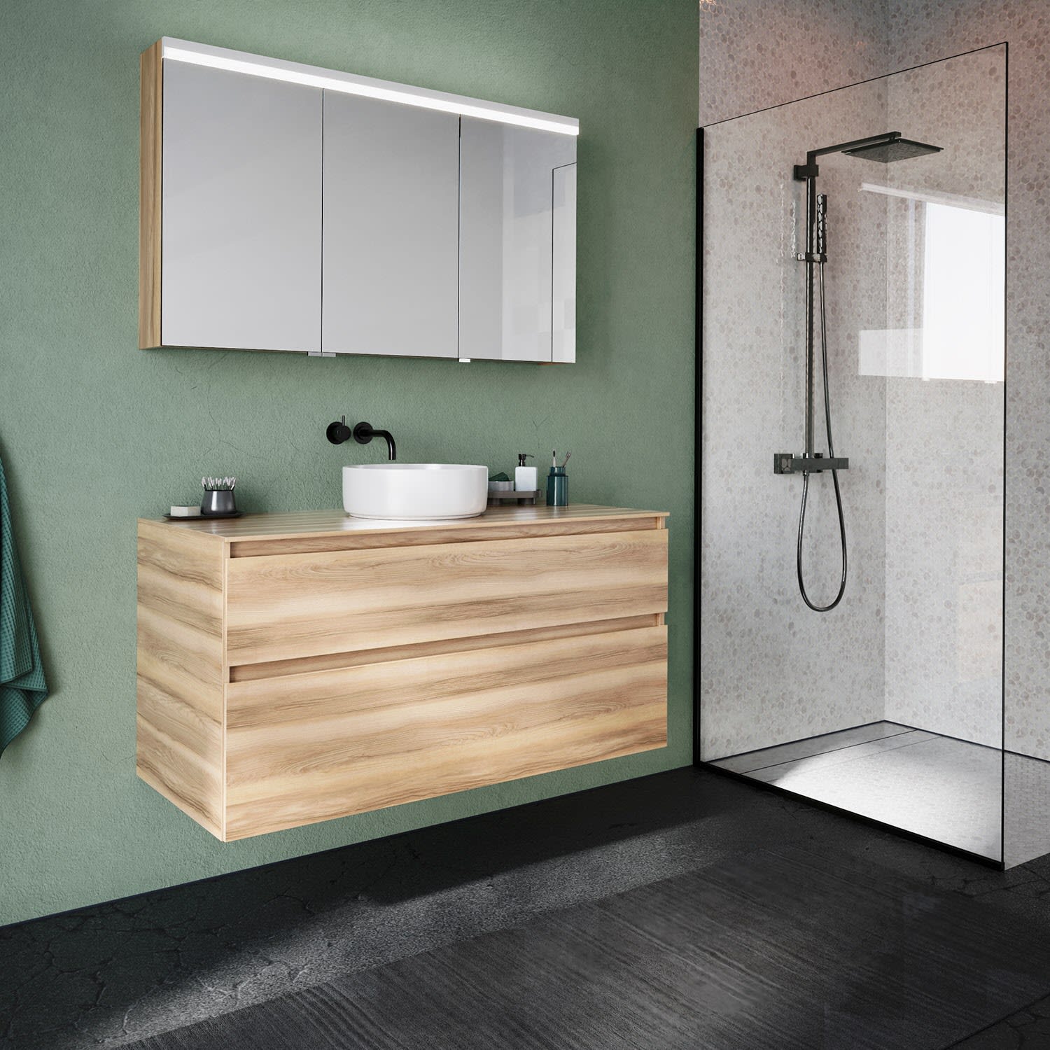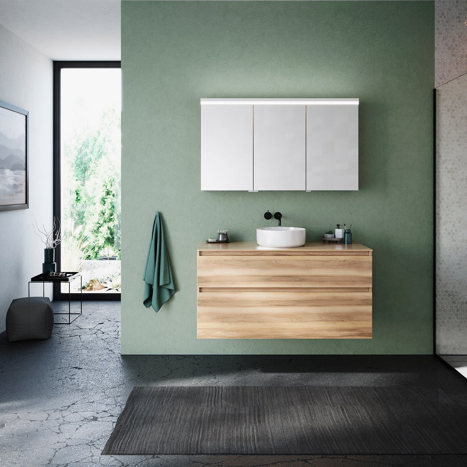 burgbad Lin20 Waschtischunterschrank mit Konsolenplatte 120 cm, 2 Auszüge, Beckenausschnitt mittig