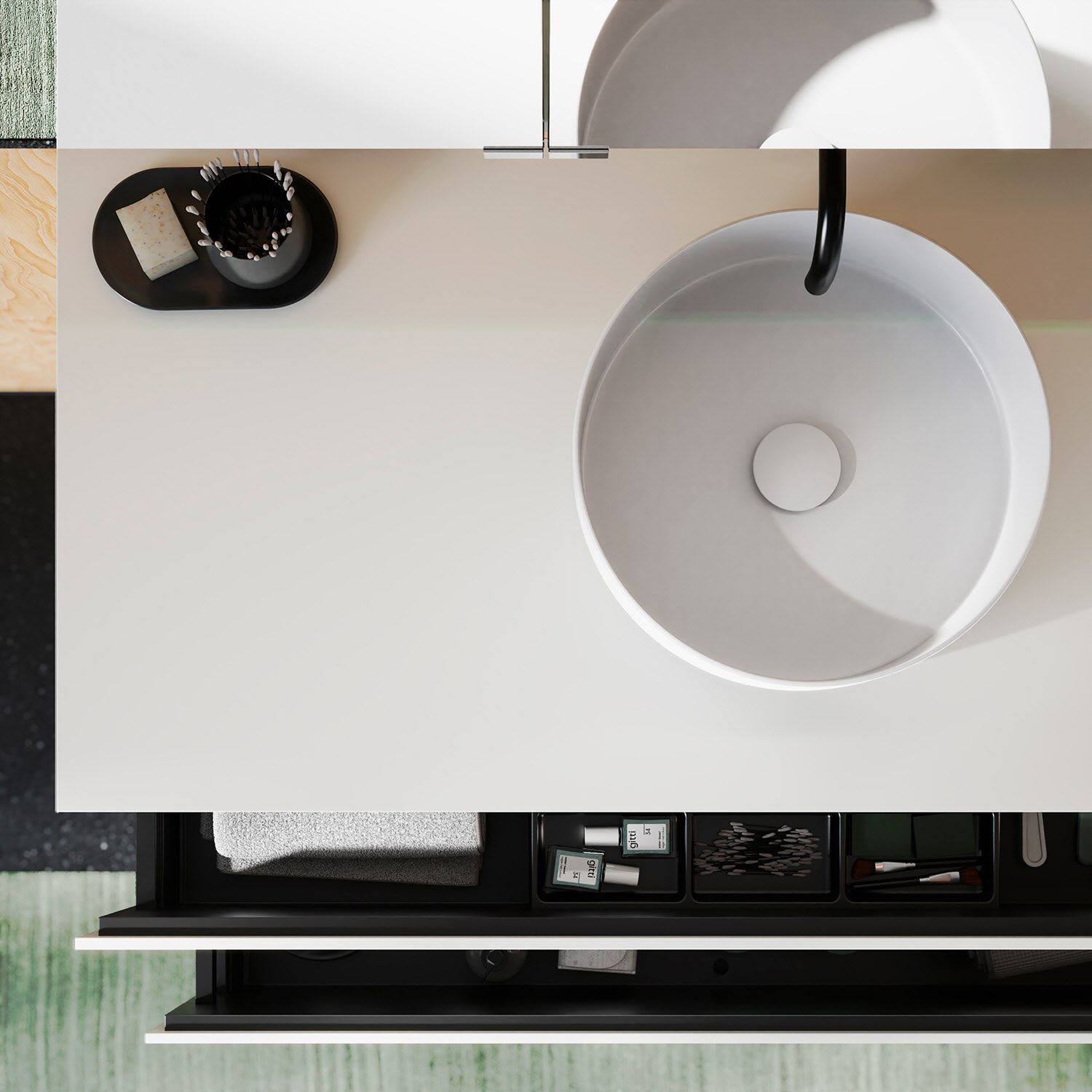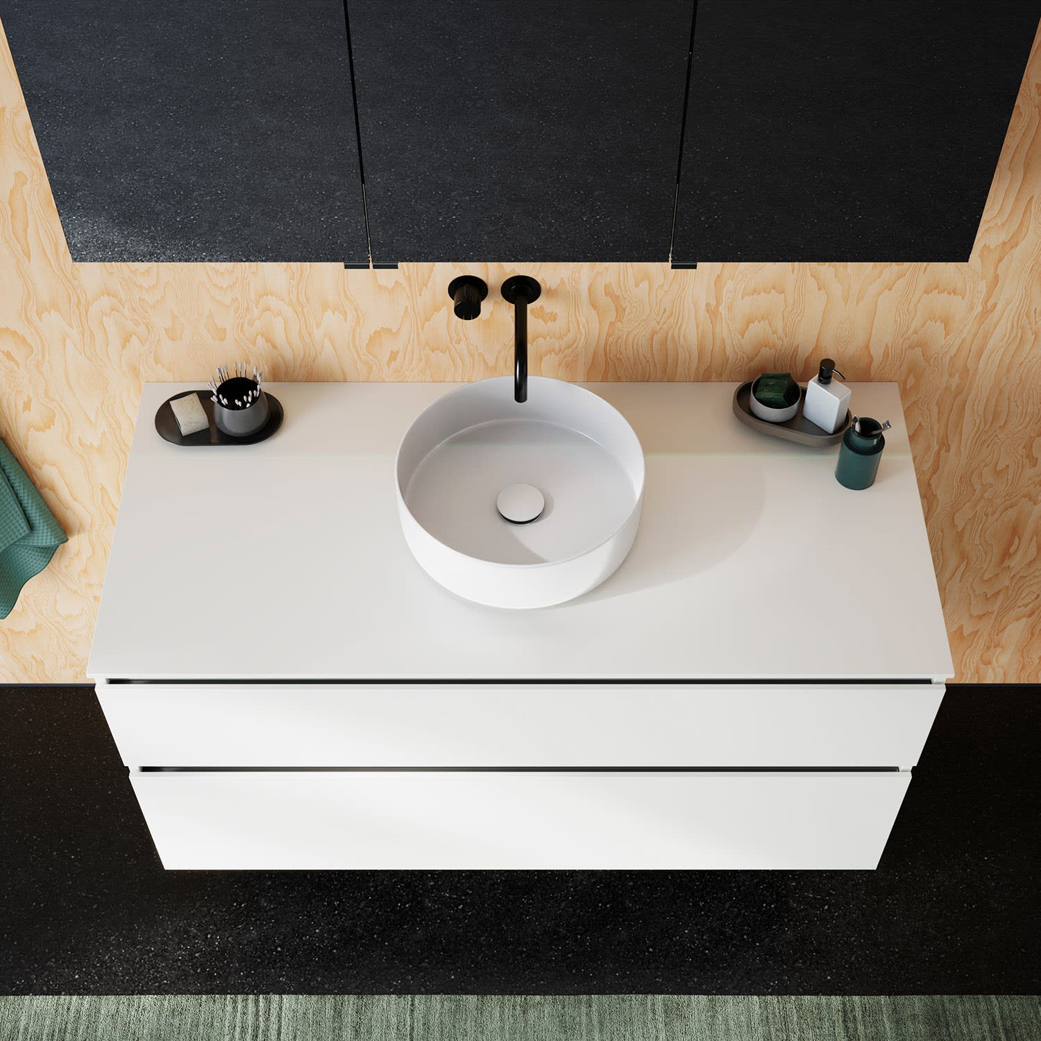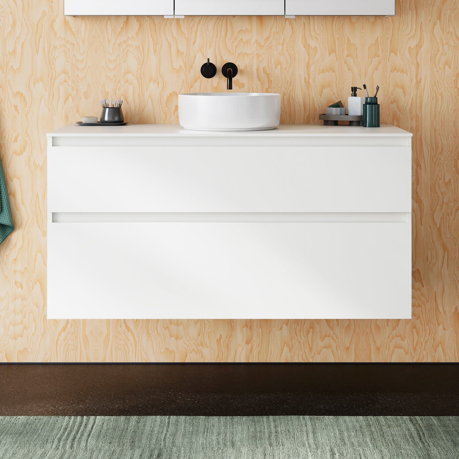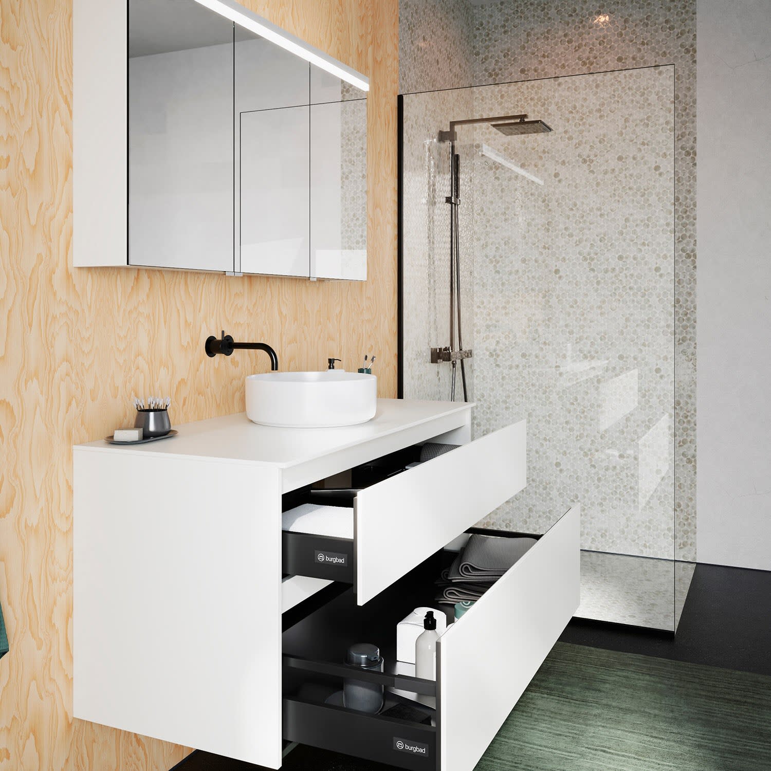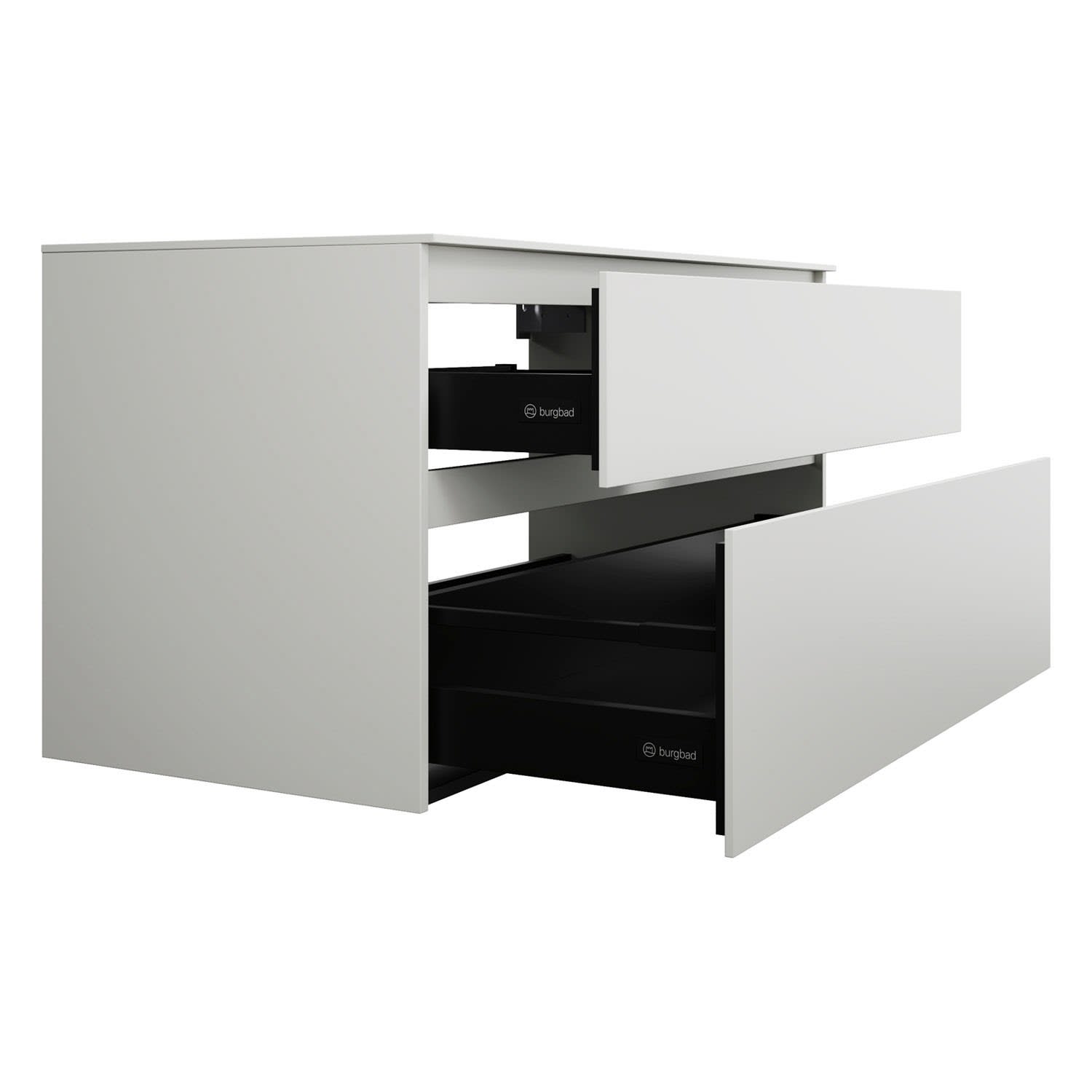 burgbad Lin20 Waschtischunterschrank mit Konsolenplatte 120 cm, 2 Auszüge, Beckenausschnitt mittig