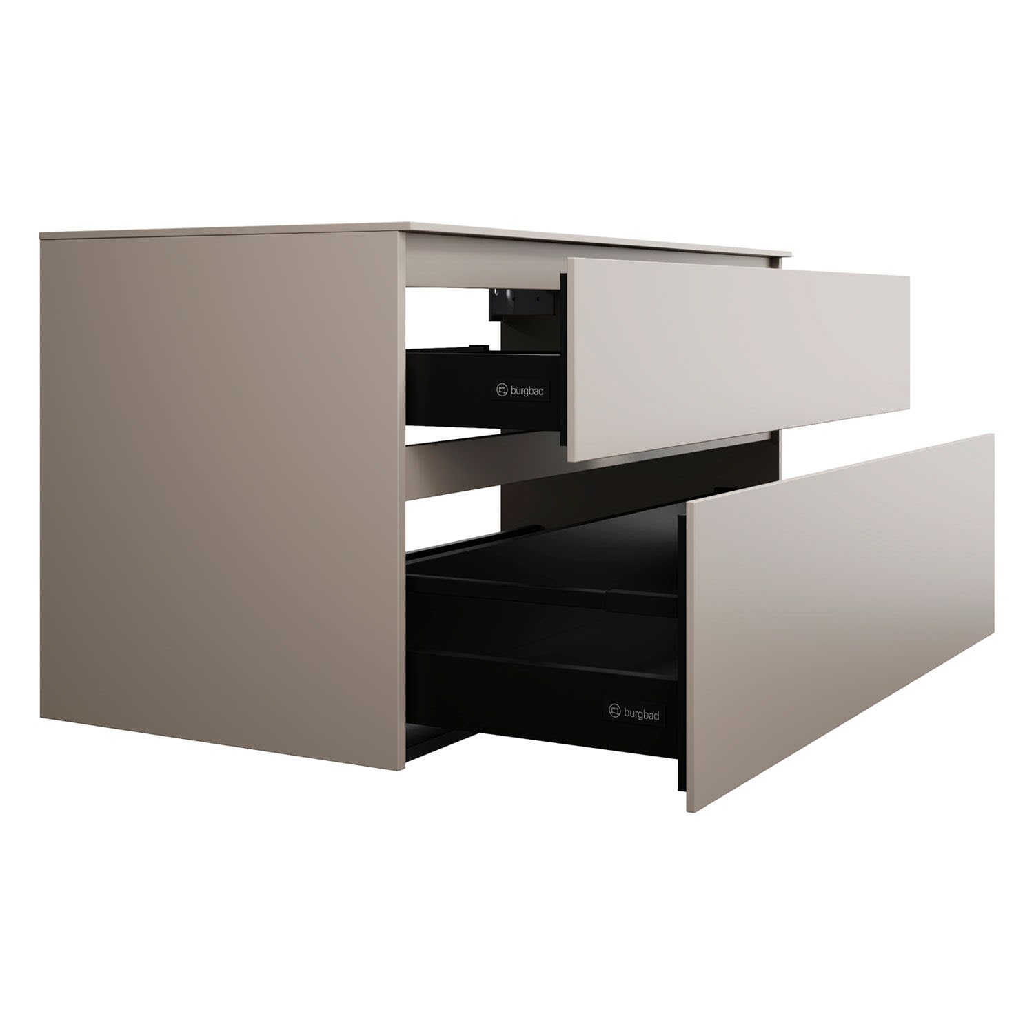 burgbad Lin20 Waschtischunterschrank mit Konsolenplatte 120 cm, 2 Auszüge, Beckenausschnitt mittig