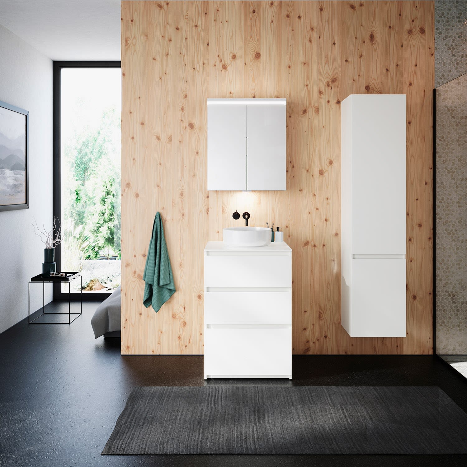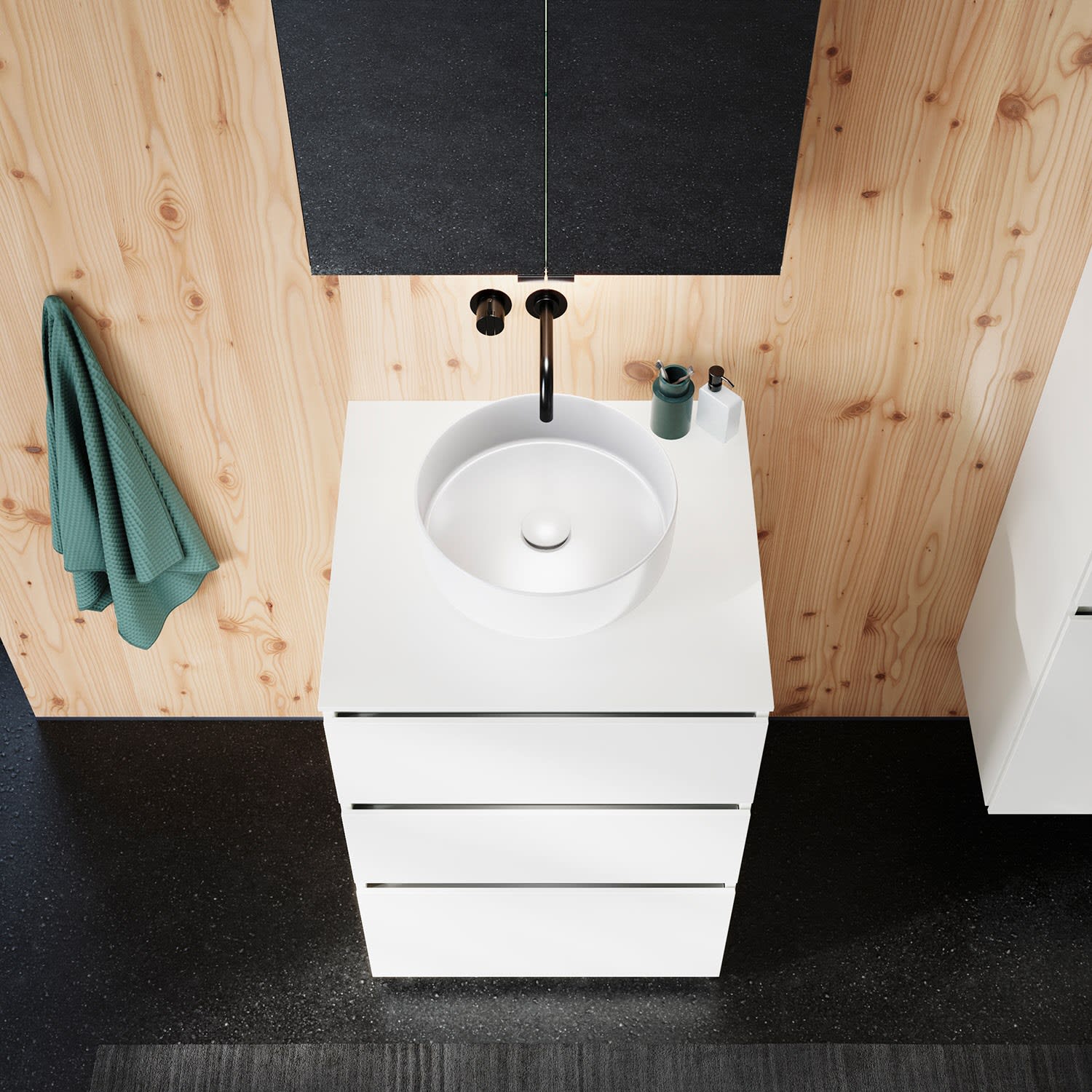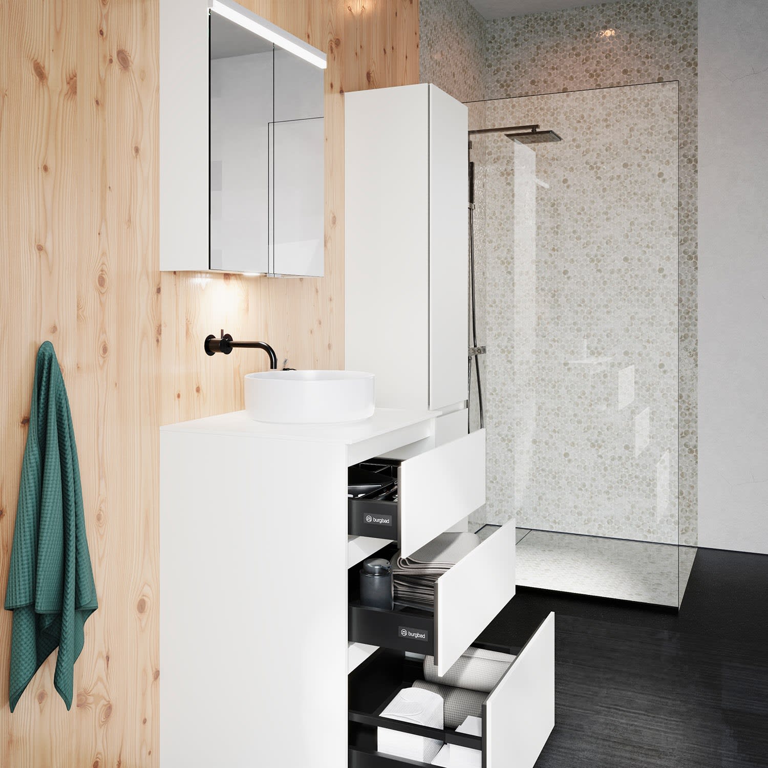 burgbad Lin20 Waschtischunterschrank mit Konsolenplatte 60 cm, 3 Auszüge, Beckenausschnitt mittig