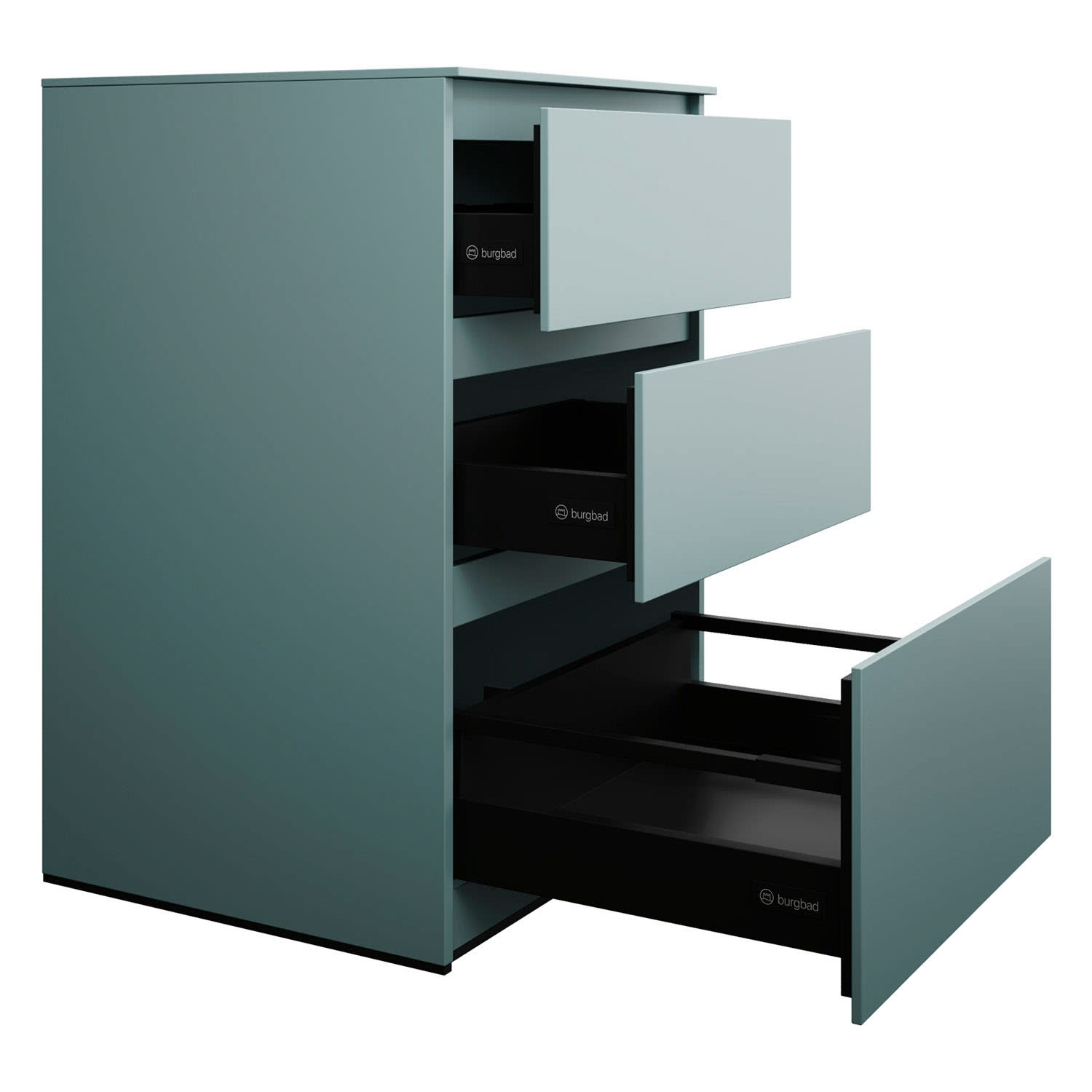 burgbad Lin20 Waschtischunterschrank mit Konsolenplatte 60 cm, 3 Auszüge, Beckenausschnitt mittig