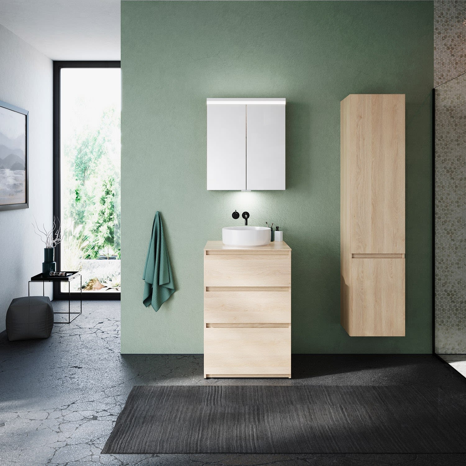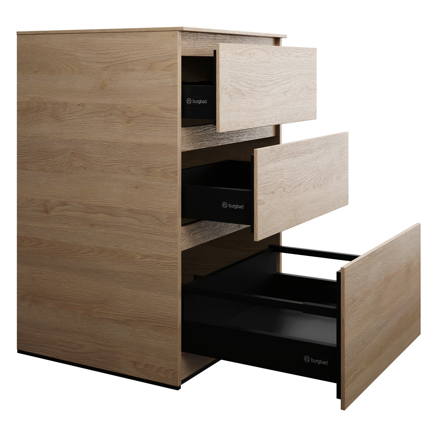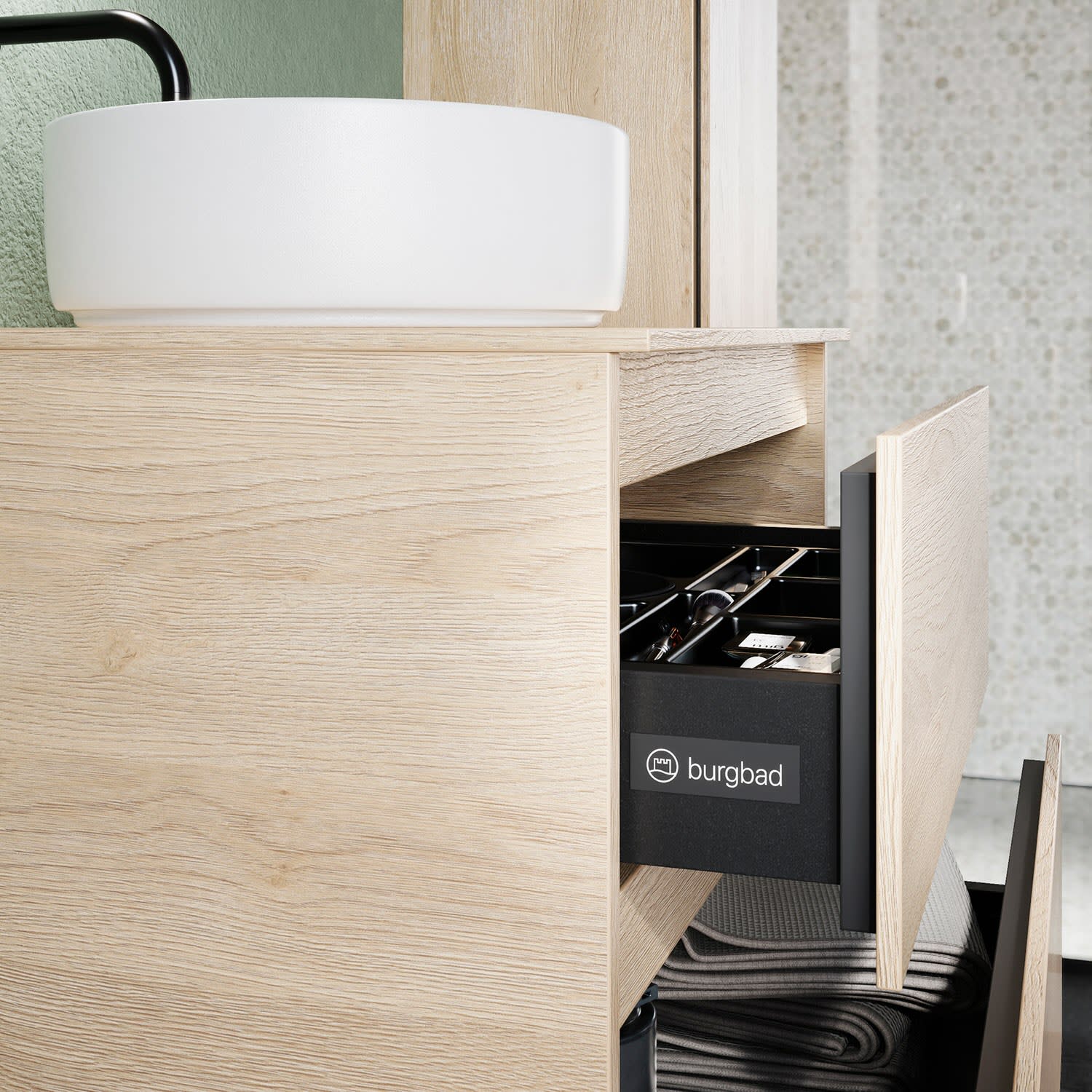 burgbad Lin20 Waschtischunterschrank mit Konsolenplatte 60 cm, 3 Auszüge, Beckenausschnitt mittig
