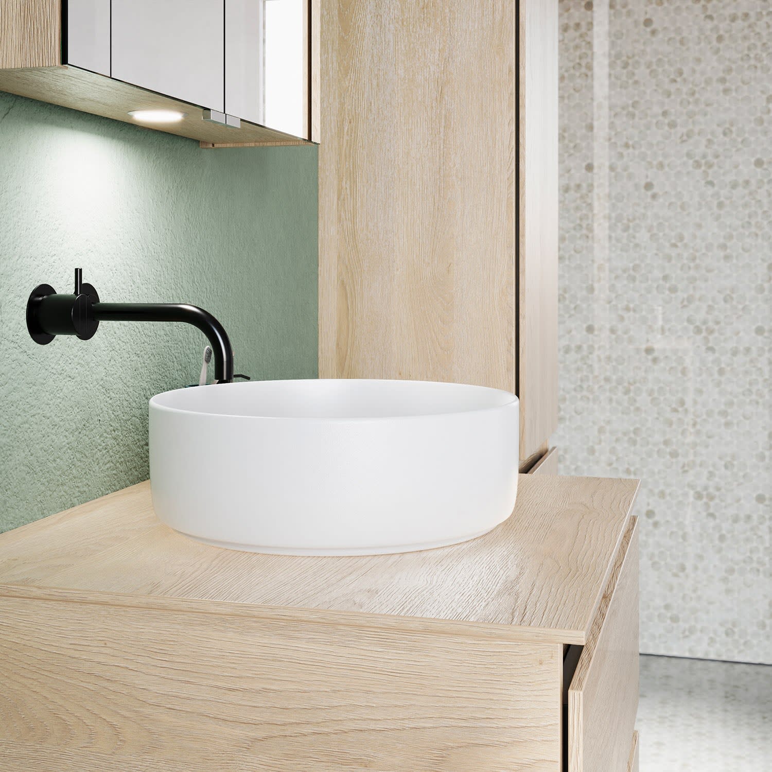 Die Waschtischplatte wird ohne Armaturbohrung geliefert. Armaturbohrungen müssen bauseits vorgenommen werden.