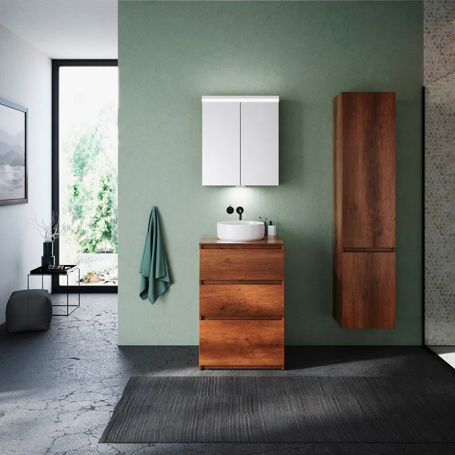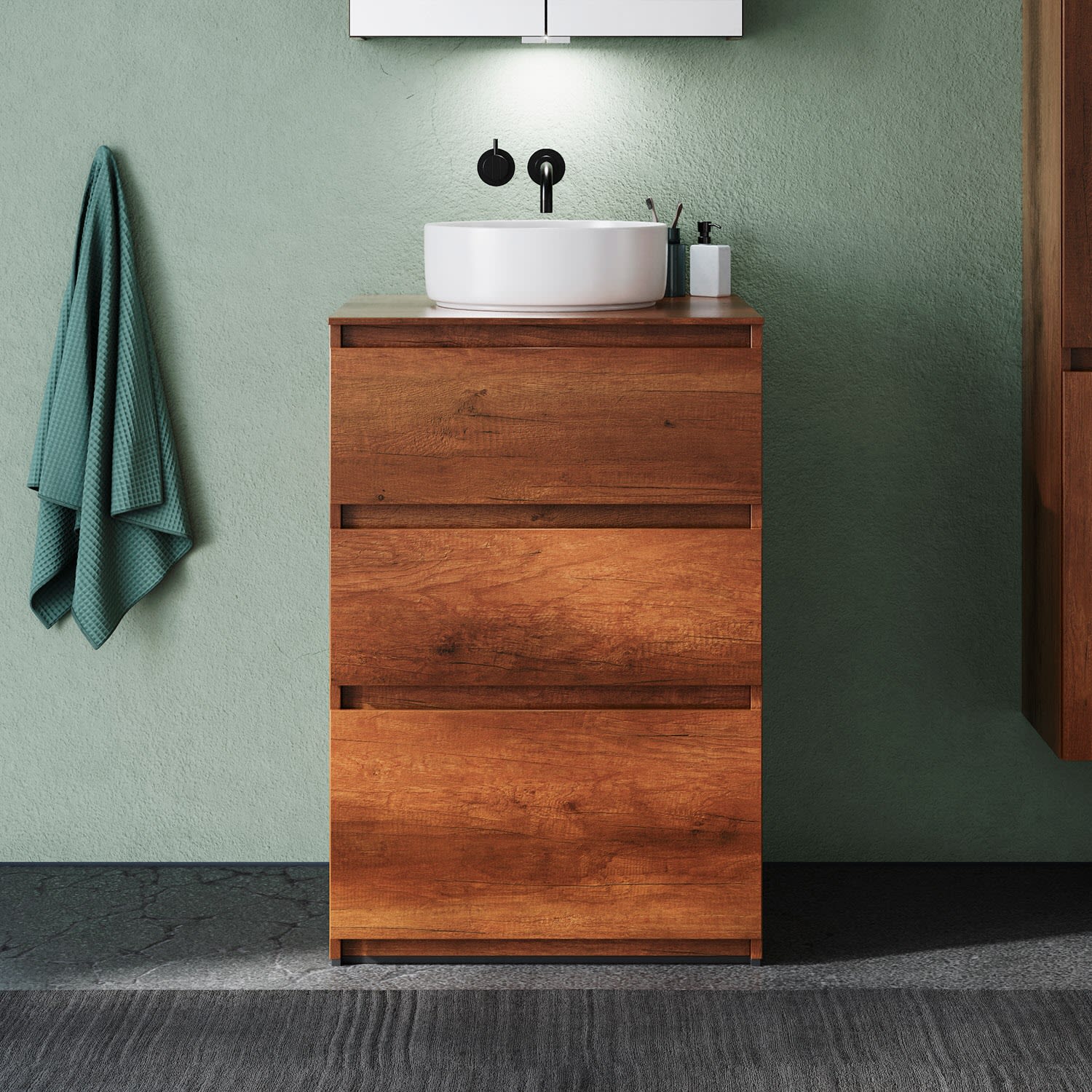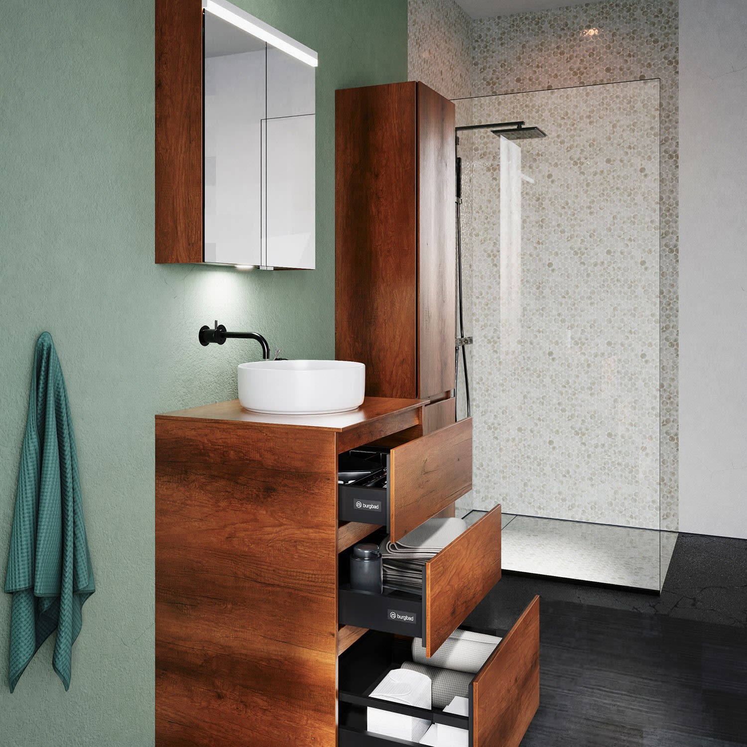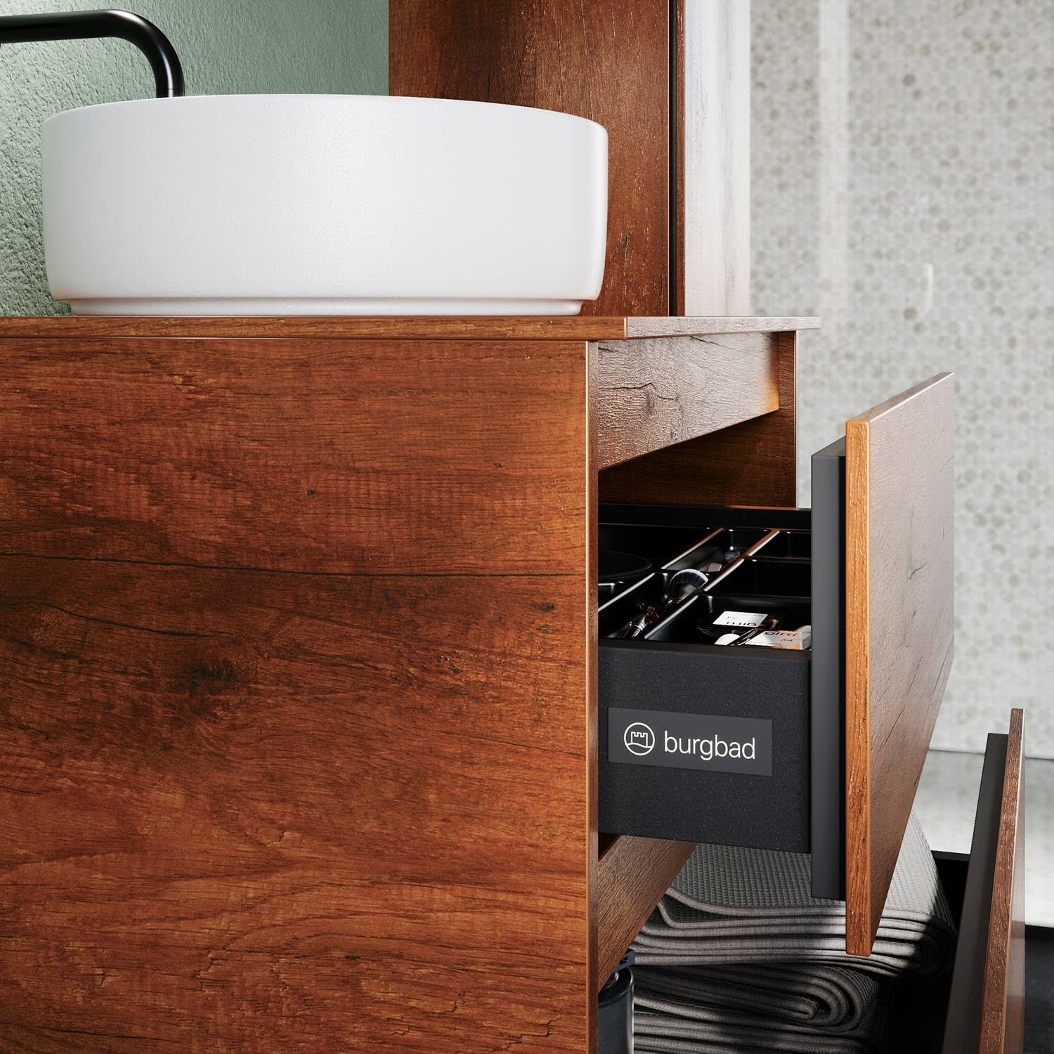 burgbad Lin20 Waschtischunterschrank mit Konsolenplatte 60 cm, 3 Auszüge, Beckenausschnitt mittig
