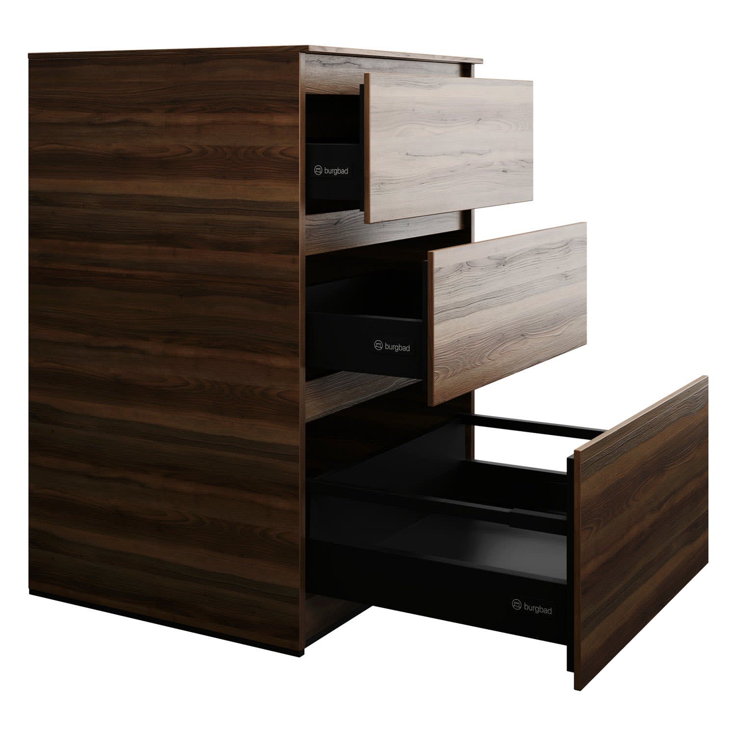 burgbad Lin20 Waschtischunterschrank mit Konsolenplatte 60 cm, 3 Auszüge, Beckenausschnitt mittig