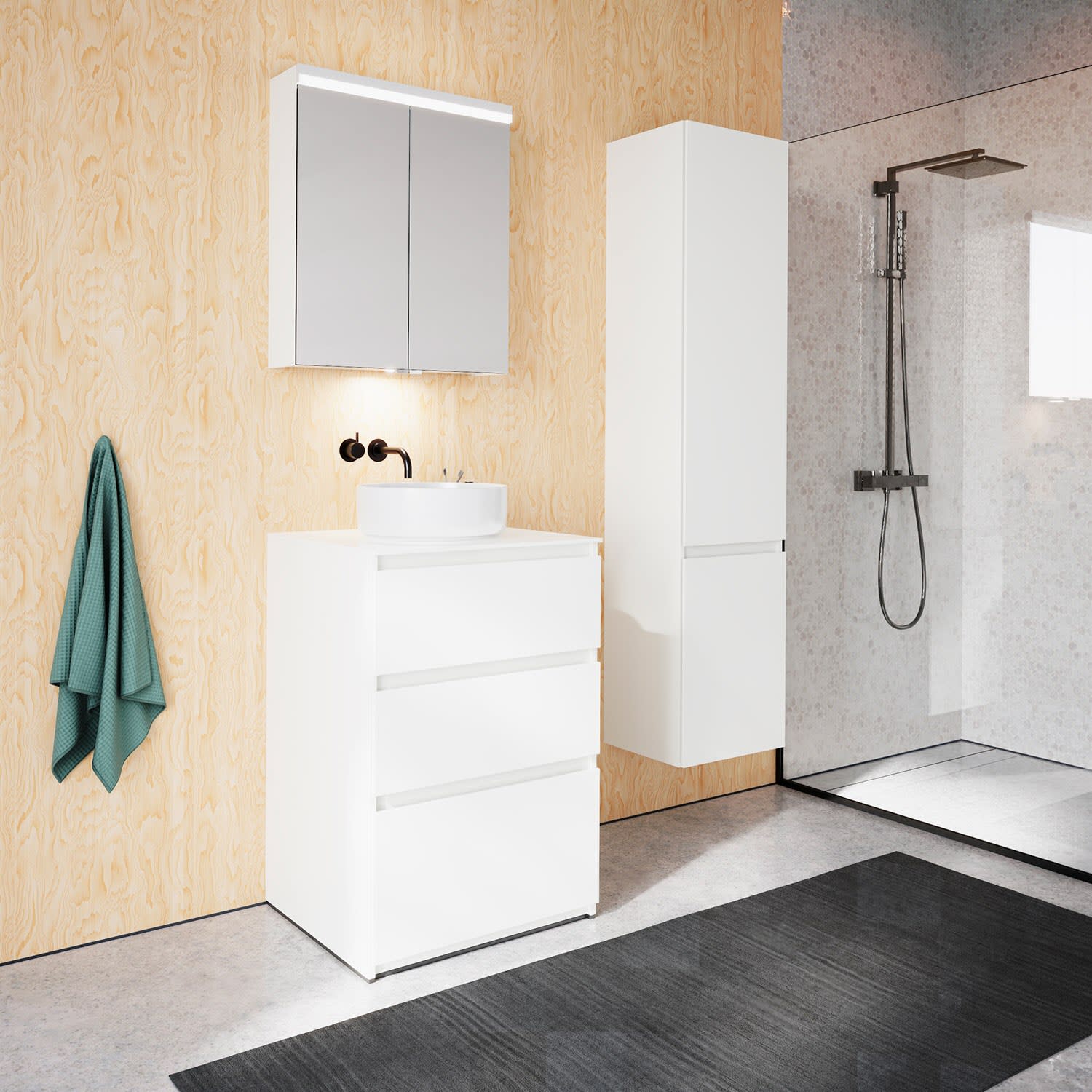 burgbad Lin20 Waschtischunterschrank mit Konsolenplatte 60 cm, 3 Auszüge, Beckenausschnitt mittig