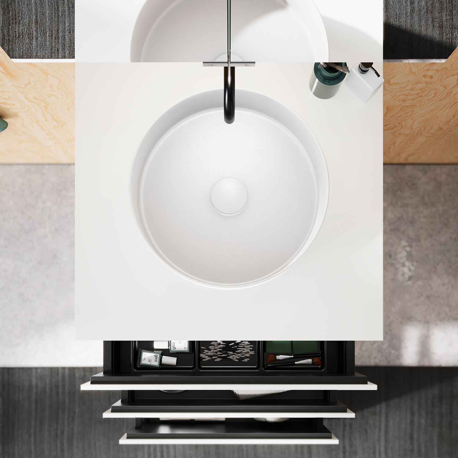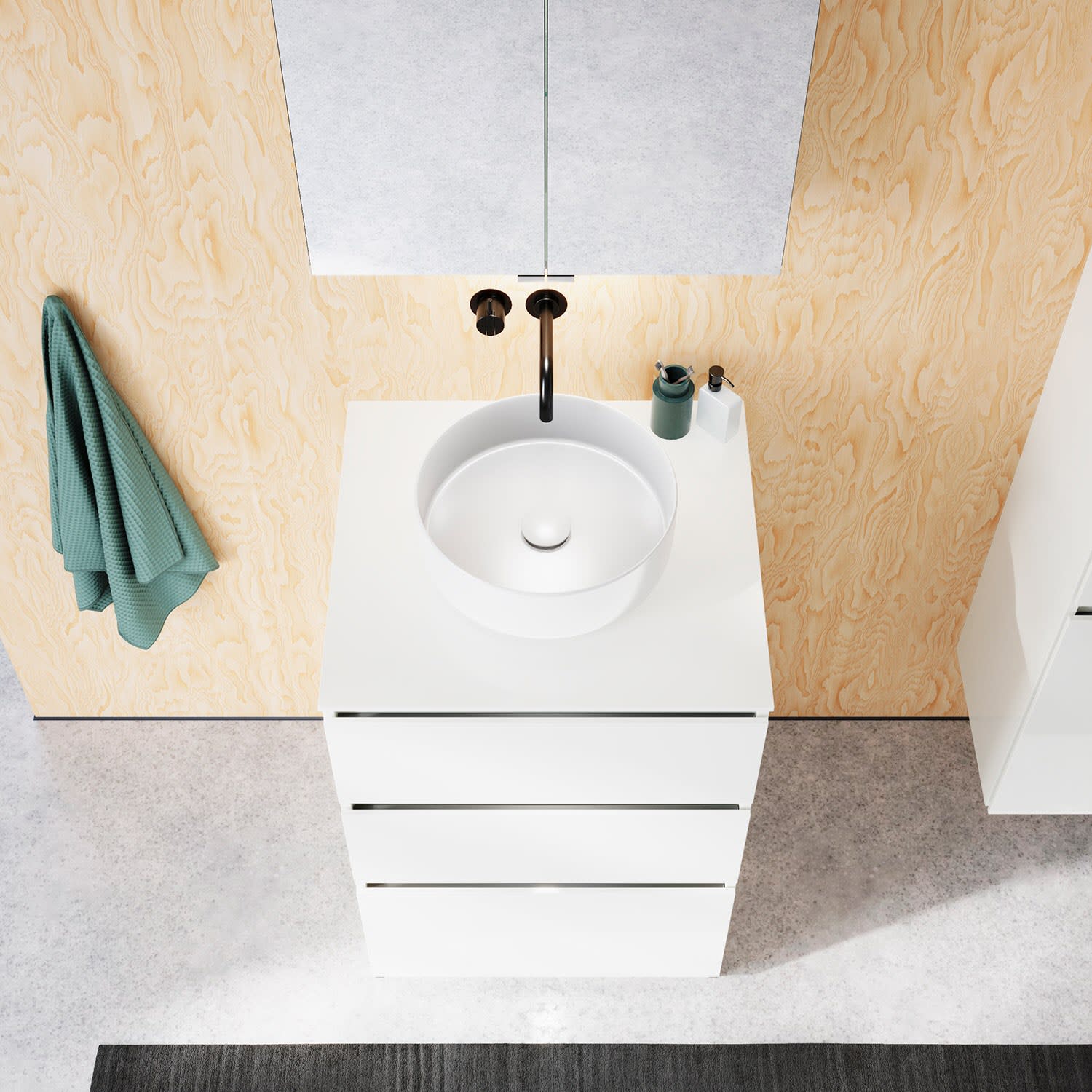 Die Waschtischplatte wird ohne Armaturbohrung geliefert. Armaturbohrungen müssen bauseits vorgenommen werden.