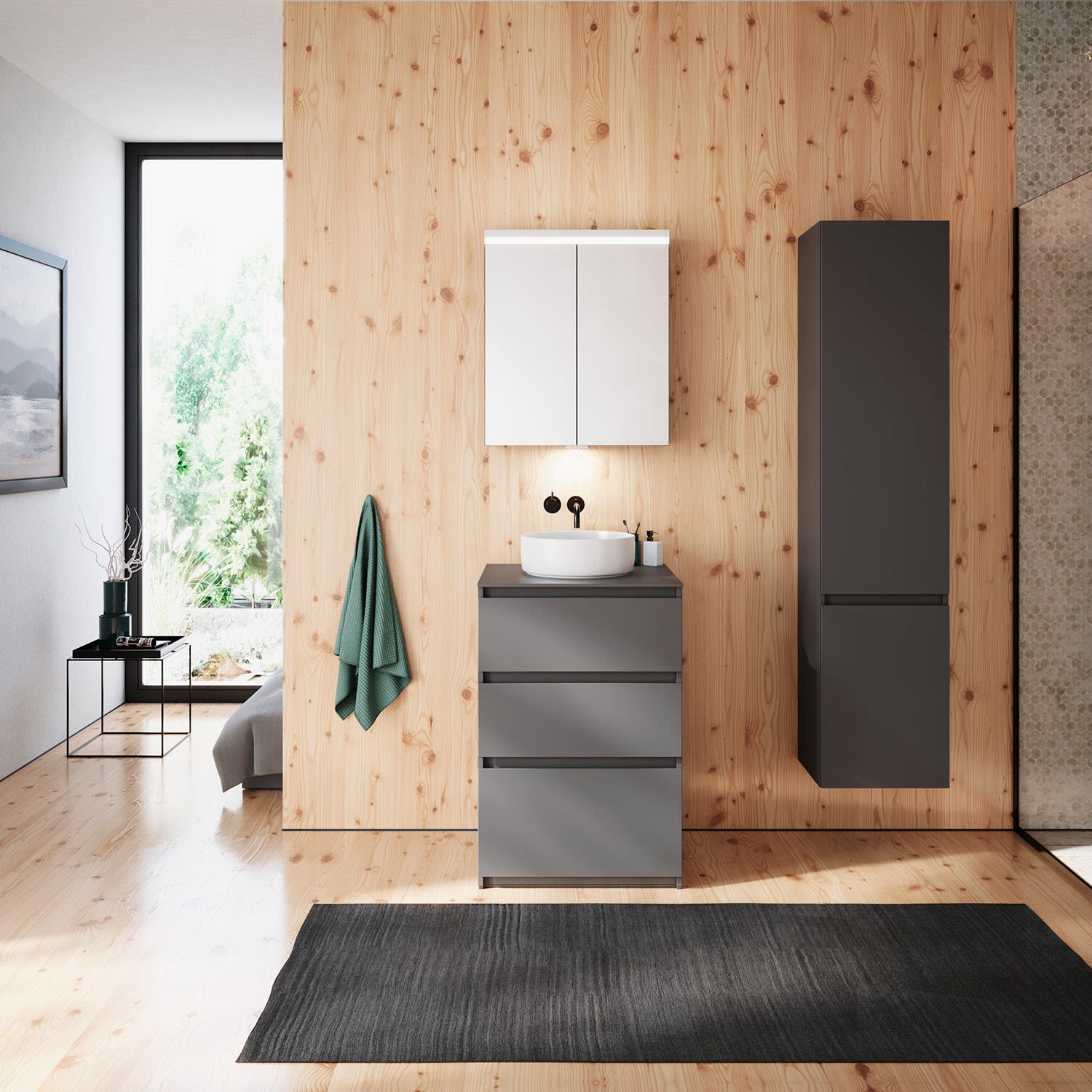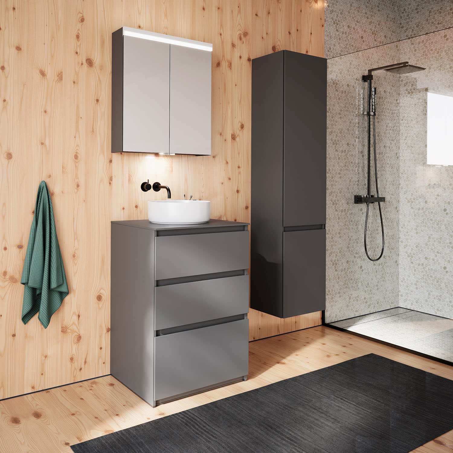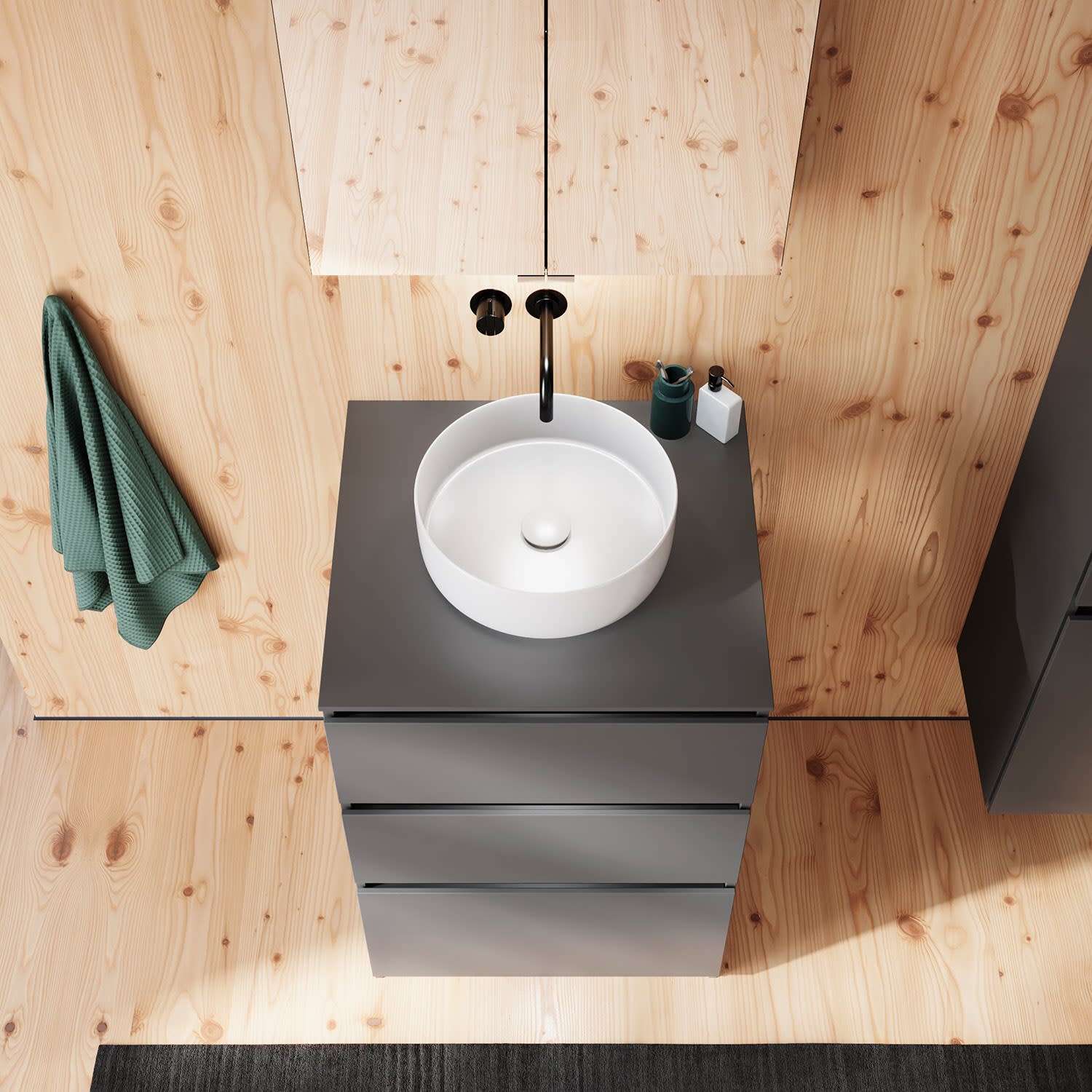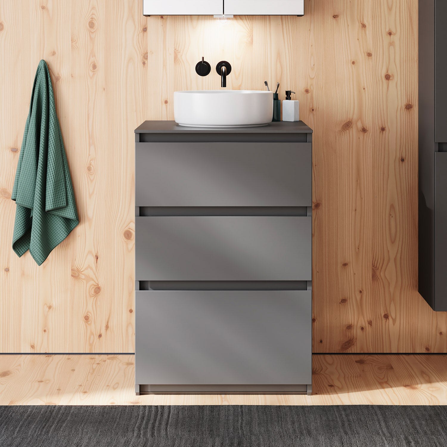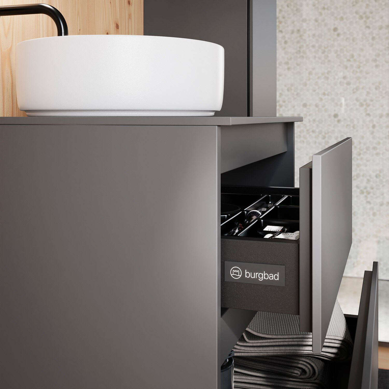 burgbad Lin20 Waschtischunterschrank mit Konsolenplatte 60 cm, 3 Auszüge, Beckenausschnitt mittig