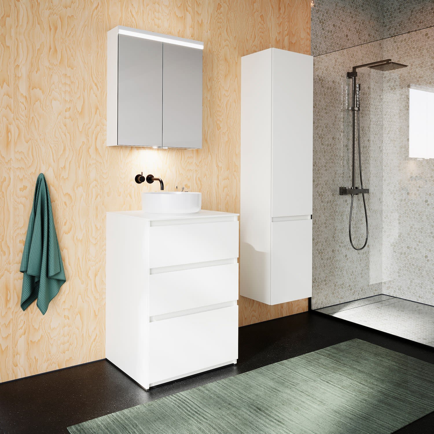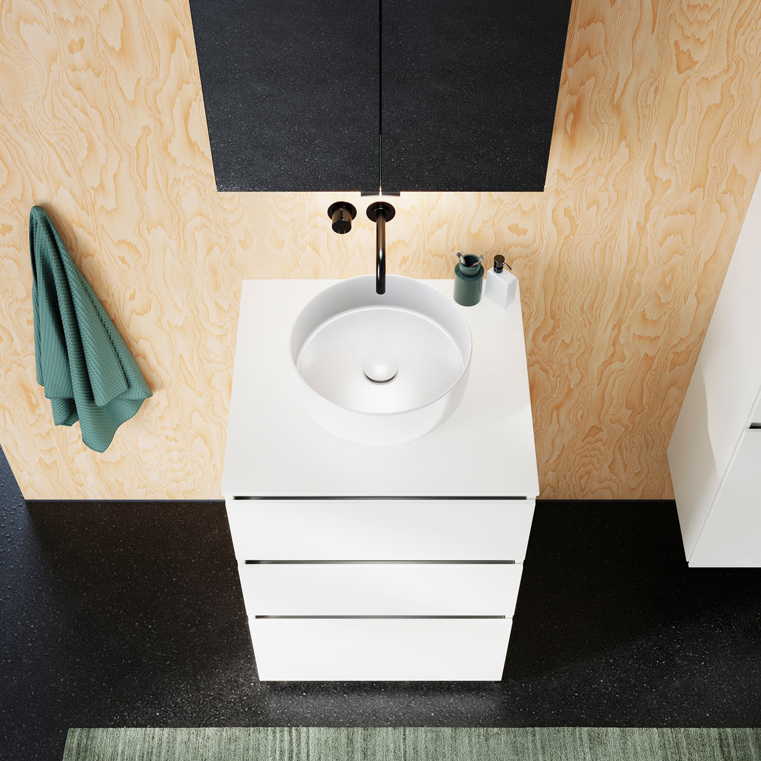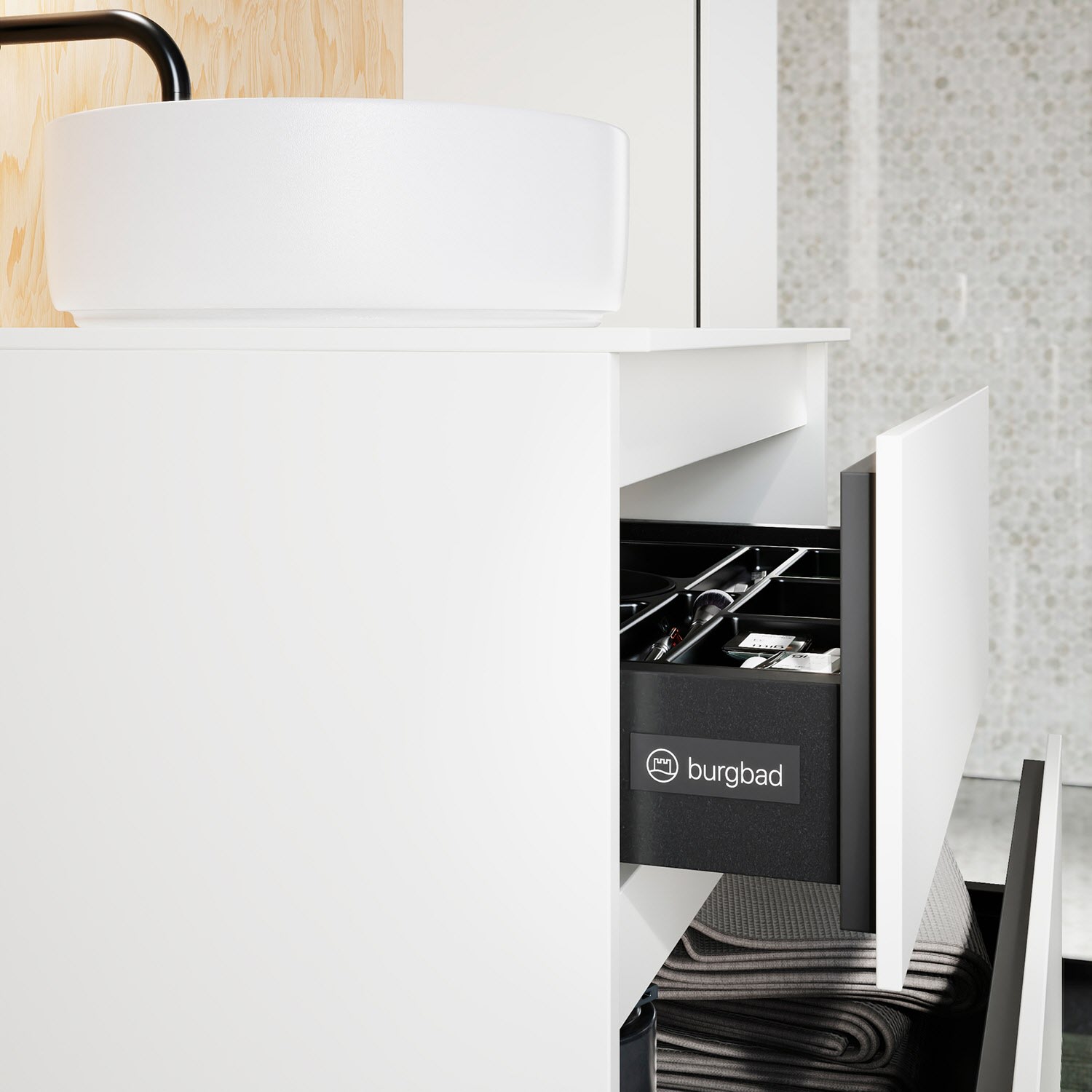 burgbad Lin20 Waschtischunterschrank mit Konsolenplatte 60 cm, 3 Auszüge, Beckenausschnitt mittig