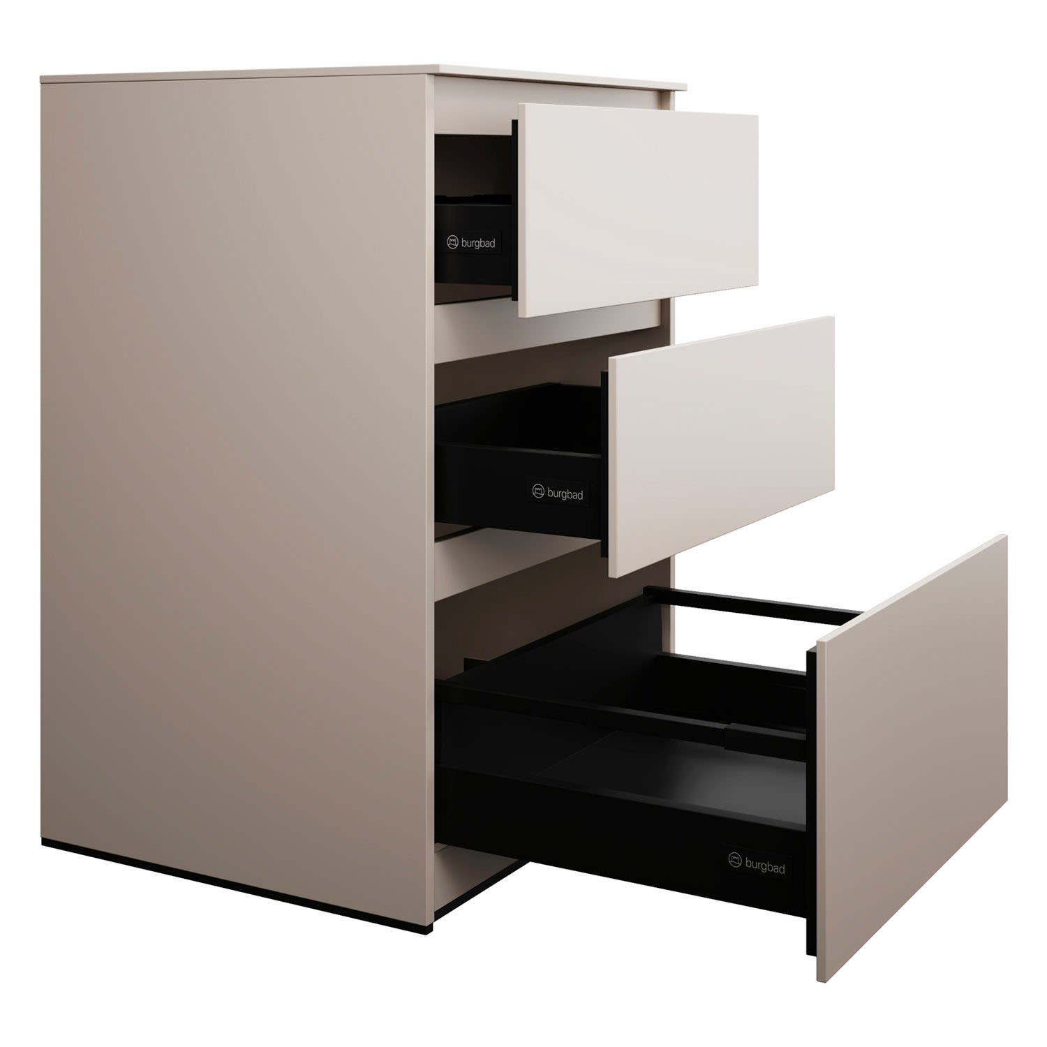 burgbad Lin20 Waschtischunterschrank mit Konsolenplatte 60 cm, 3 Auszüge, Beckenausschnitt mittig