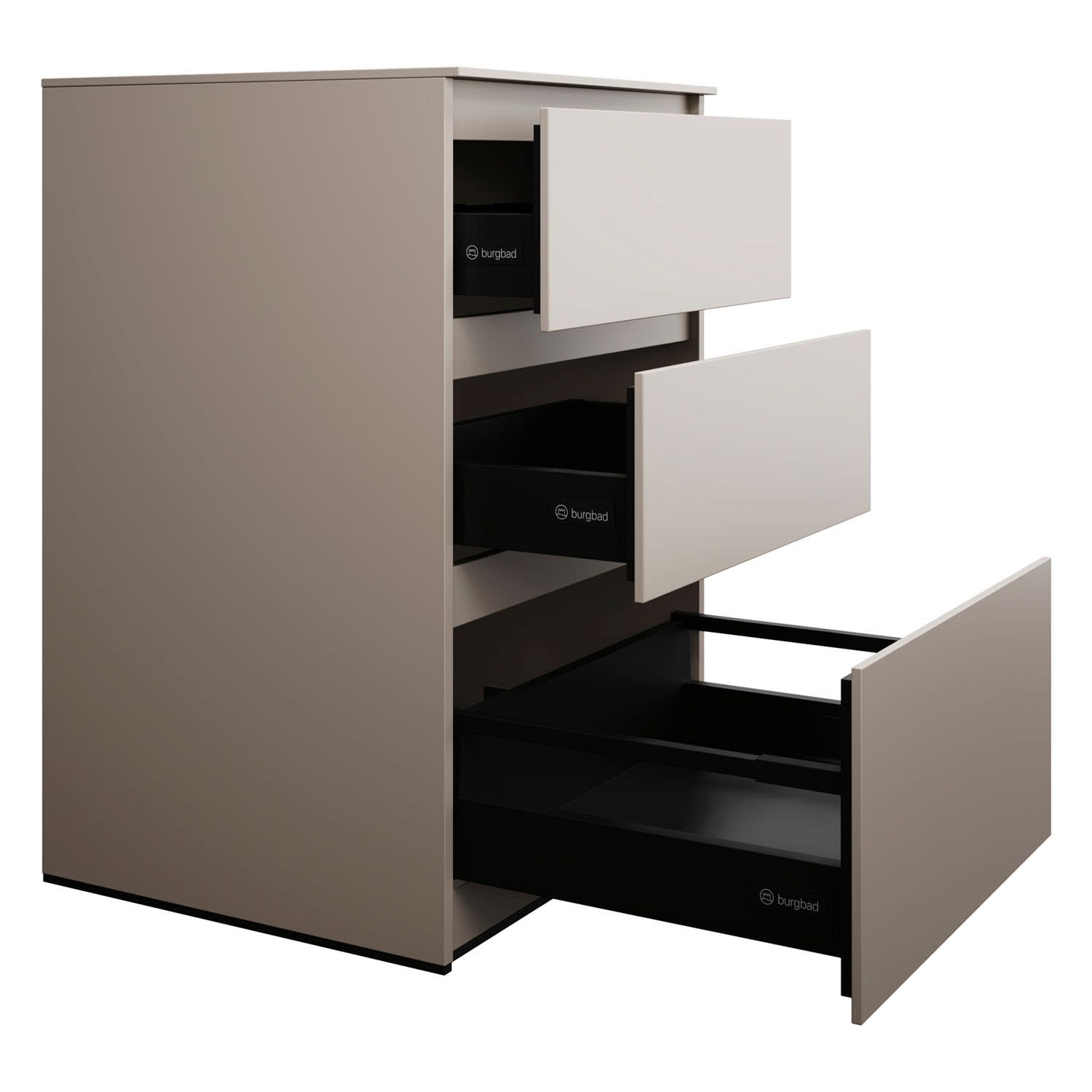burgbad Lin20 Waschtischunterschrank mit Konsolenplatte 60 cm, 3 Auszüge, Beckenausschnitt mittig