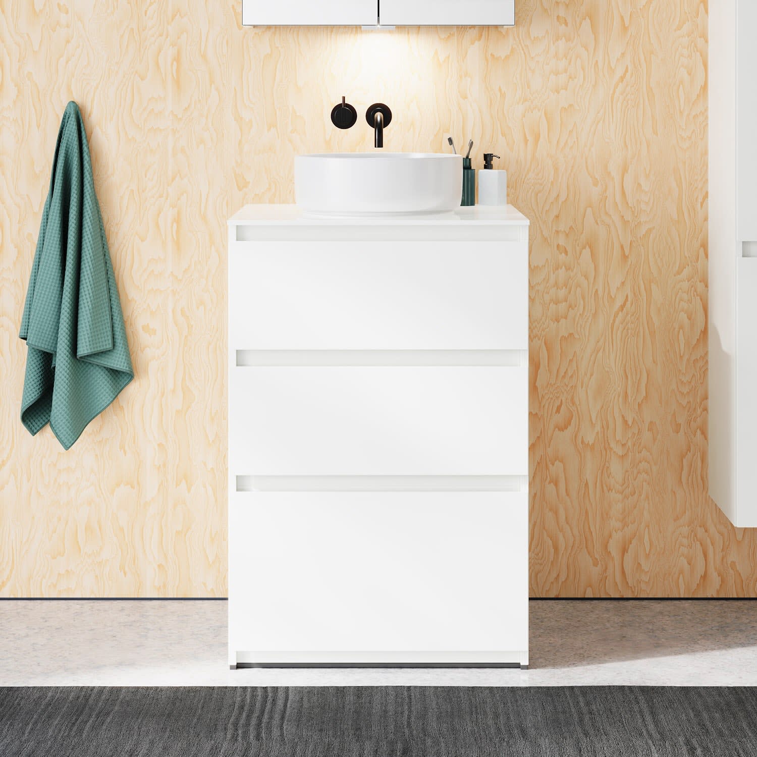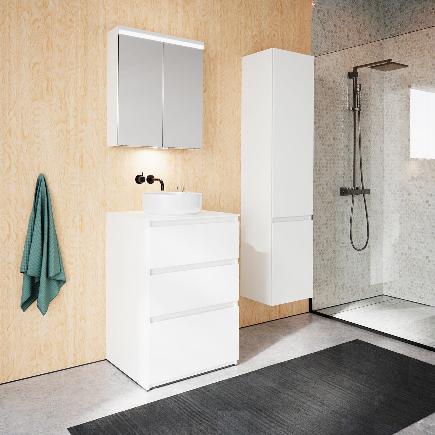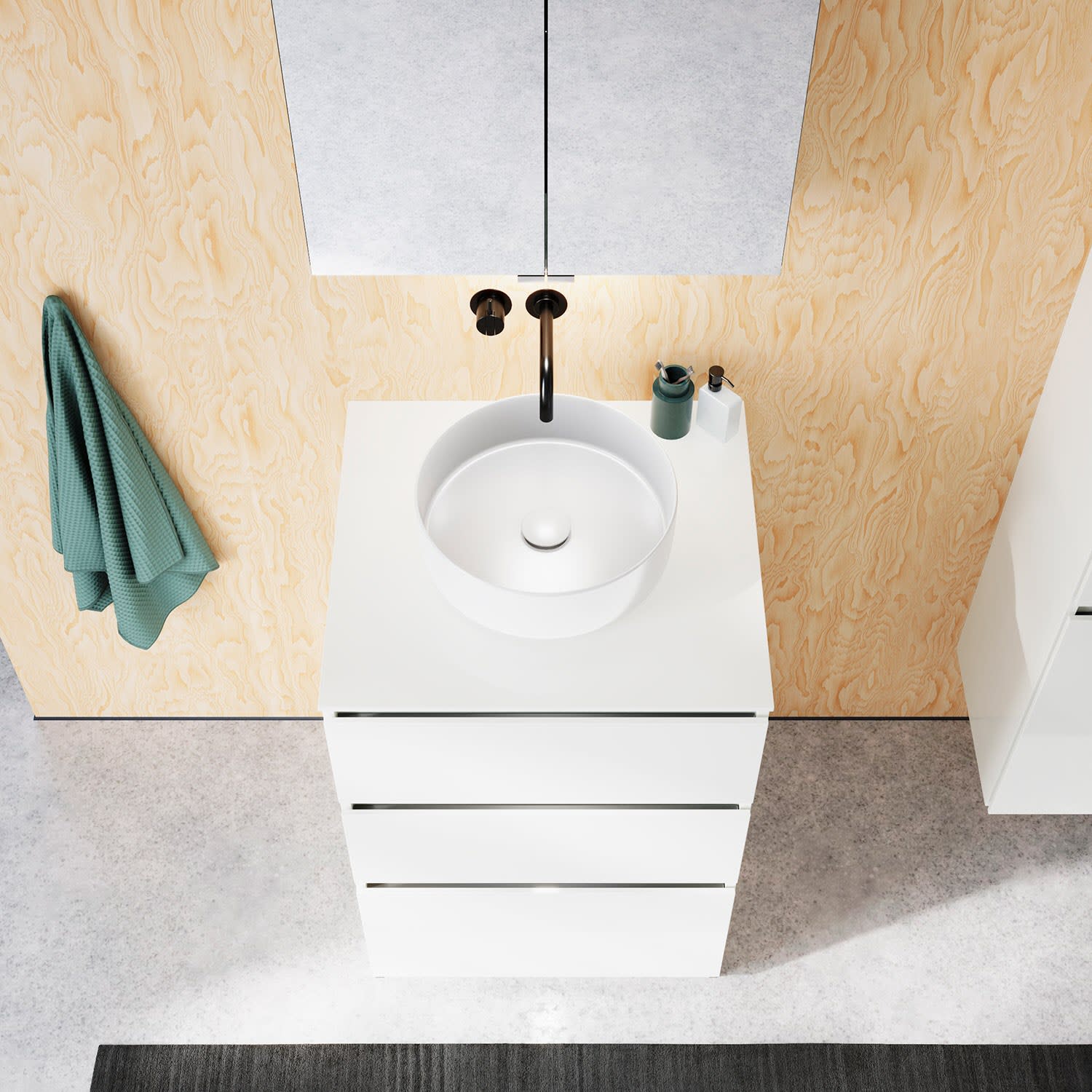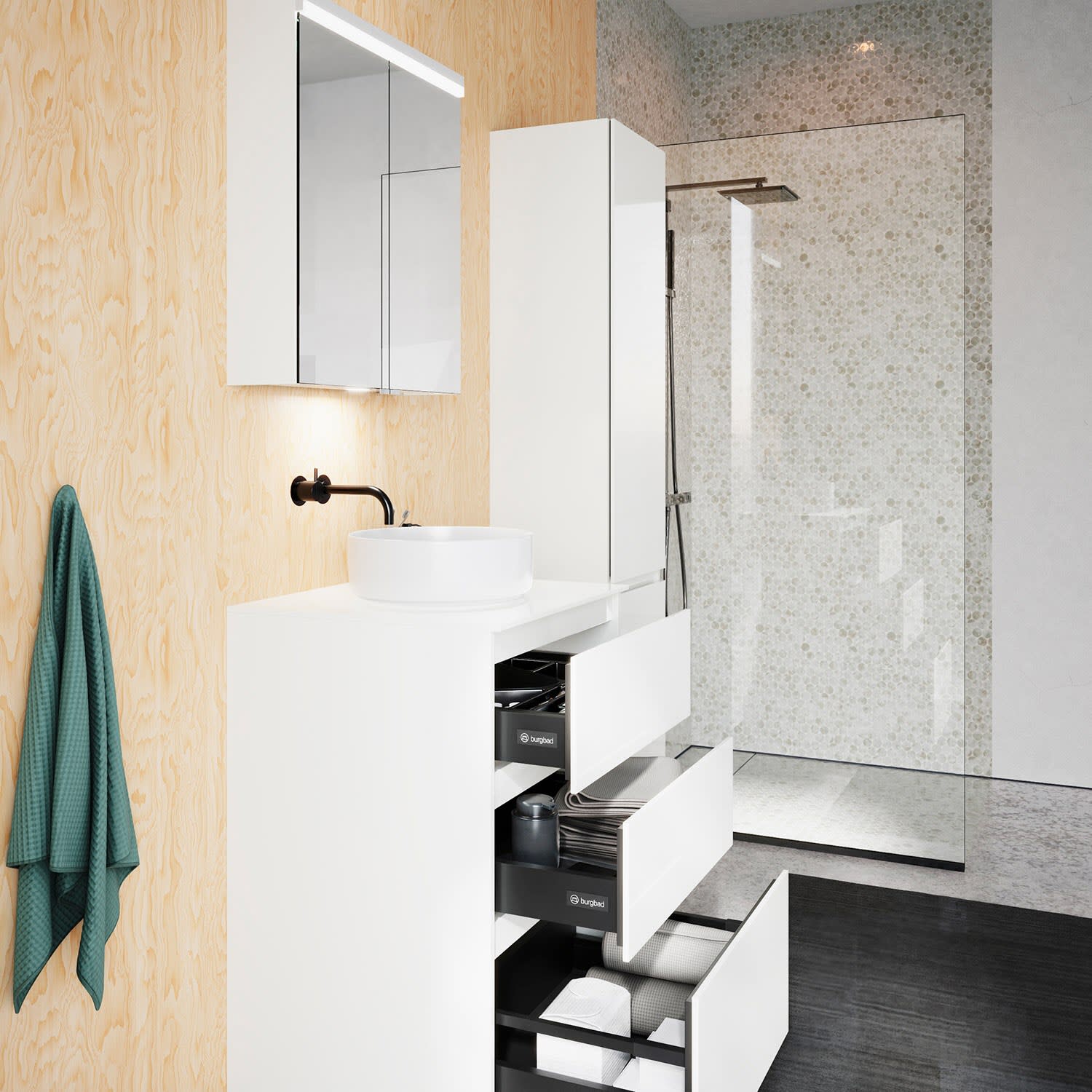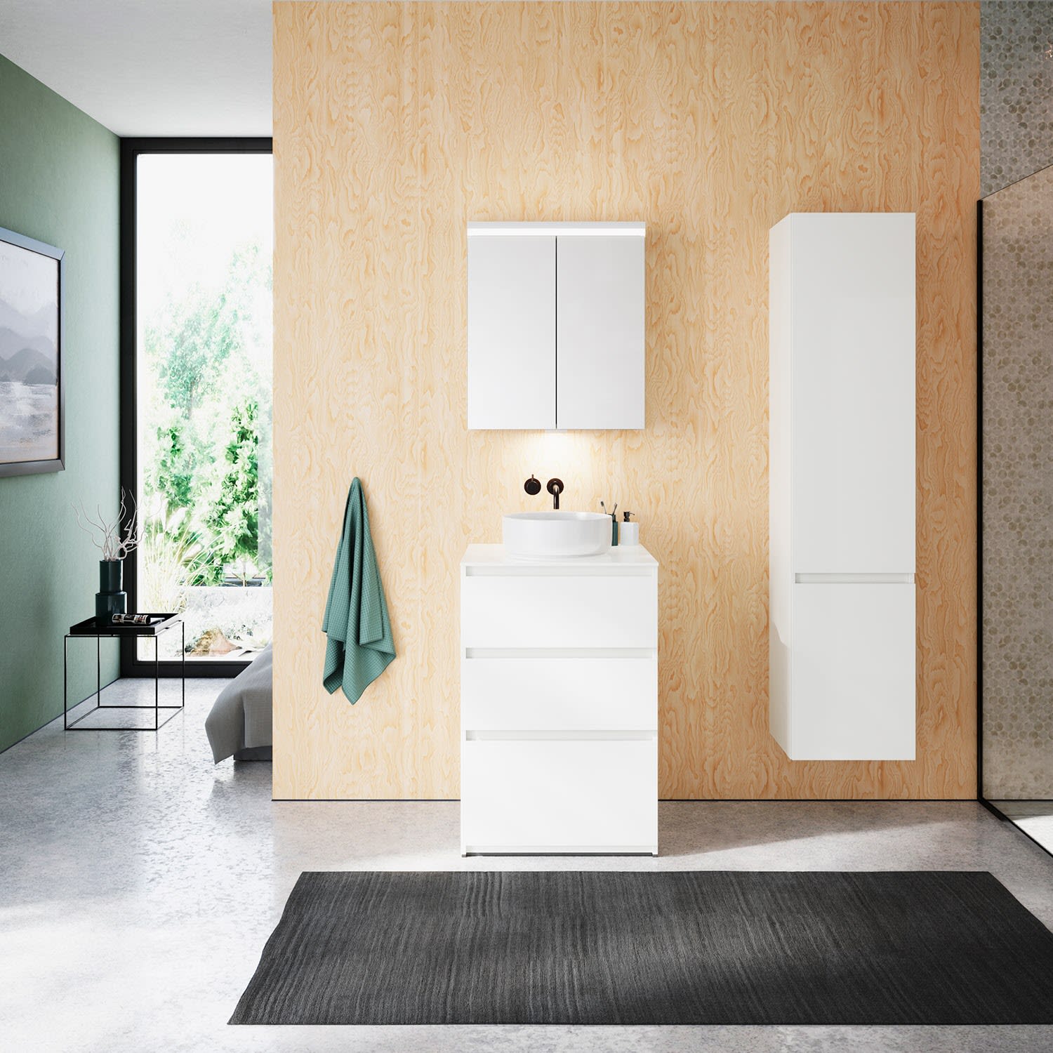 burgbad Lin20 Waschtischunterschrank mit Konsolenplatte 60 cm, 3 Auszüge, Beckenausschnitt mittig