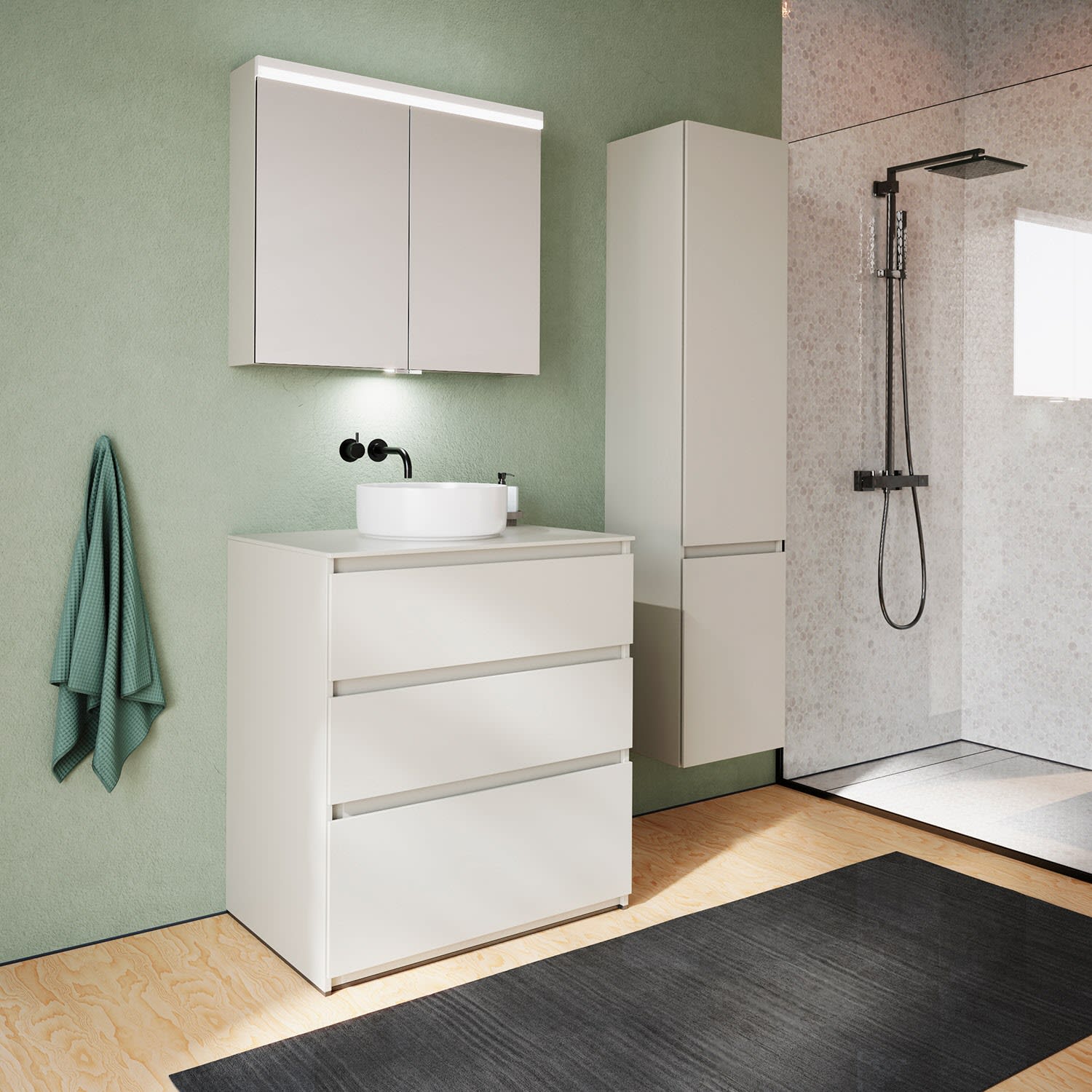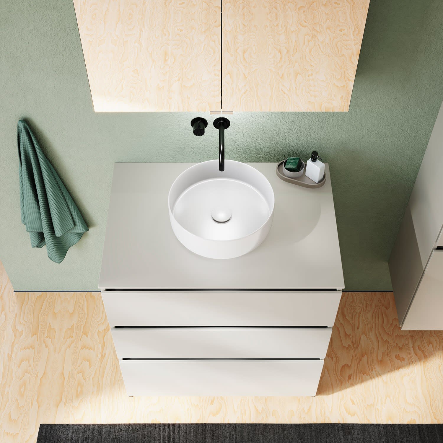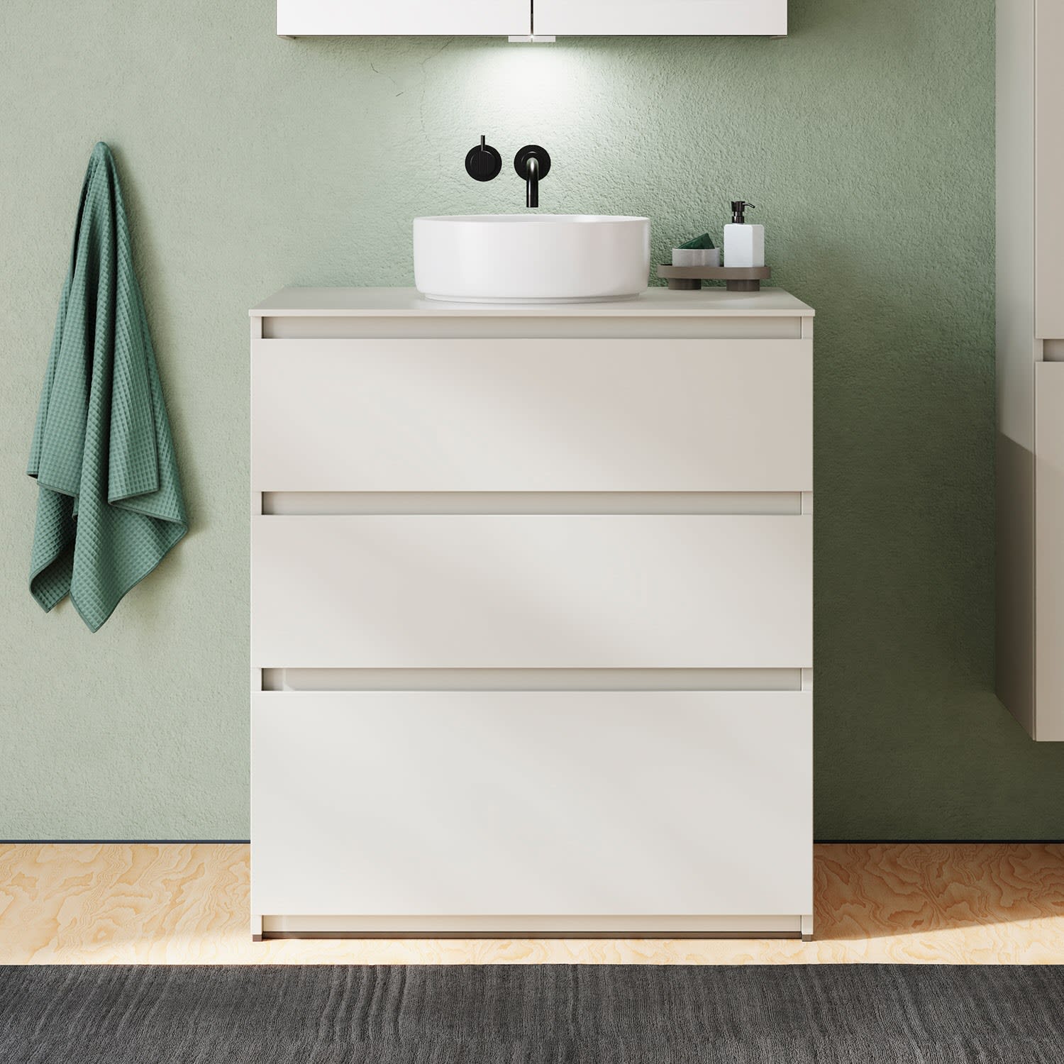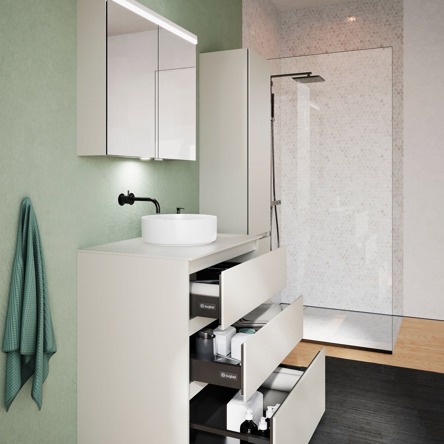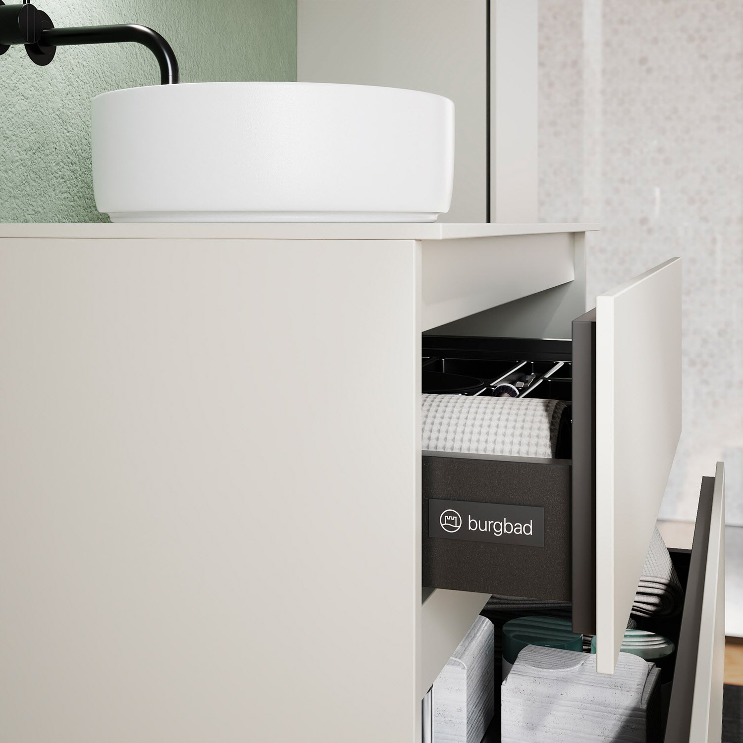 burgbad Lin20 Waschtischunterschrank mit Konsolenplatte 80 cm, 3 Auszüge, Beckenausschnitt mittig