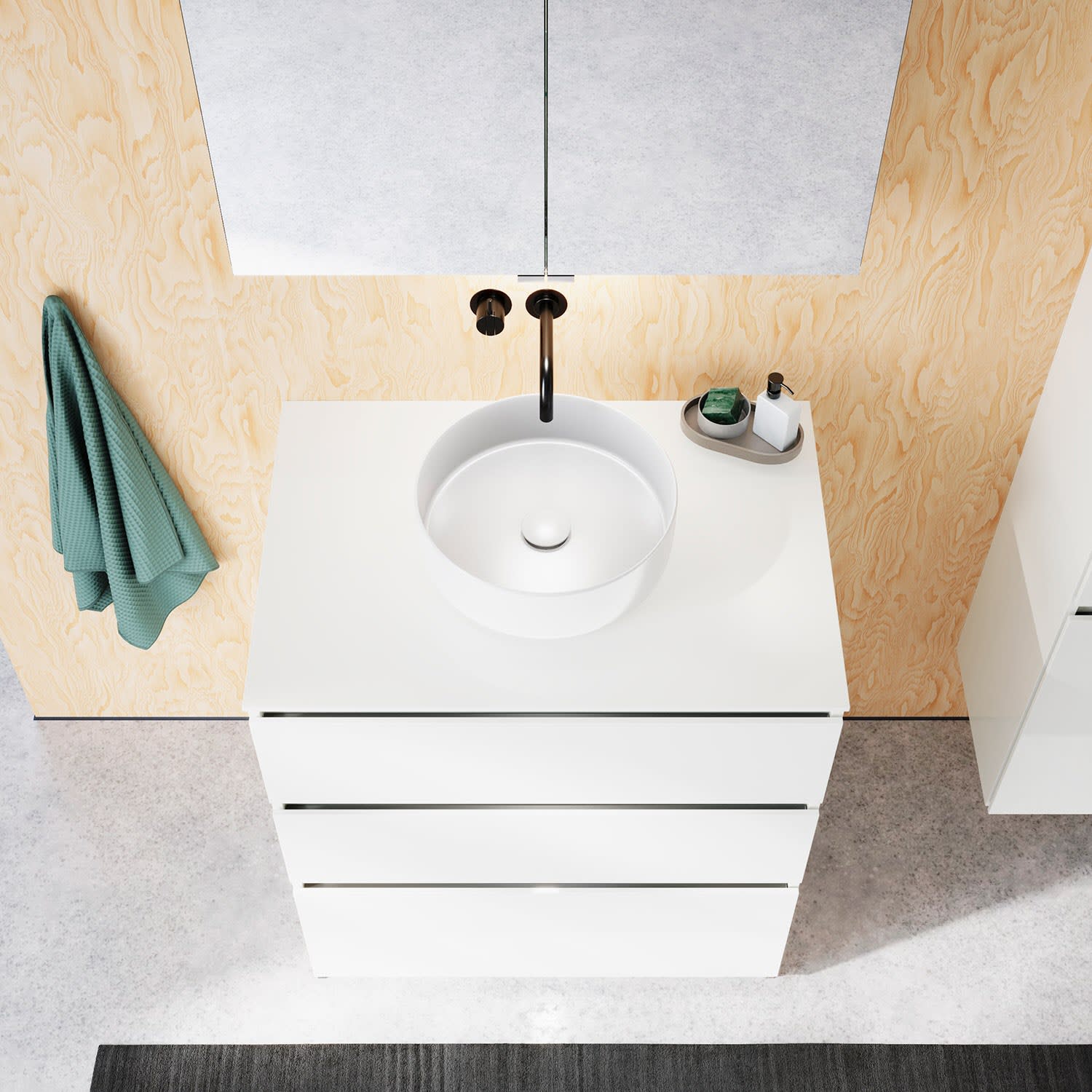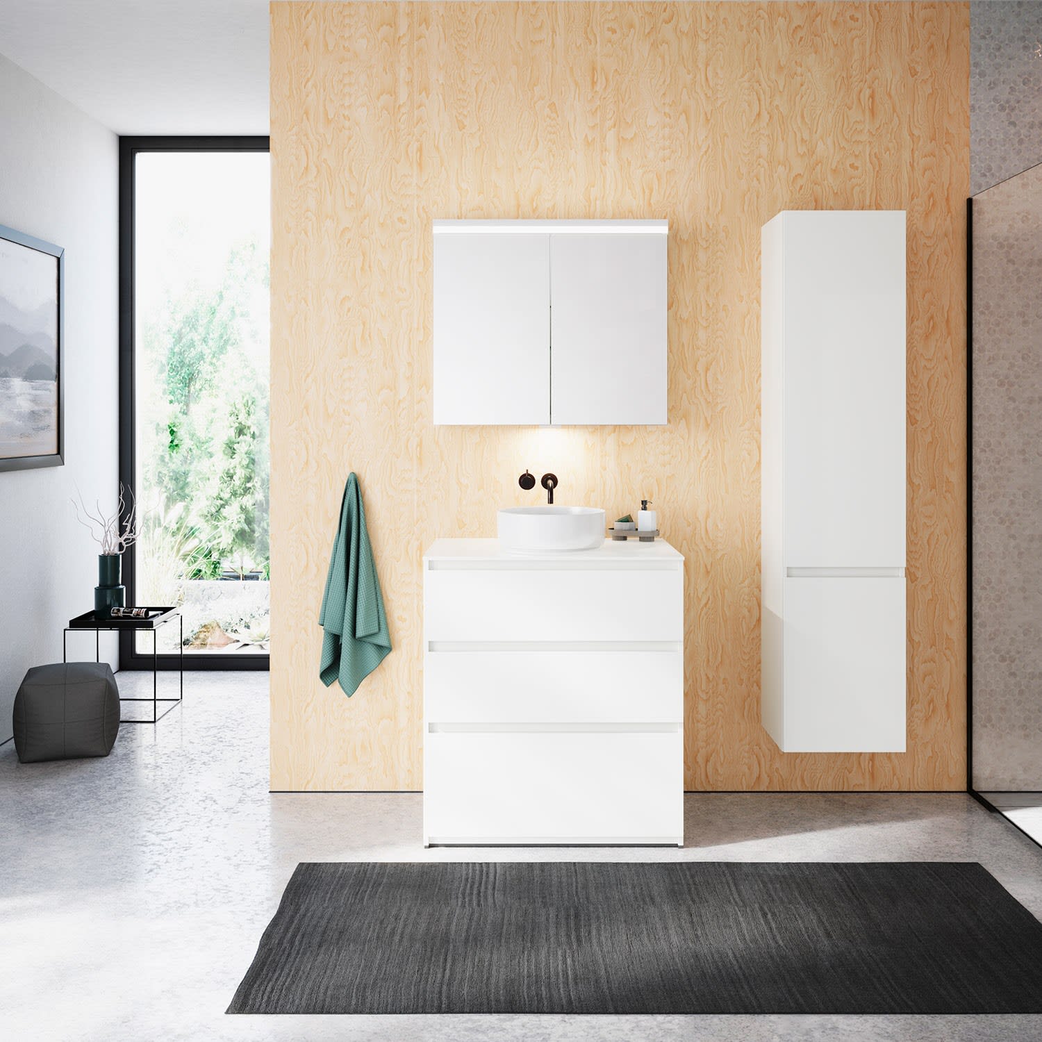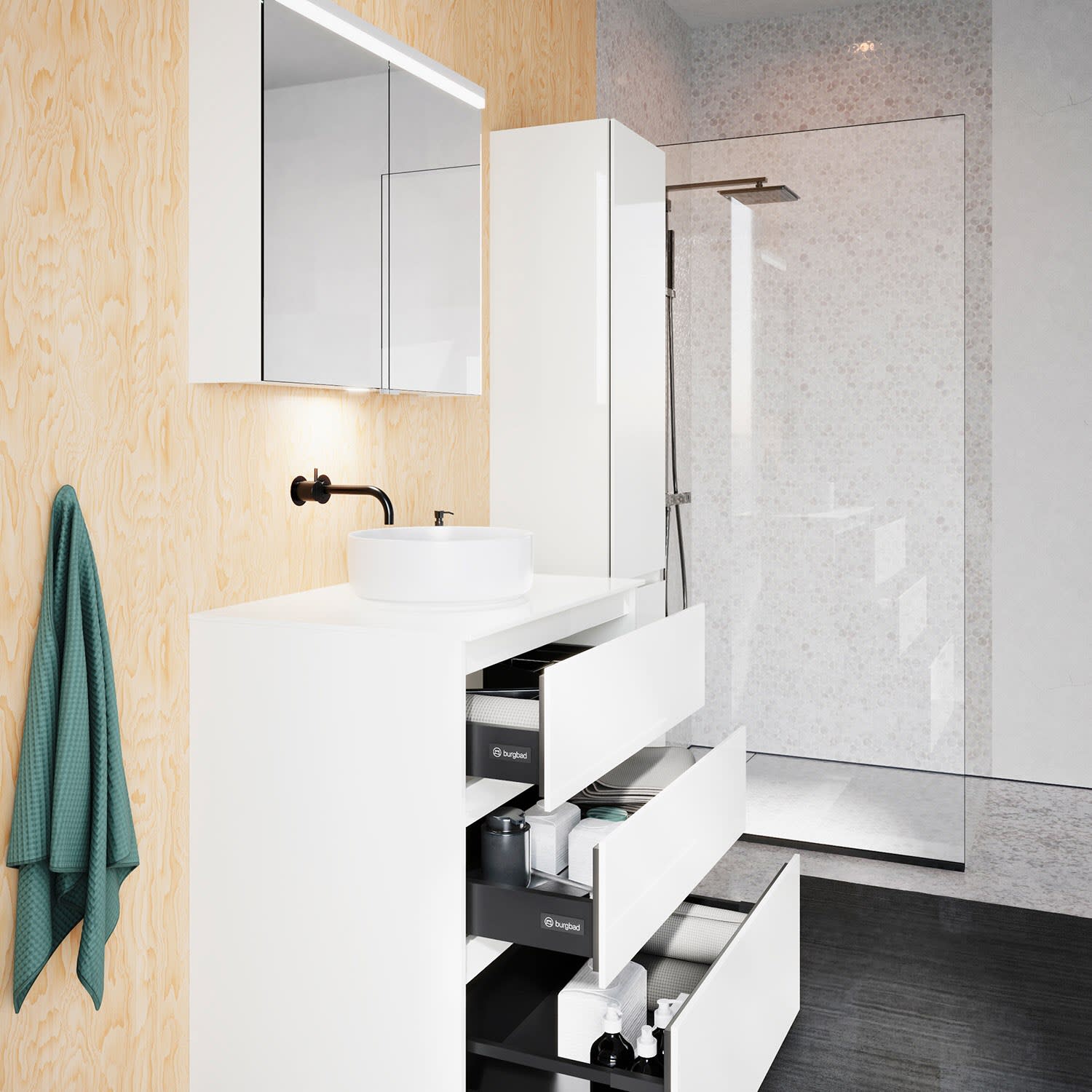 burgbad Lin20 Waschtischunterschrank mit Konsolenplatte 80 cm, 3 Auszüge, Beckenausschnitt mittig