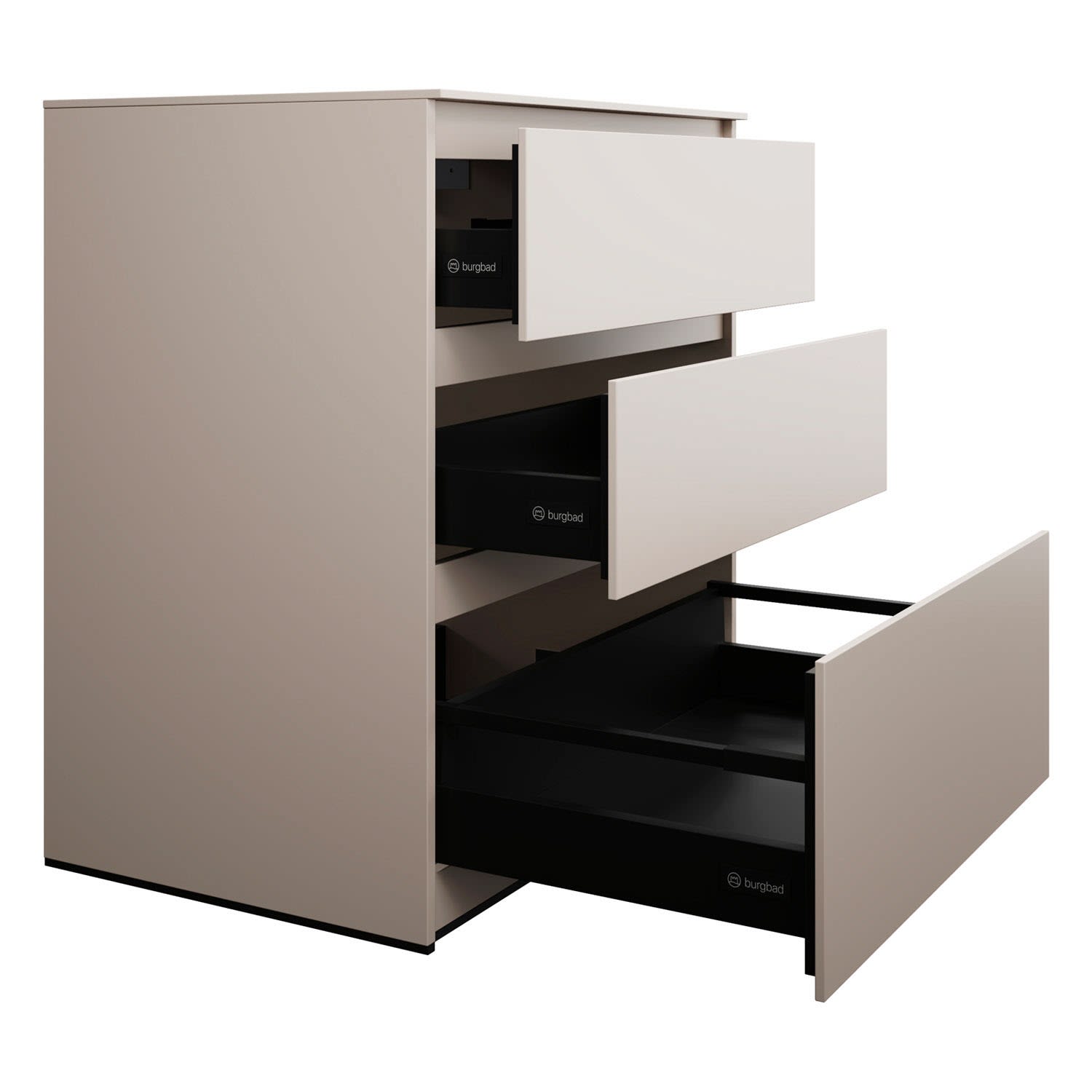 - Vollauszug mit geräuscharmem Selbsteinzugsmechanismus inklusive Anschlagdämpfung (Silent System)