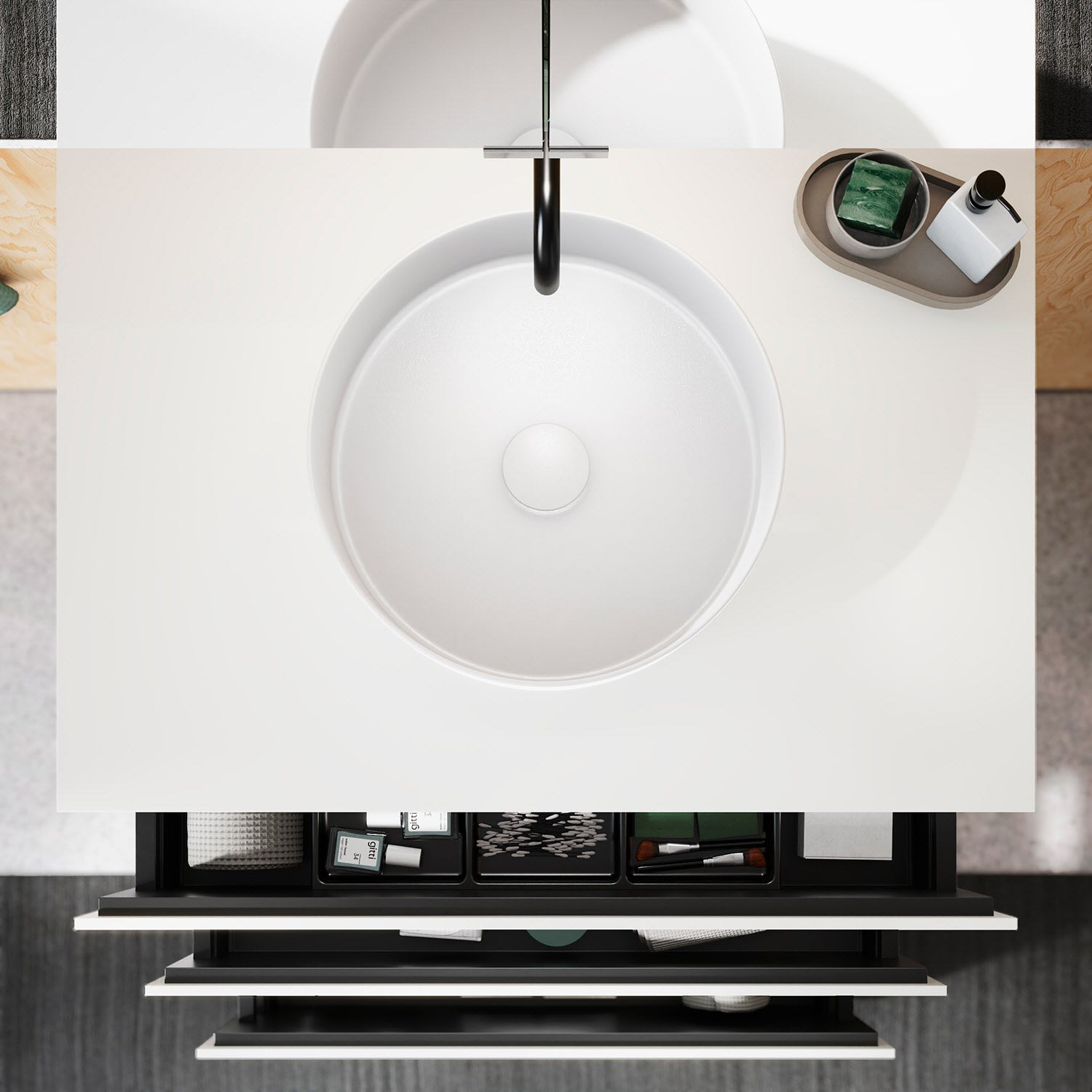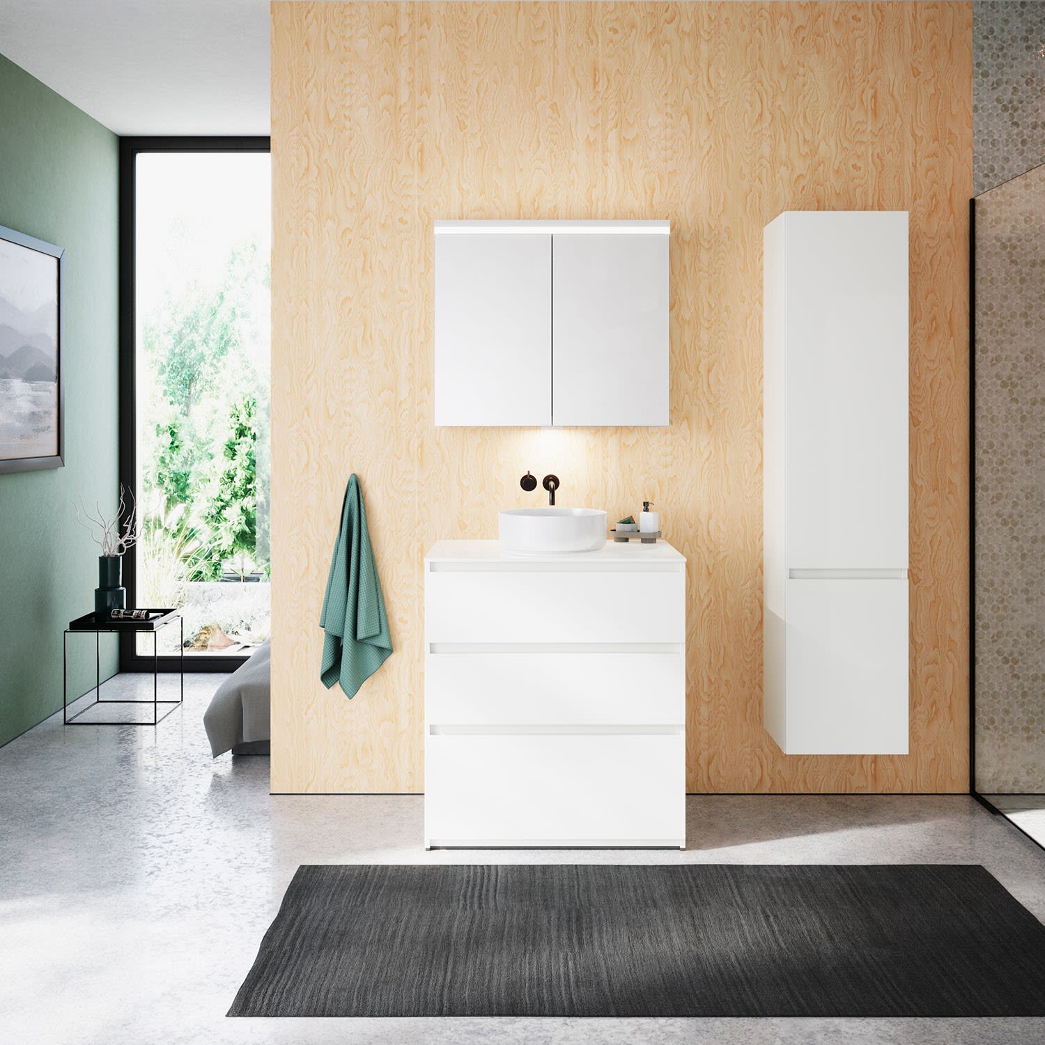 burgbad Lin20 Waschtischunterschrank mit Konsolenplatte 80 cm, 3 Auszüge, Beckenausschnitt mittig