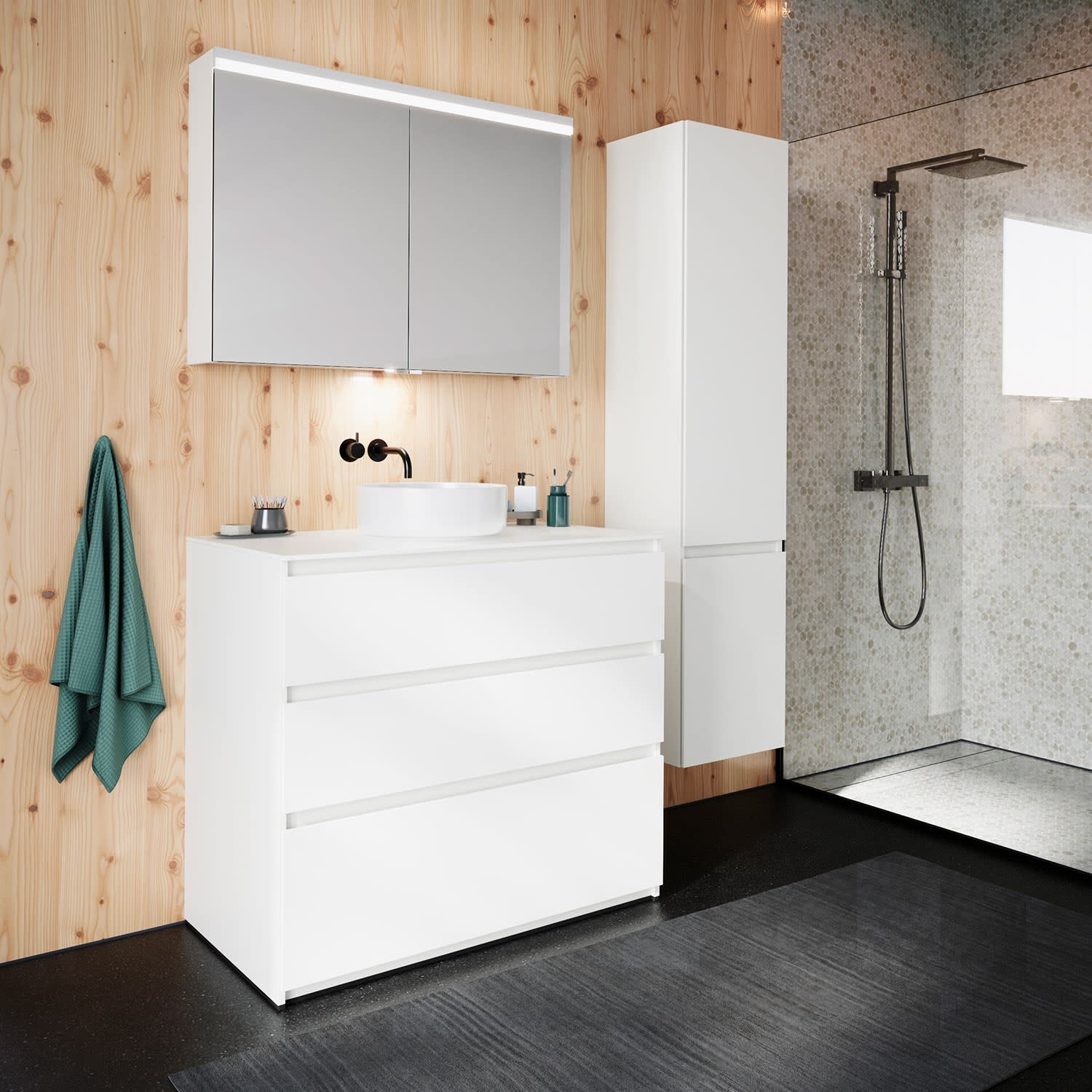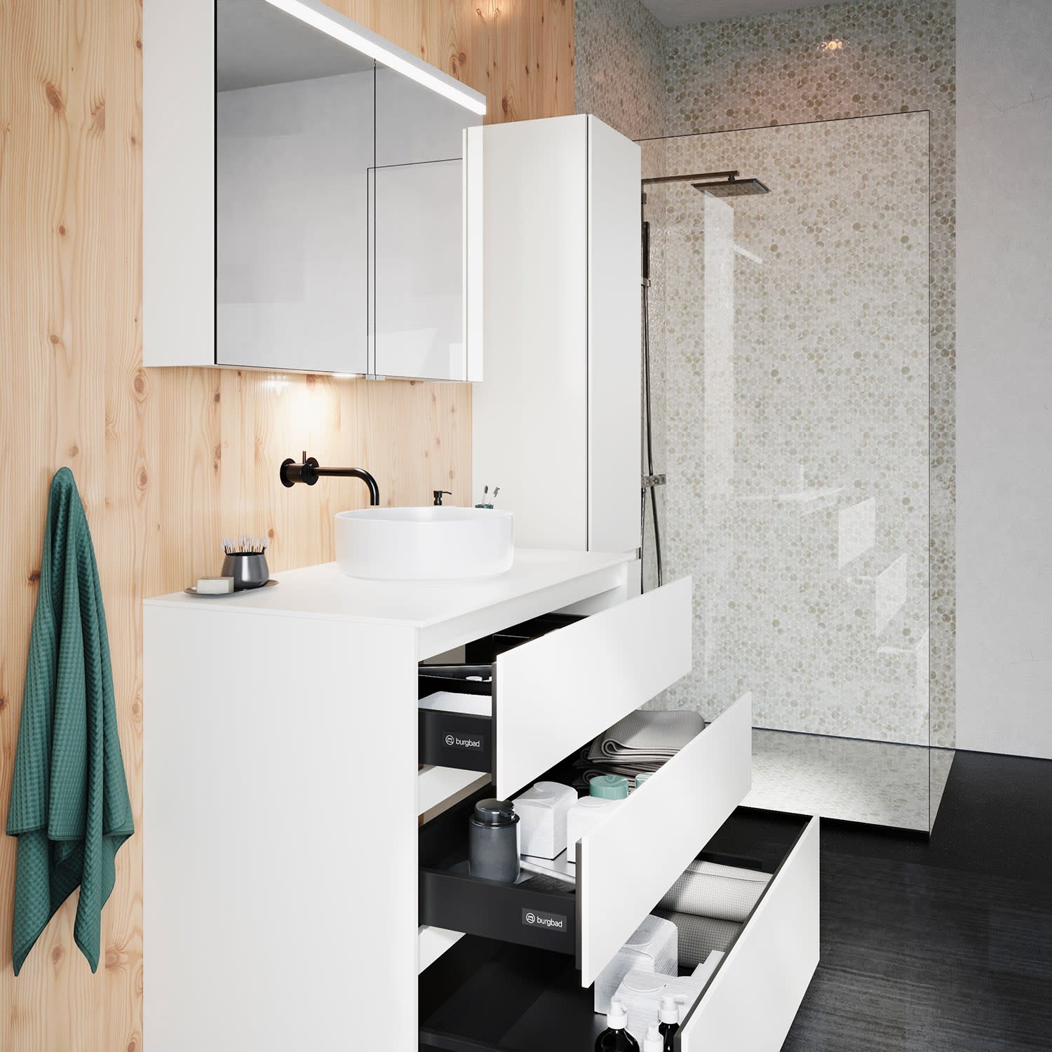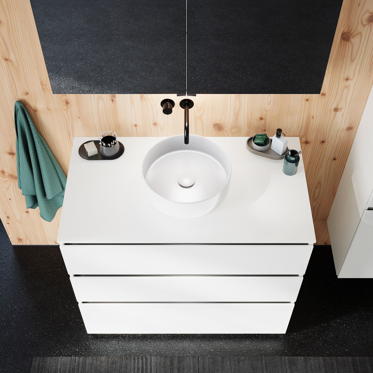 burgbad Lin20 Waschtischunterschrank mit Konsolenplatte 100 cm, 3 Auszüge, Beckenausschnitt mittig