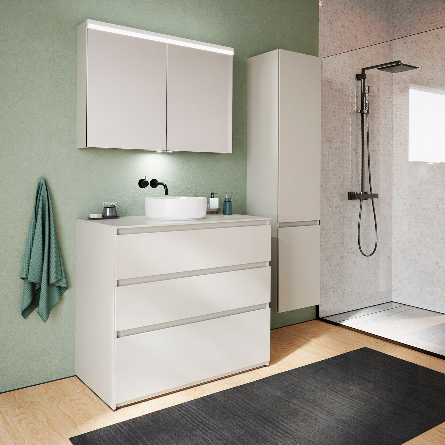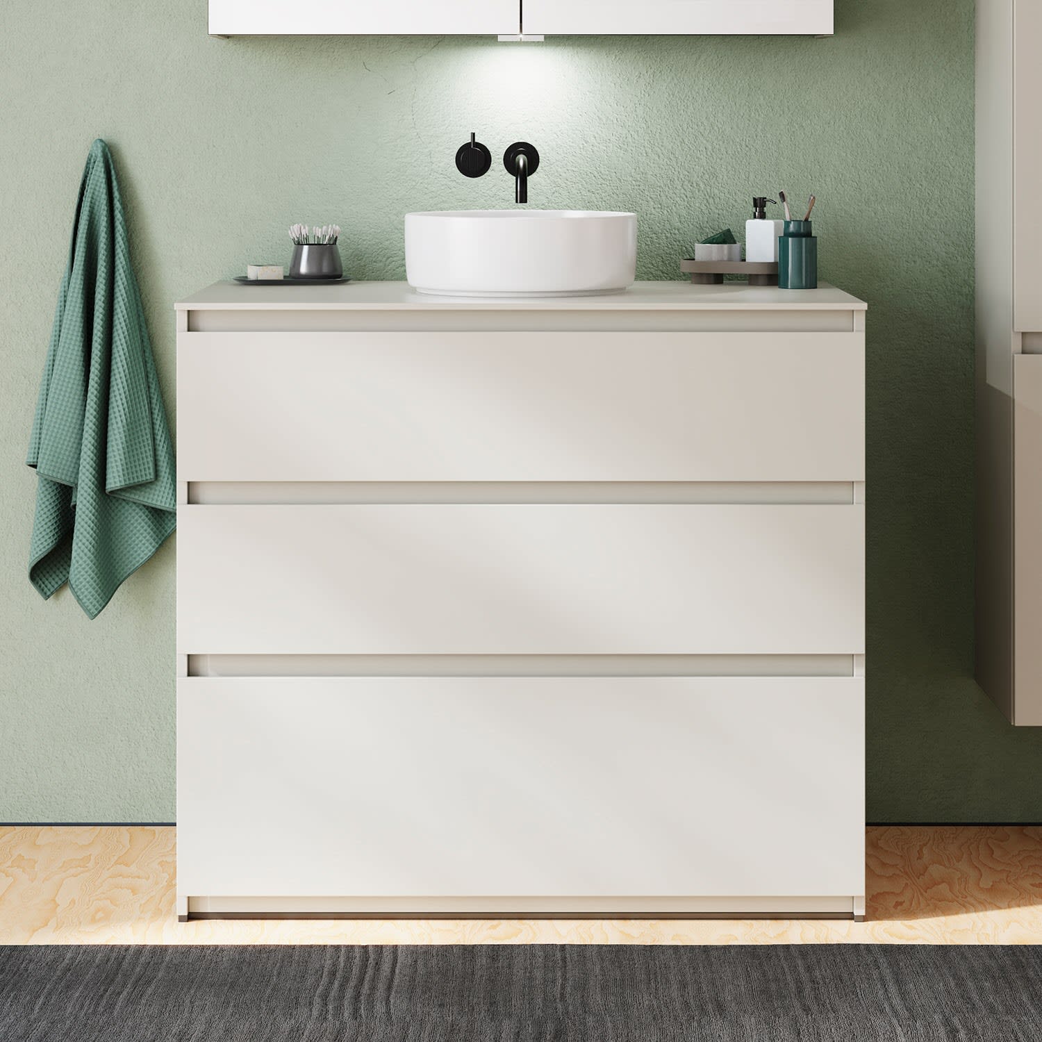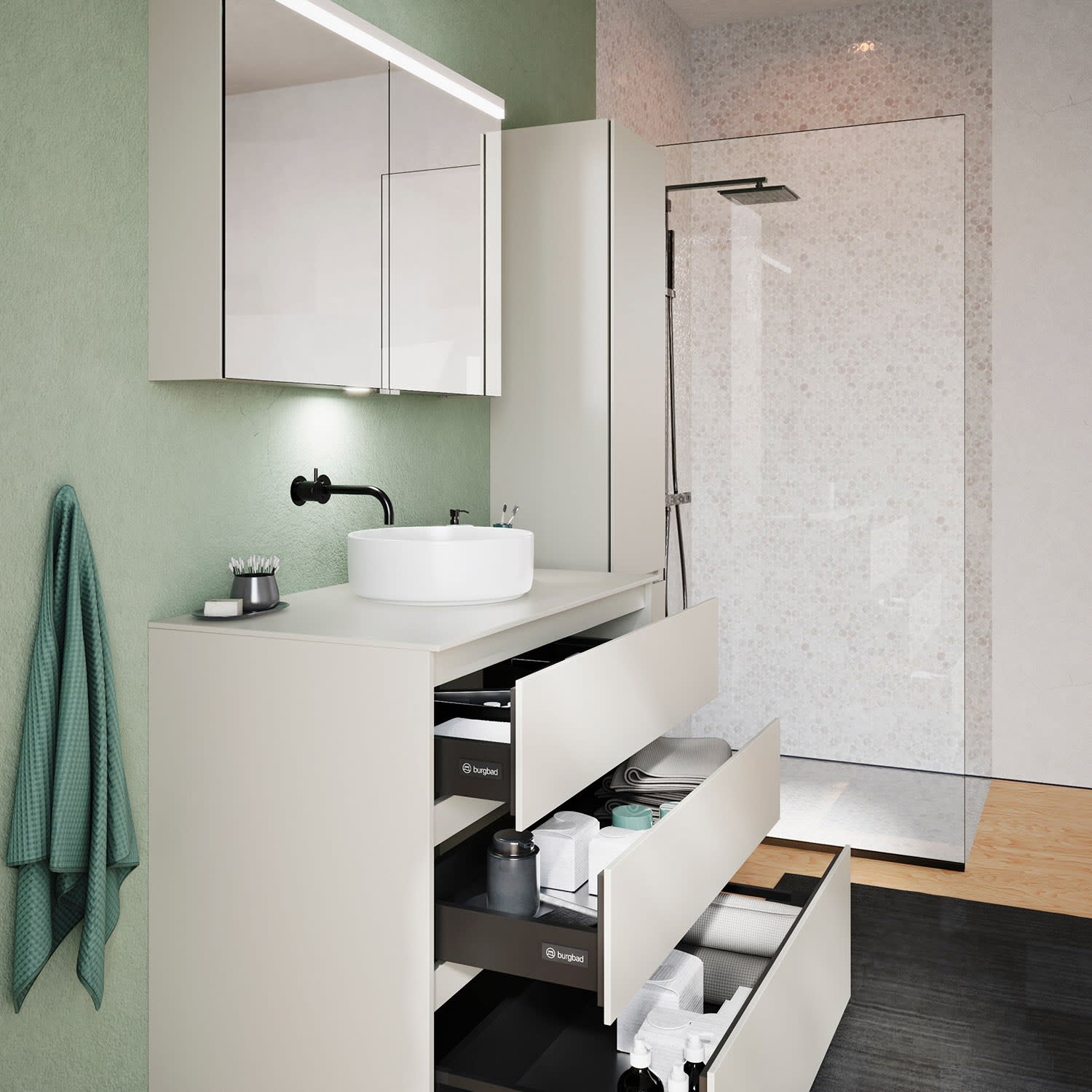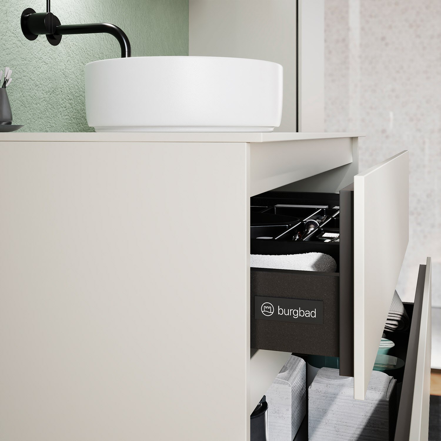 burgbad Lin20 Waschtischunterschrank mit Konsolenplatte 100 cm, 3 Auszüge, Beckenausschnitt mittig
