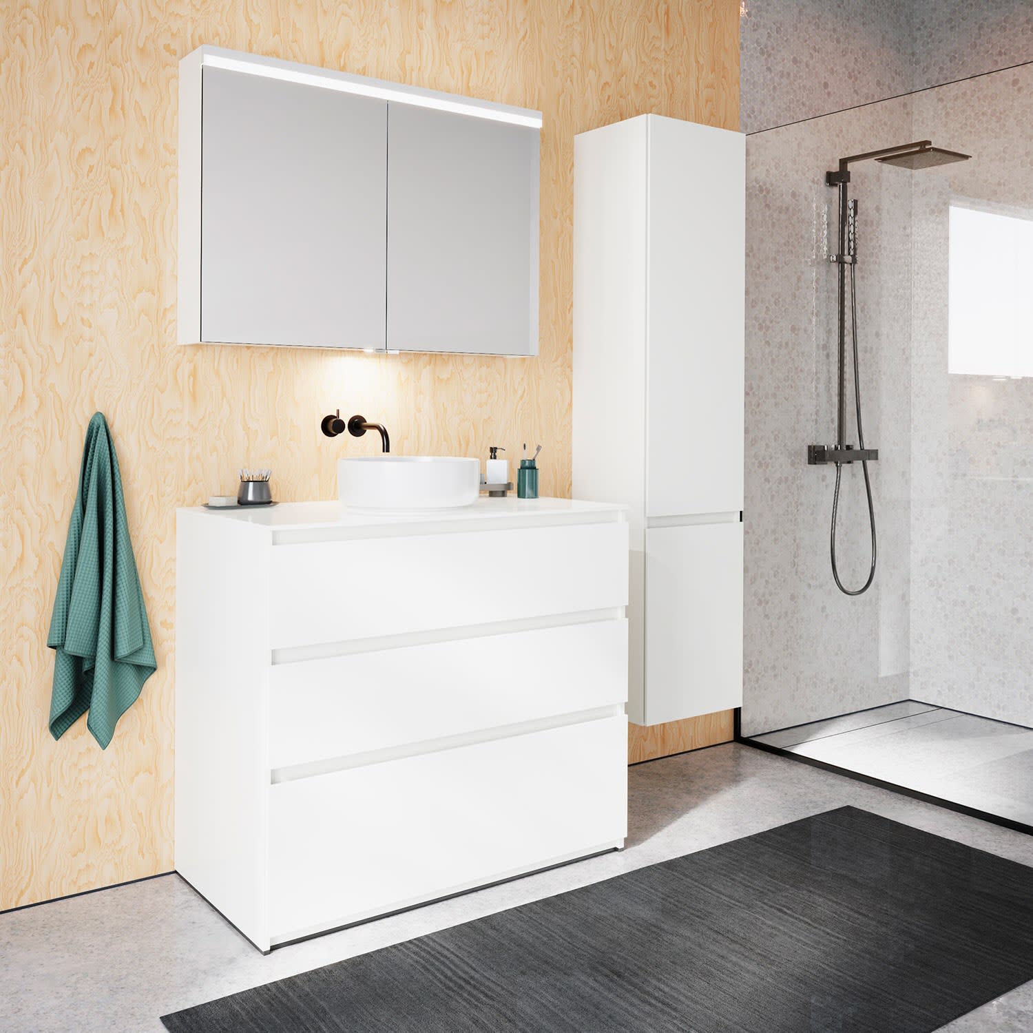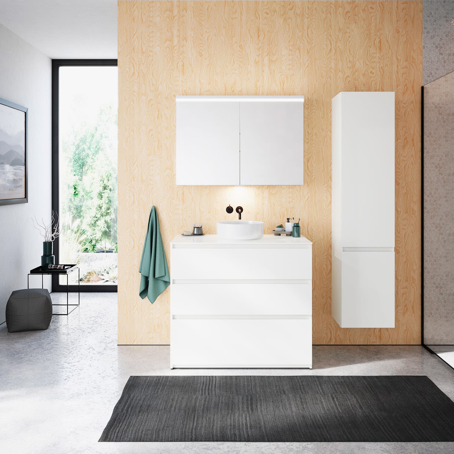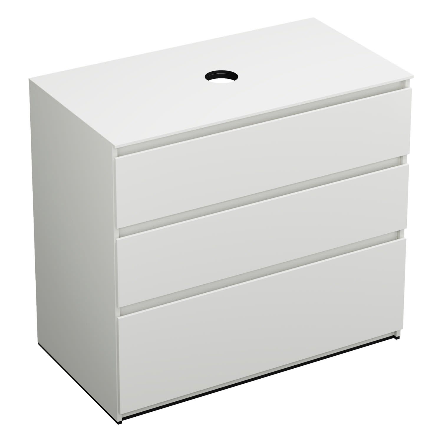 burgbad Lin20 Waschtischunterschrank mit Konsolenplatte 100 cm, 3 Auszüge, Beckenausschnitt mittig