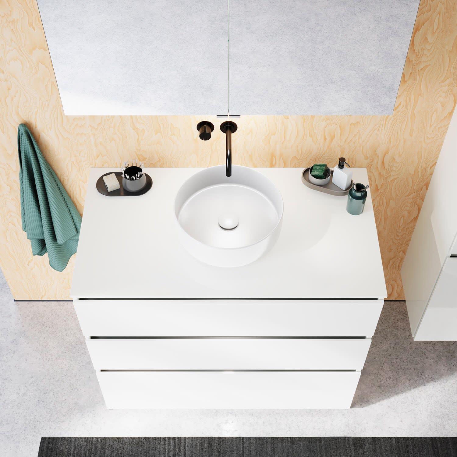 Die Waschtischplatte wird ohne Armaturbohrung geliefert. Armaturbohrungen müssen bauseits vorgenommen werden.