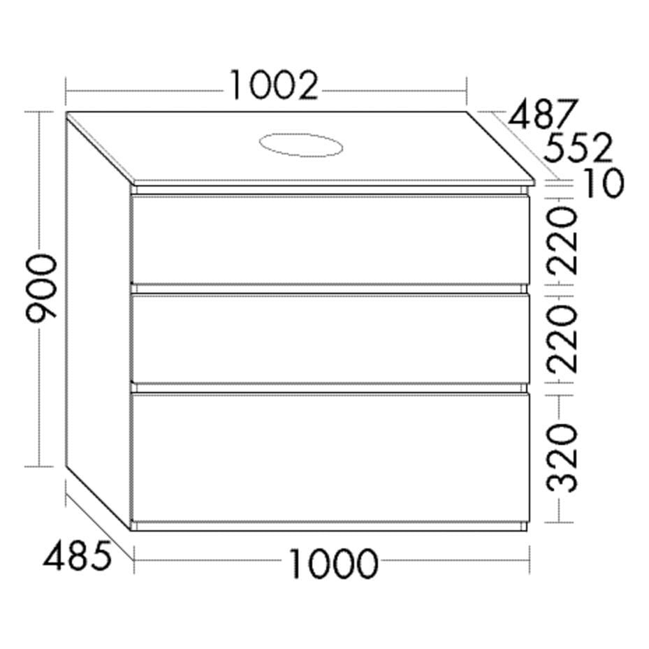 - Position Beckenausschnitt in der Tiefe: mittig bei Becken ohne Wandbefestigung oder wandbündig bei Becken mit Wandbefestigung (Bitte bei Bestellung den gewünschten Waschtisch mit angebeben.)