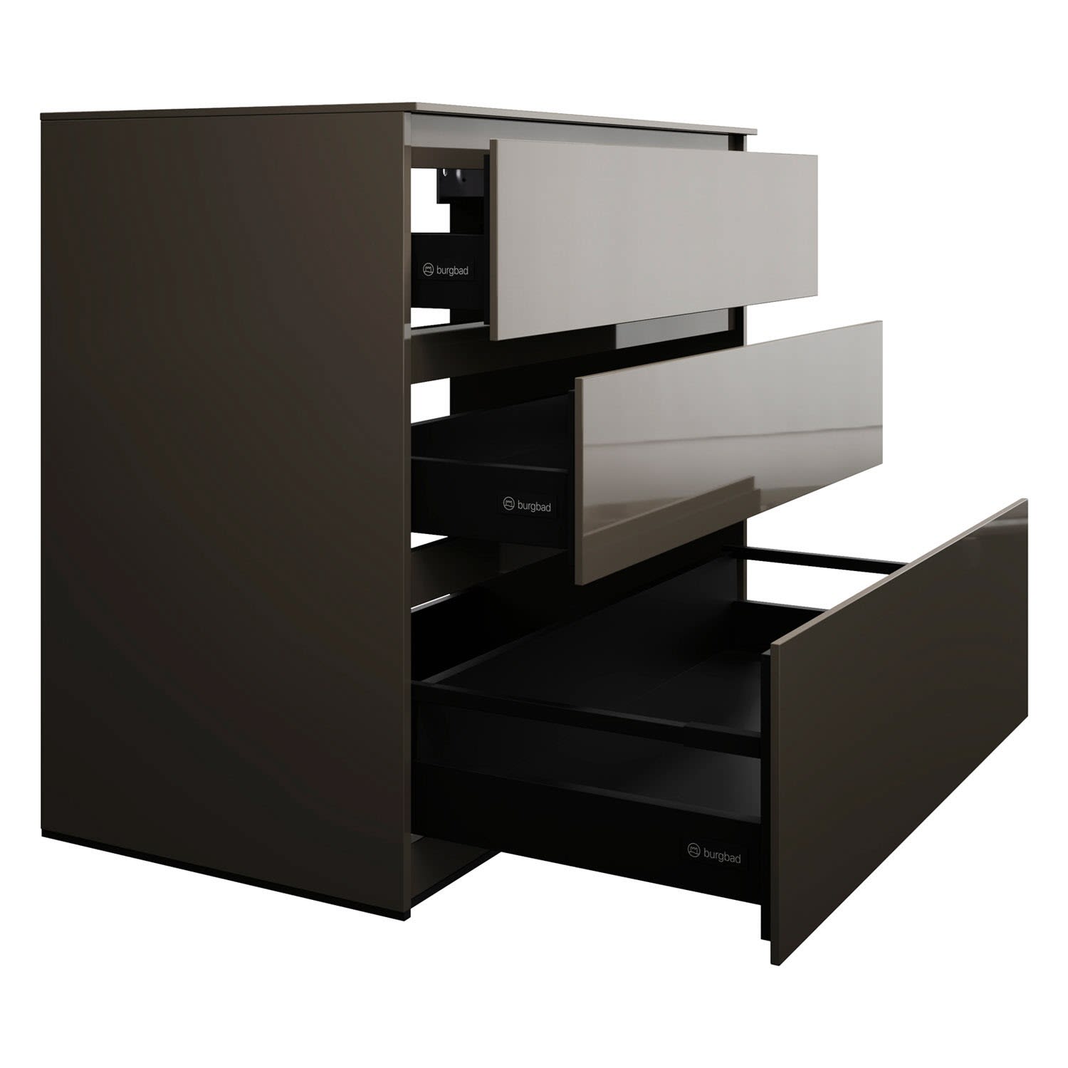 - Vollauszug mit geräuscharmem Selbsteinzugsmechanismus inklusive Anschlagdämpfung (Silent System)
