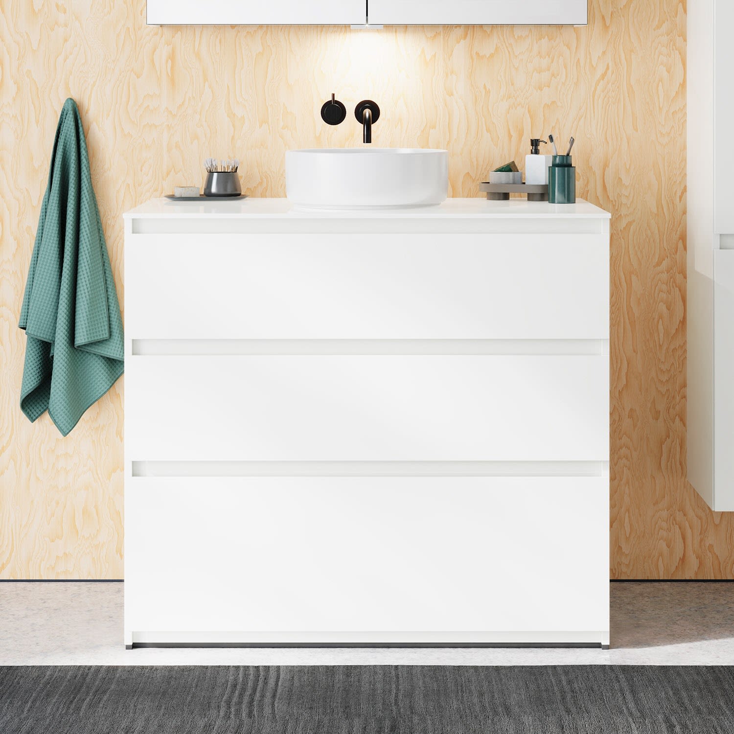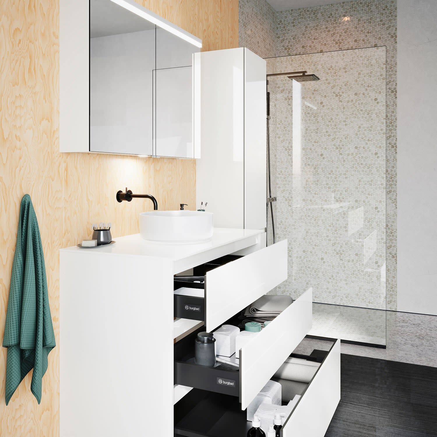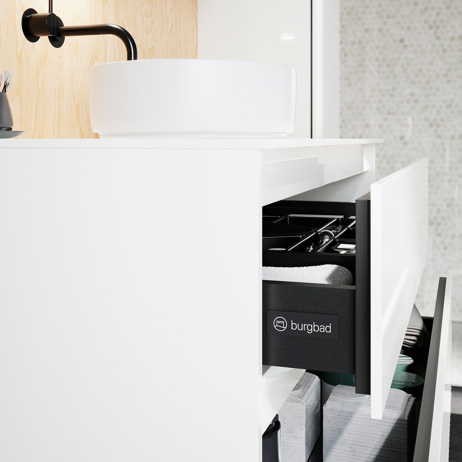 burgbad Lin20 Waschtischunterschrank mit Konsolenplatte 100 cm, 3 Auszüge, Beckenausschnitt mittig