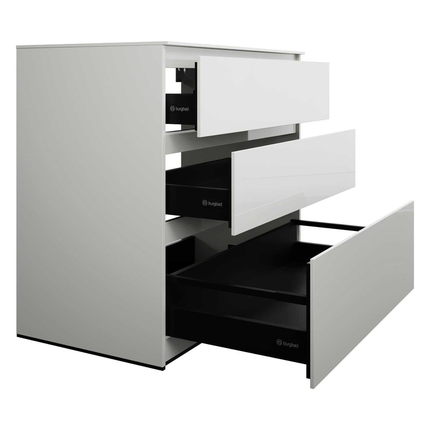 - Vollauszug mit geräuscharmem Selbsteinzugsmechanismus inklusive Anschlagdämpfung (Silent System)