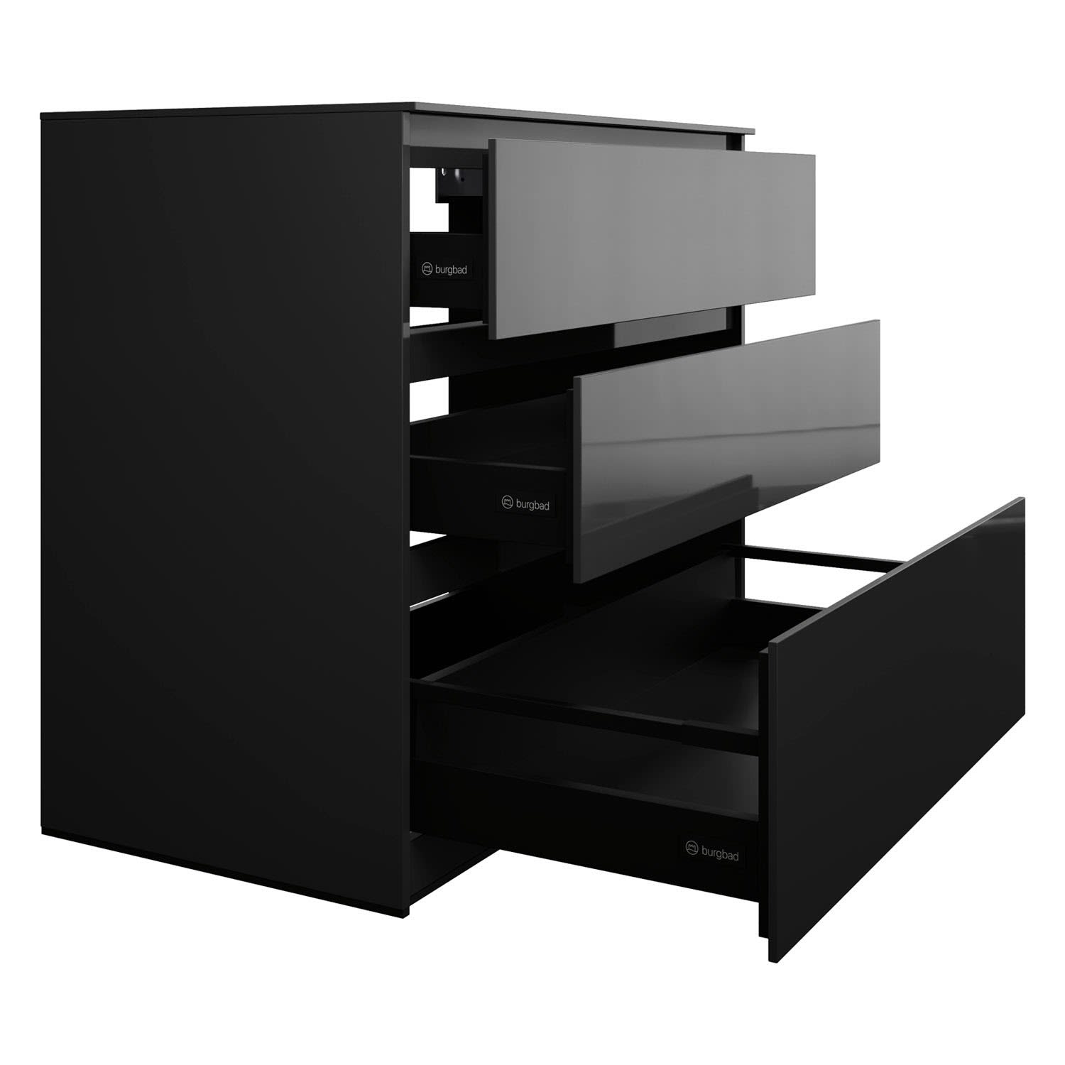 - Vollauszug mit geräuscharmem Selbsteinzugsmechanismus inklusive Anschlagdämpfung (Silent System)
