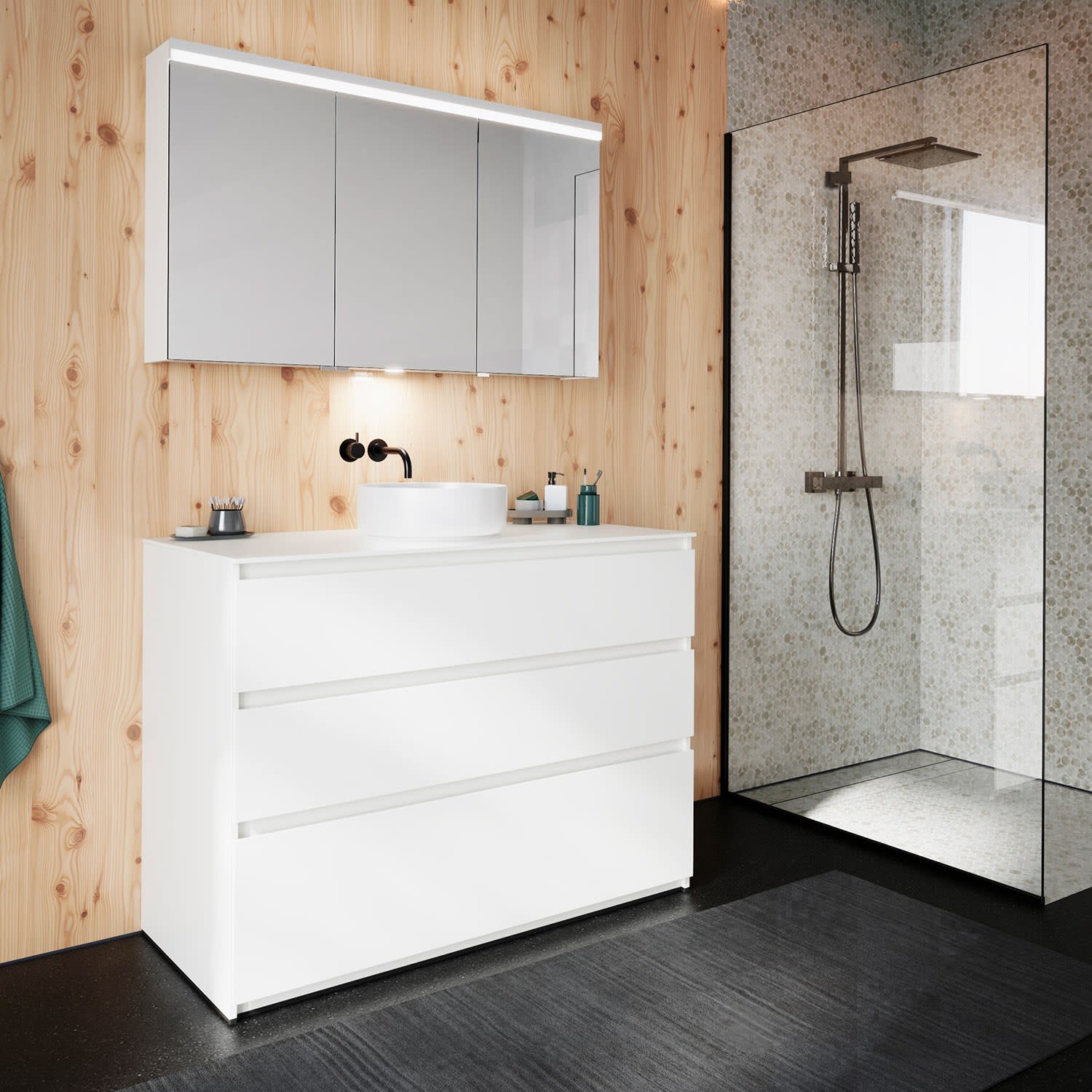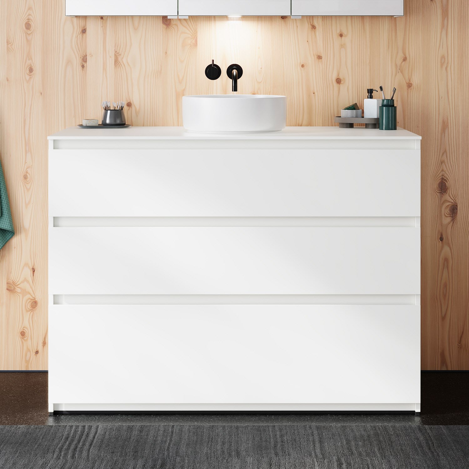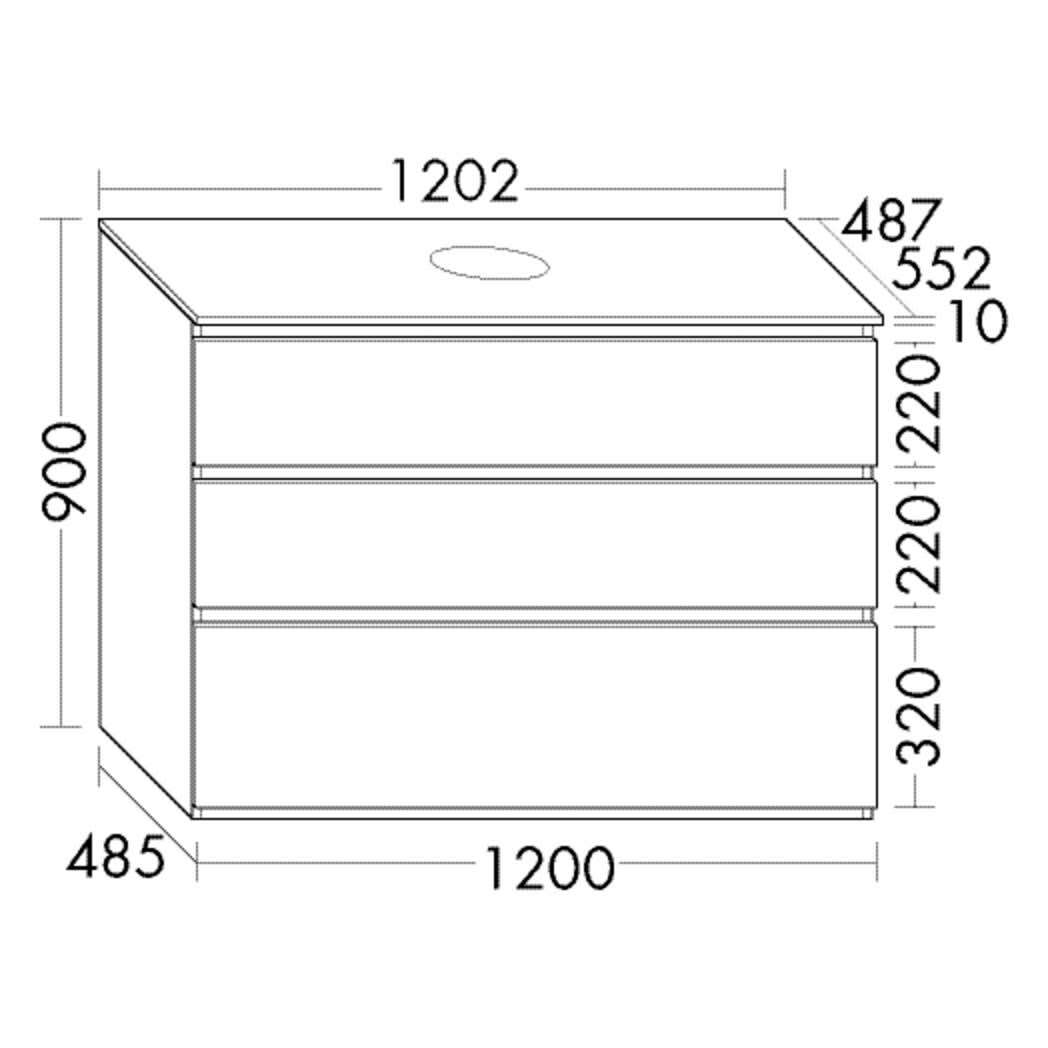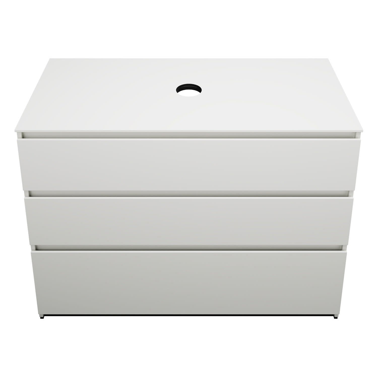 burgbad Lin20 Waschtischunterschrank mit Konsolenplatte 120 cm, 3 Auszüge, Beckenausschnitt mittig