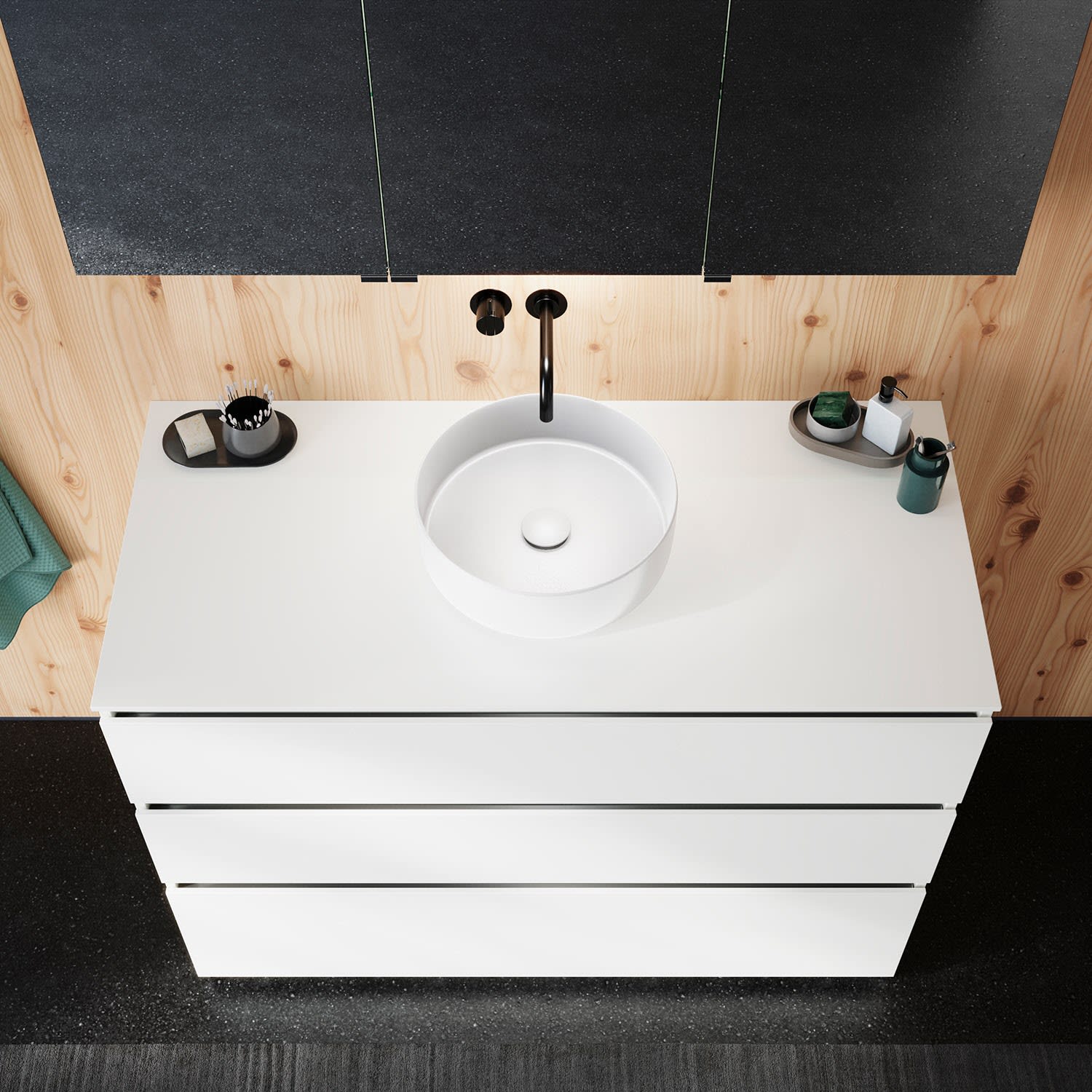 Die Waschtischplatte wird ohne Armaturbohrung geliefert. Armaturbohrungen müssen bauseits vorgenommen werden.