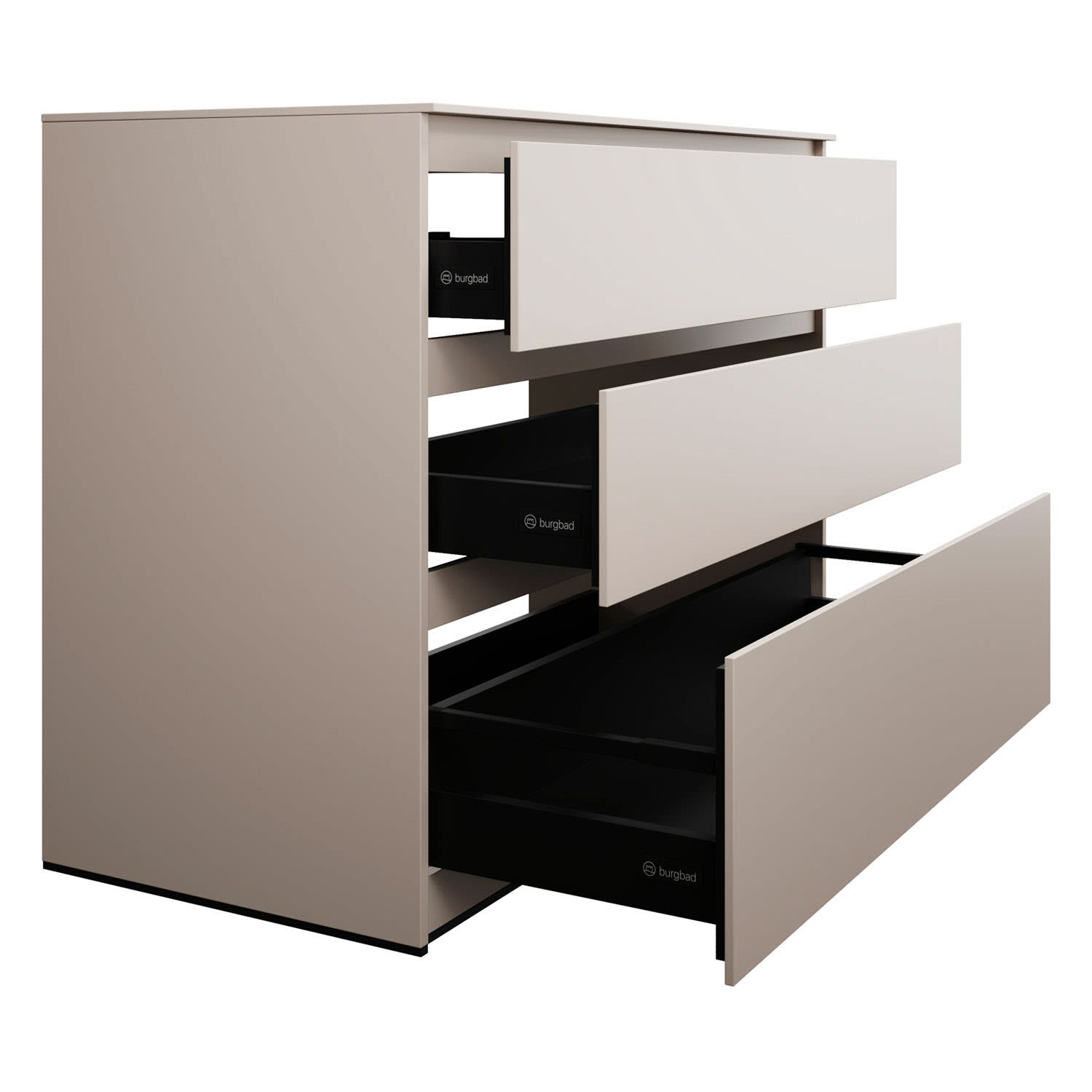 - Vollauszug mit geräuscharmem Selbsteinzugsmechanismus inklusive Anschlagdämpfung (Silent System)