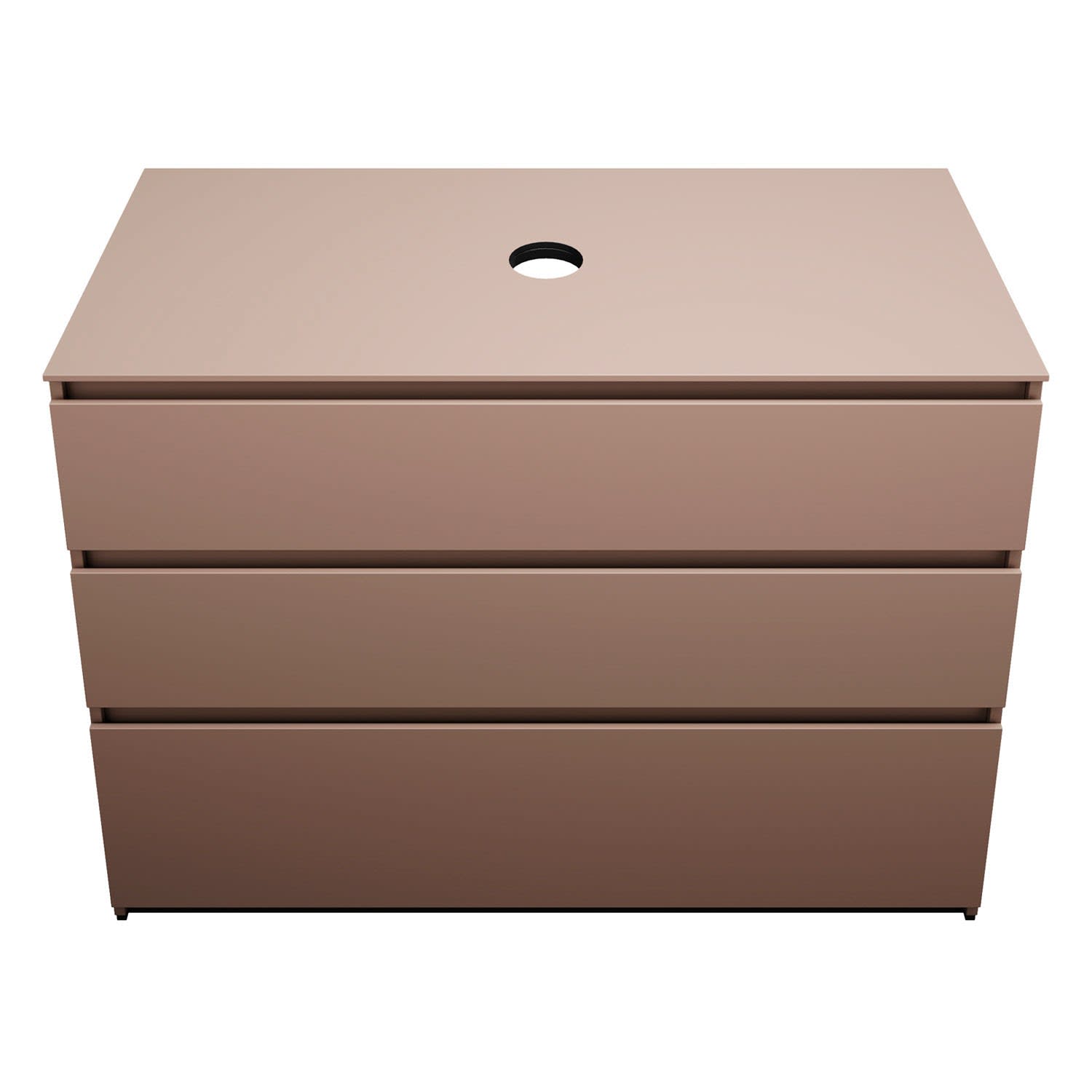 - Position Beckenausschnitt in der Tiefe: mittig bei Becken ohne Wandbefestigung oder wandbündig bei Becken mit Wandbefestigung (Bitte bei Bestellung den gewünschten Waschtisch mit angebeben.)