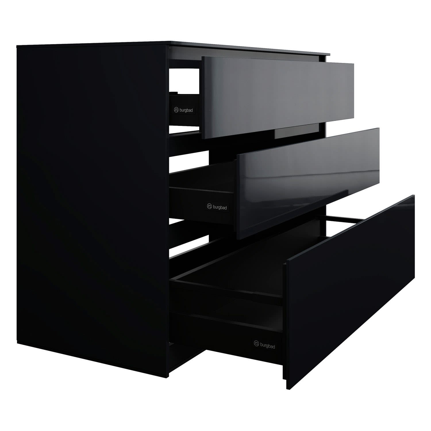 - Vollauszug mit geräuscharmem Selbsteinzugsmechanismus inklusive Anschlagdämpfung (Silent System)